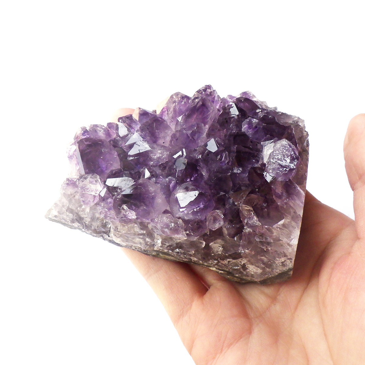 ブラジル産のアメジストクラスターです。一つ一つの結晶が大きく成長したアメジストクラスターを集めました。透明感があり、上質なアメジストの証である紫の色がしっかりと入ったクラスターです。