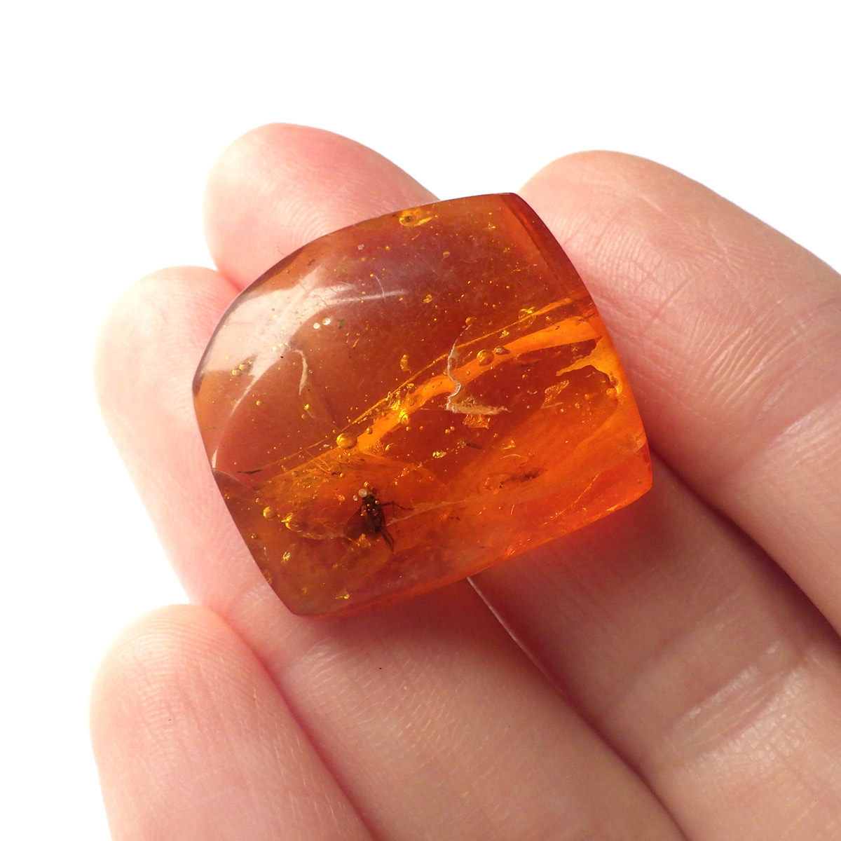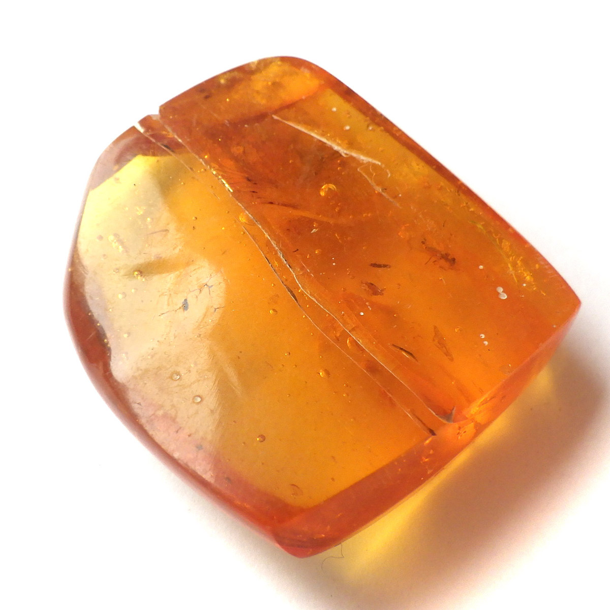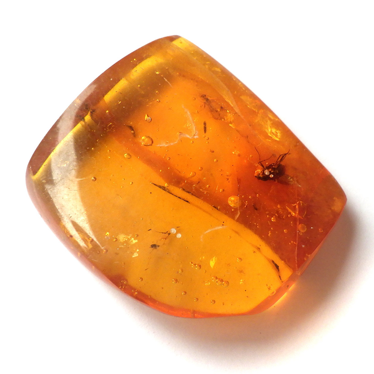 バルト海産の虫入りアンバー(琥珀)、原石です。 松柏類の樹脂が3000万年以上の時を経て化石化したもので、バルト海沿岸地方で多く産出し、紀元前2000年頃、ヨーロッパではすでに「アンバールート」という交易ルートがあったほど人気があったようです。 アンバーという名前は、古代アラビア語の「アンバール(海に漂うもの)」が由来です。樹脂を含む樹木が地殻変動などで海底に沈み、化石へと熟成され海岸に流れ着いたからで、「シー・アンバー」と呼ばれます。また、古代の昆虫などが入ったものは学術的価値も高く、「インセクト・アンバー」と呼ばれます。