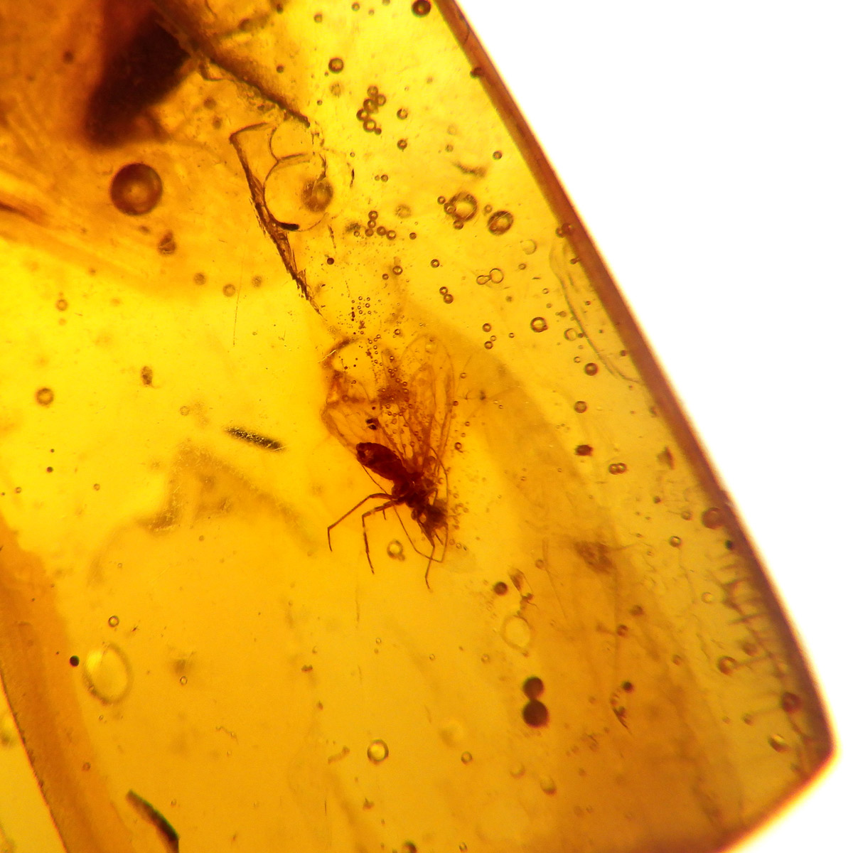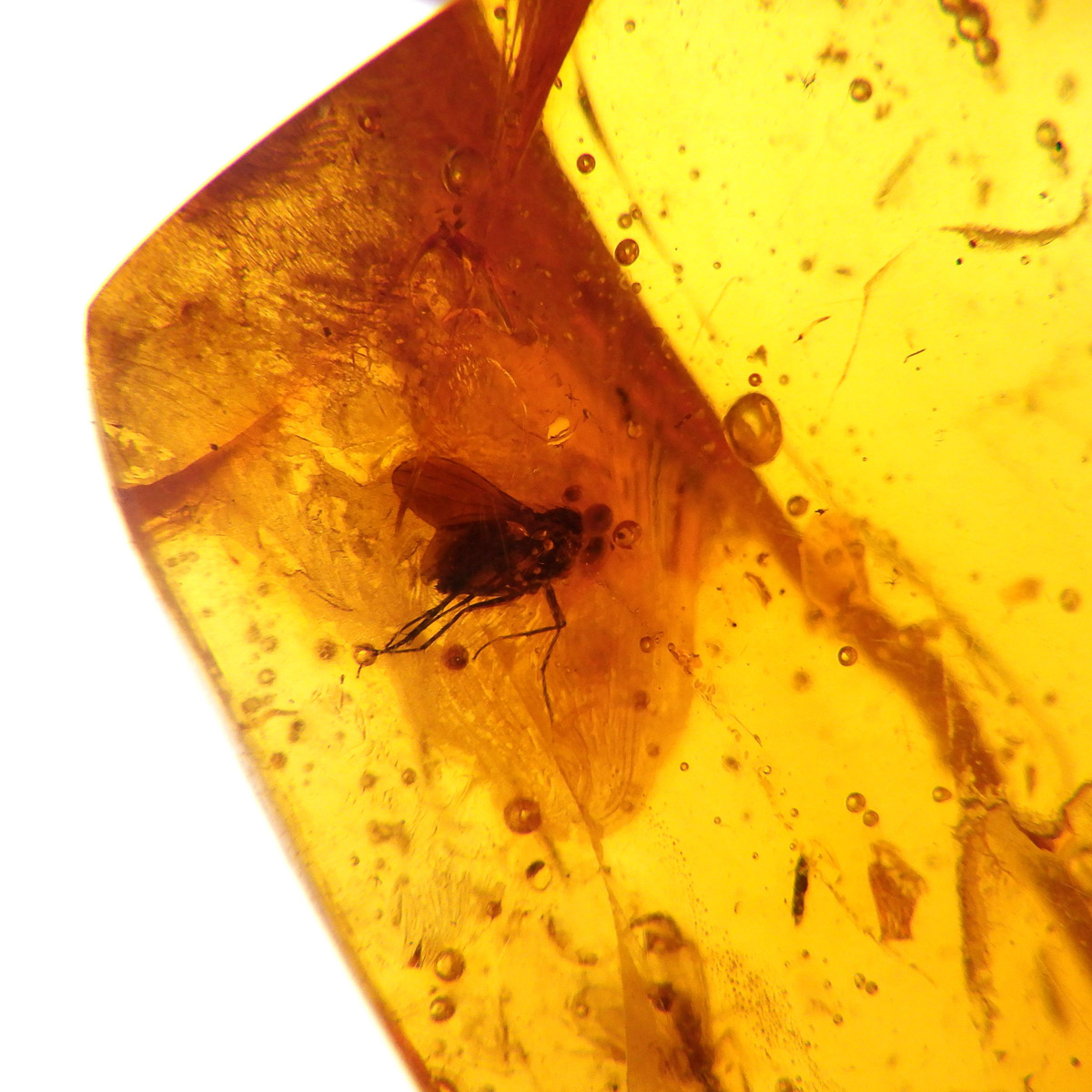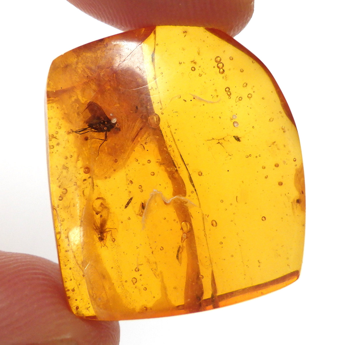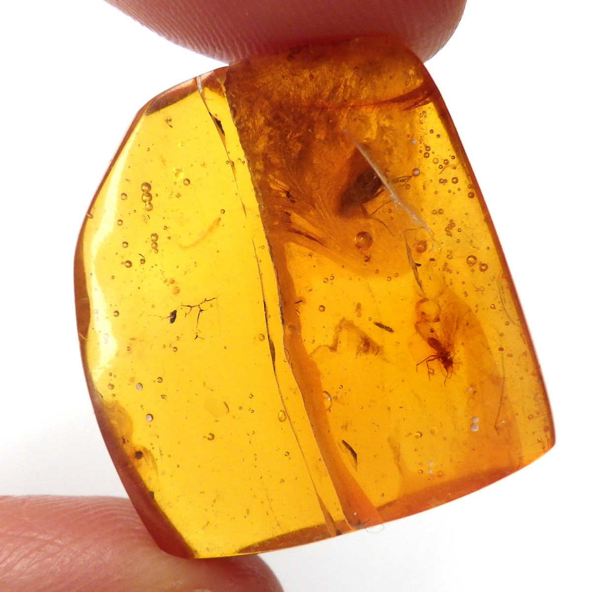 バルト海産の虫入りアンバー(琥珀)、原石です。 松柏類の樹脂が3000万年以上の時を経て化石化したもので、バルト海沿岸地方で多く産出し、紀元前2000年頃、ヨーロッパではすでに「アンバールート」という交易ルートがあったほど人気があったようです。 アンバーという名前は、古代アラビア語の「アンバール(海に漂うもの)」が由来です。樹脂を含む樹木が地殻変動などで海底に沈み、化石へと熟成され海岸に流れ着いたからで、「シー・アンバー」と呼ばれます。また、古代の昆虫などが入ったものは学術的価値も高く、「インセクト・アンバー」と呼ばれます。