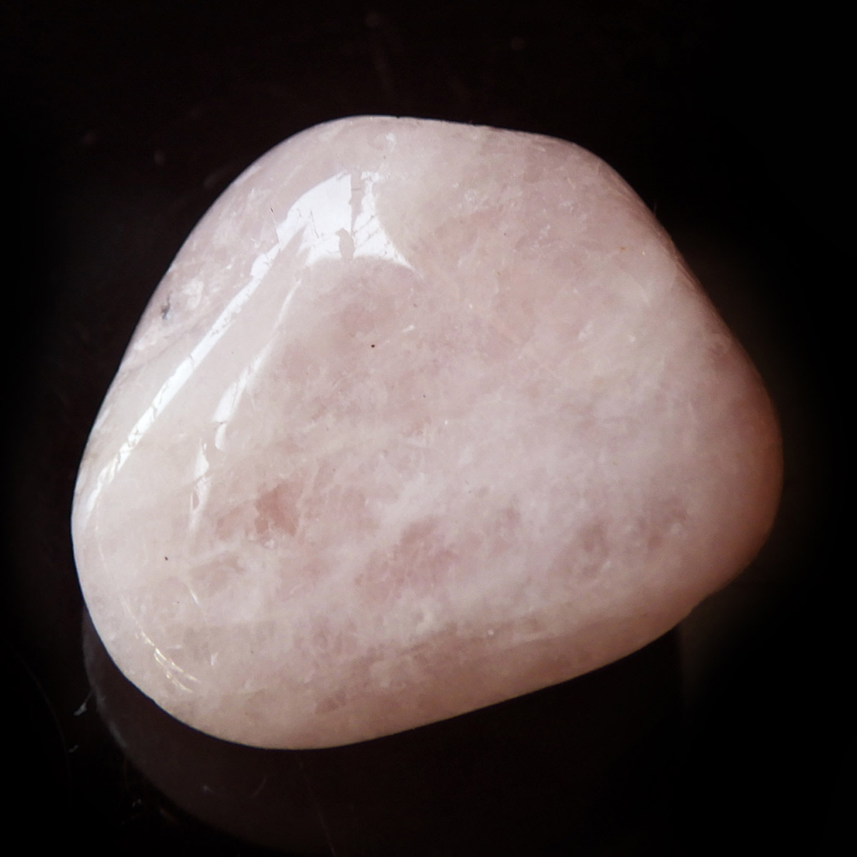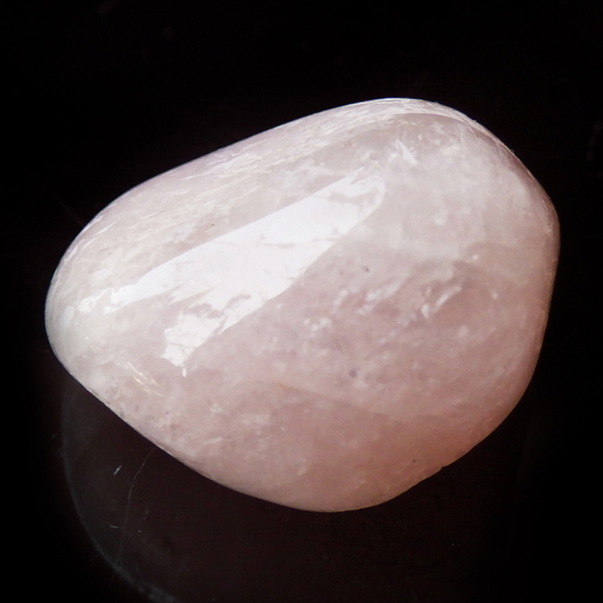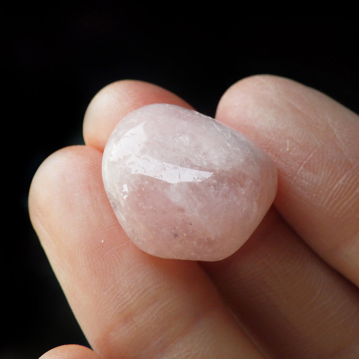 ブラジル産、ピンクペタライトのタンブルです。 ペタライト(ペタル石)は、無色透明のものが有名で1800年に発見された鉱物です。ペタライトはリチウムを豊富に含んだ準長石で、和名は破片が葉に似ていることから葉長石と呼ばれています。このペタライトに希少ではありますがピンクのものがあり、ナミビアとブラジルの限られたところで産出されます。ピンクの発色は マンガンによるもので、ピンクが濃いものほど評価は高くなります。ハッキリとピンク色の発色が確認できるものは超レアです。