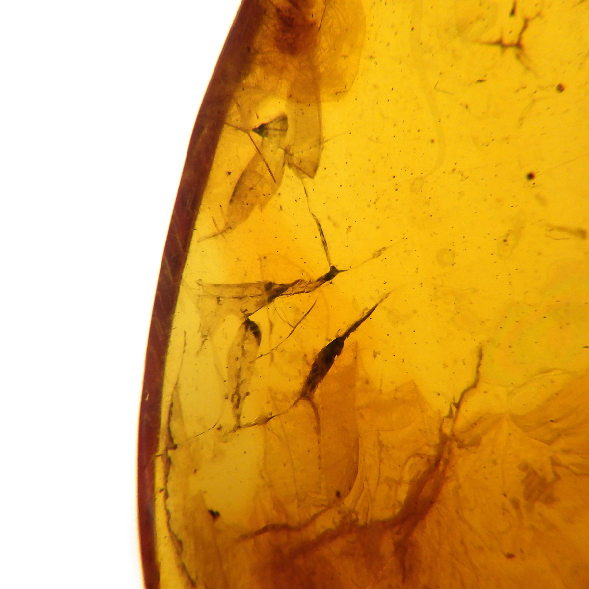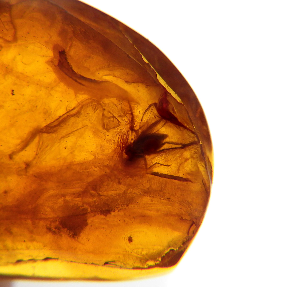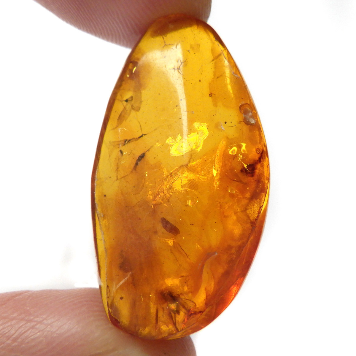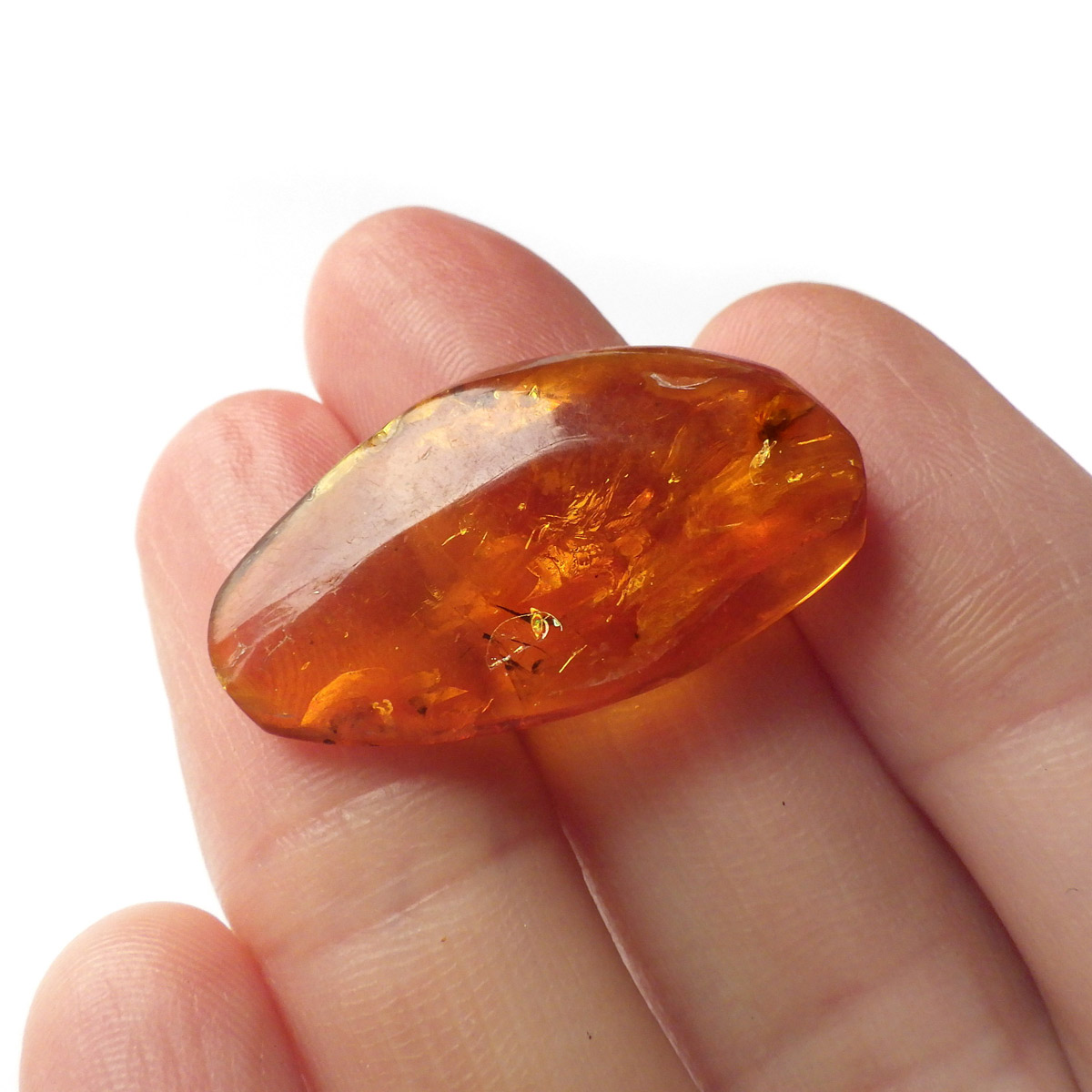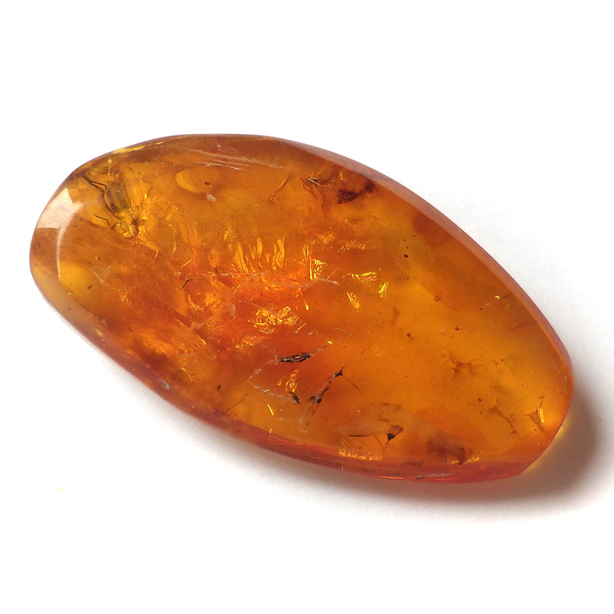 バルト海産の虫入りアンバー(琥珀)、原石です。 松柏類の樹脂が3000万年以上の時を経て化石化したもので、バルト海沿岸地方で多く産出し、紀元前2000年頃、ヨーロッパではすでに「アンバールート」という交易ルートがあったほど人気があったようです。 アンバーという名前は、古代アラビア語の「アンバール(海に漂うもの)」が由来です。樹脂を含む樹木が地殻変動などで海底に沈み、化石へと熟成され海岸に流れ着いたからで、「シー・アンバー」と呼ばれます。また、古代の昆虫などが入ったものは学術的価値も高く、「インセクト・アンバー」と呼ばれます。