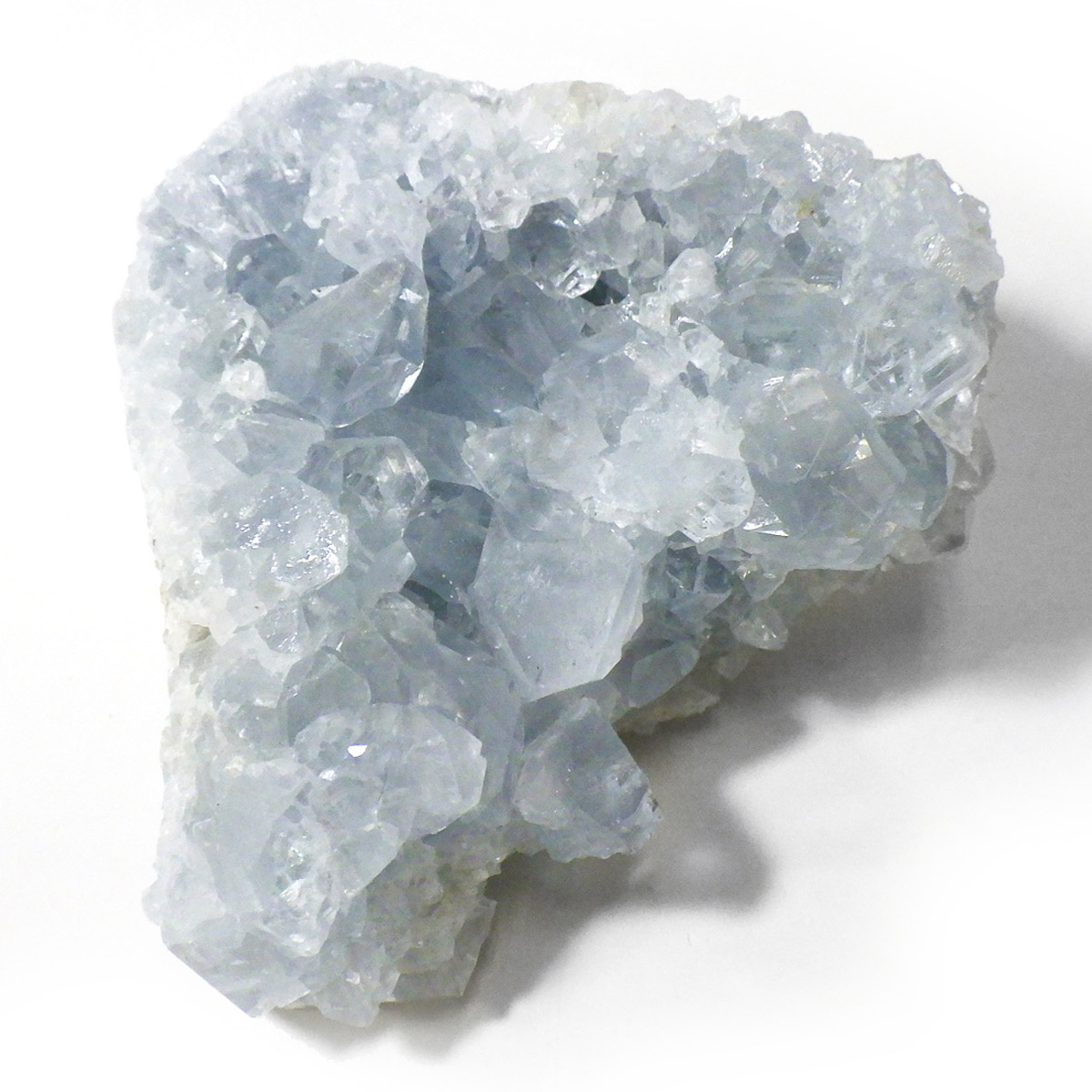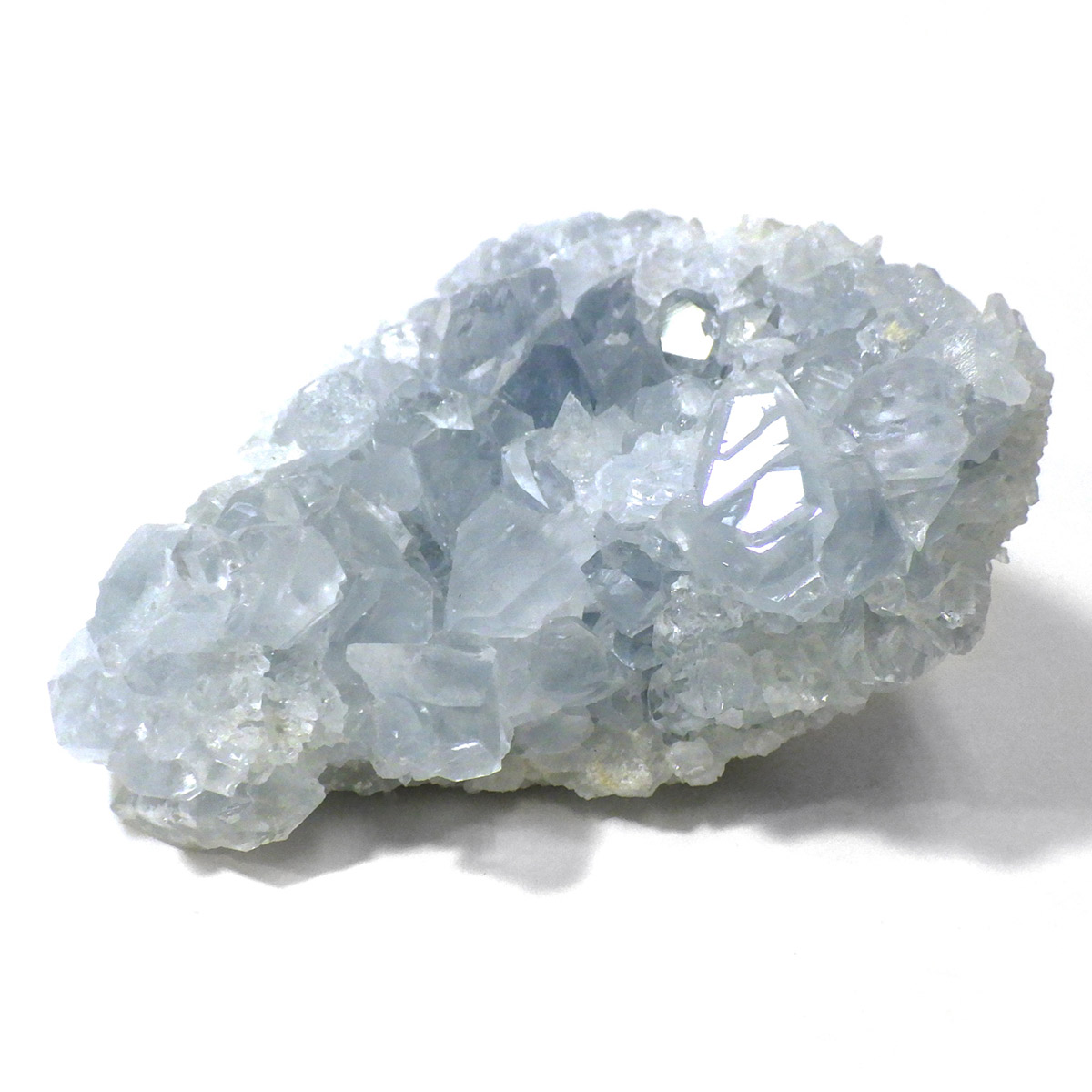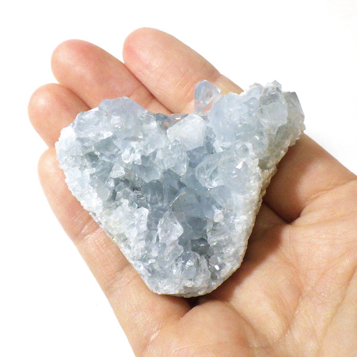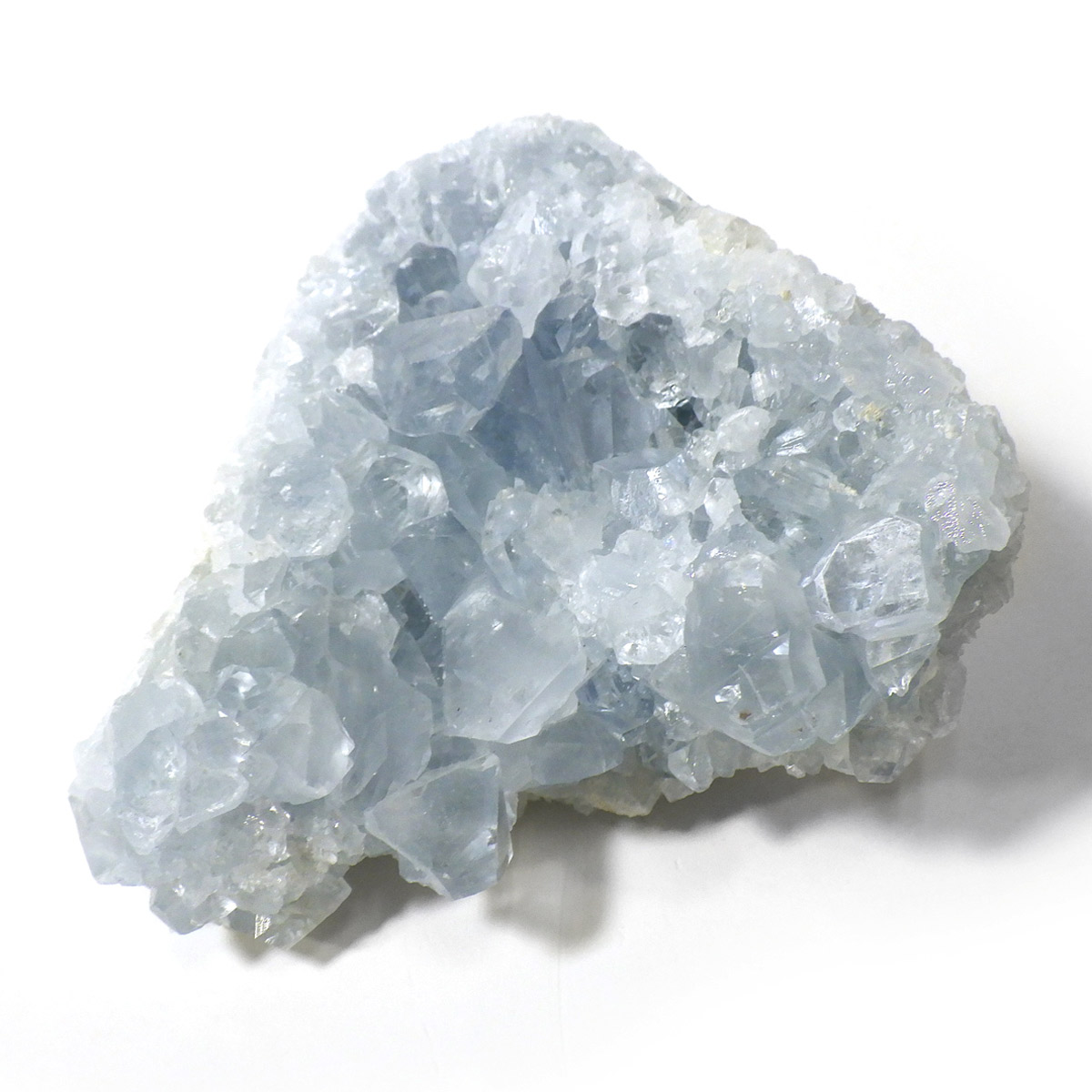 セレスタイト(天青石)母岩付きクラスターです。マダガスカル産のものは、母岩が丸みを帯びており、土台が白っぽいのが特徴です。 ころんとした可愛いサイズで、透明感あるブルーの結晶は非常に魅力的です。