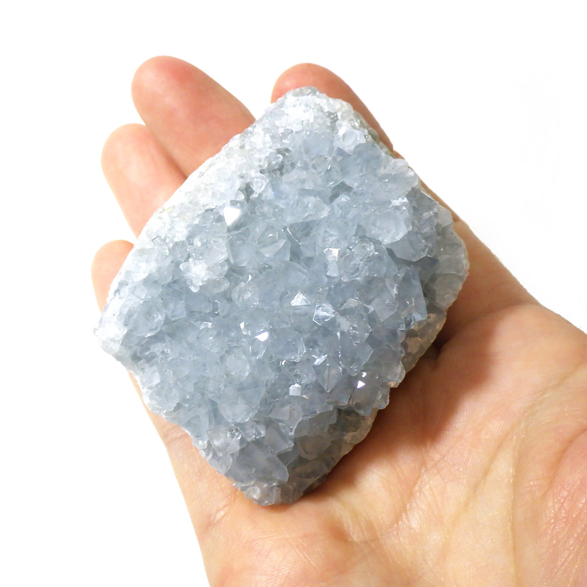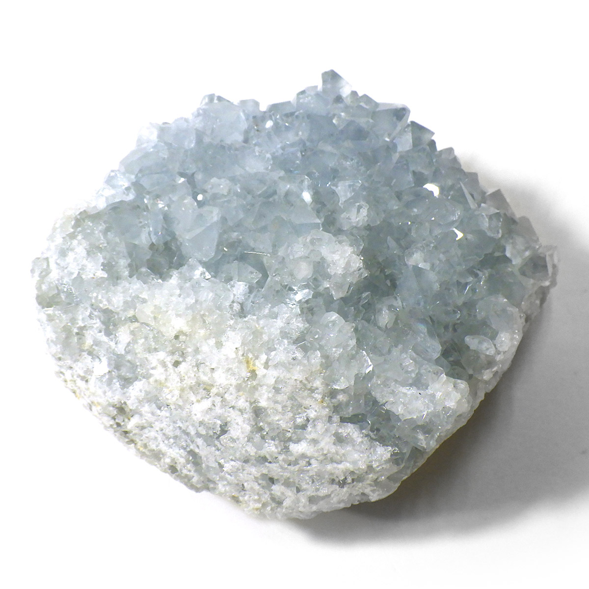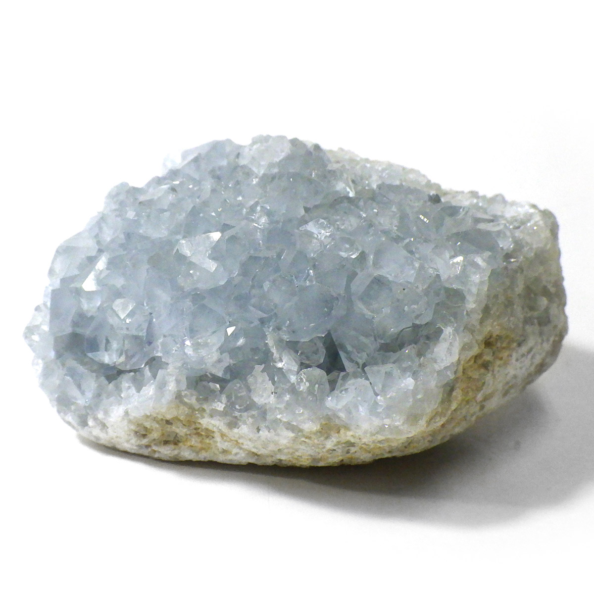 セレスタイト(天青石)母岩付きクラスターです。マダガスカル産のものは、母岩が丸みを帯びており、土台が白っぽいのが特徴です。 ころんとした可愛いフォルムで、透明感あるブルーの結晶は非常に魅力的です。