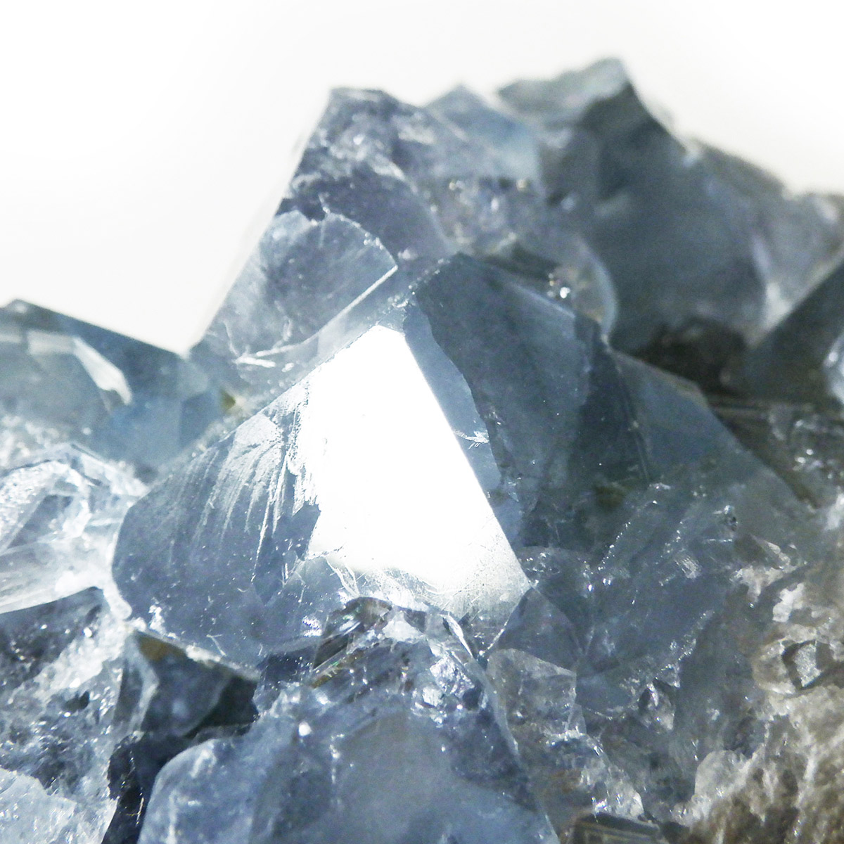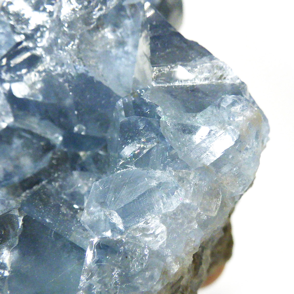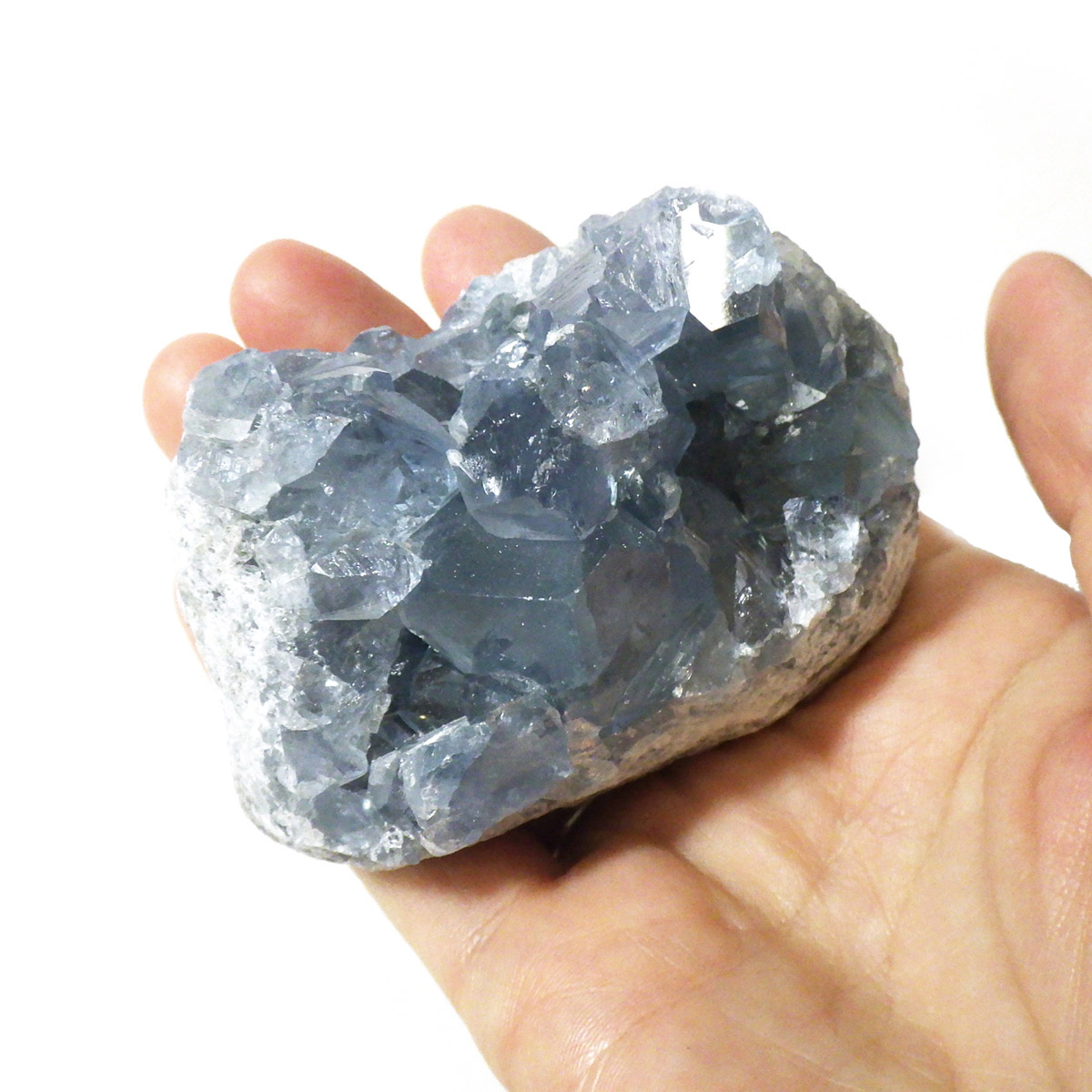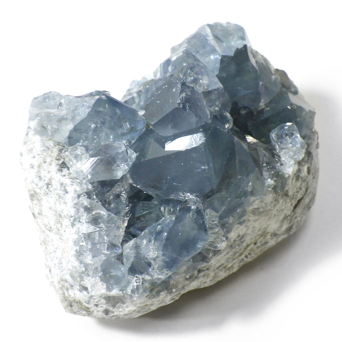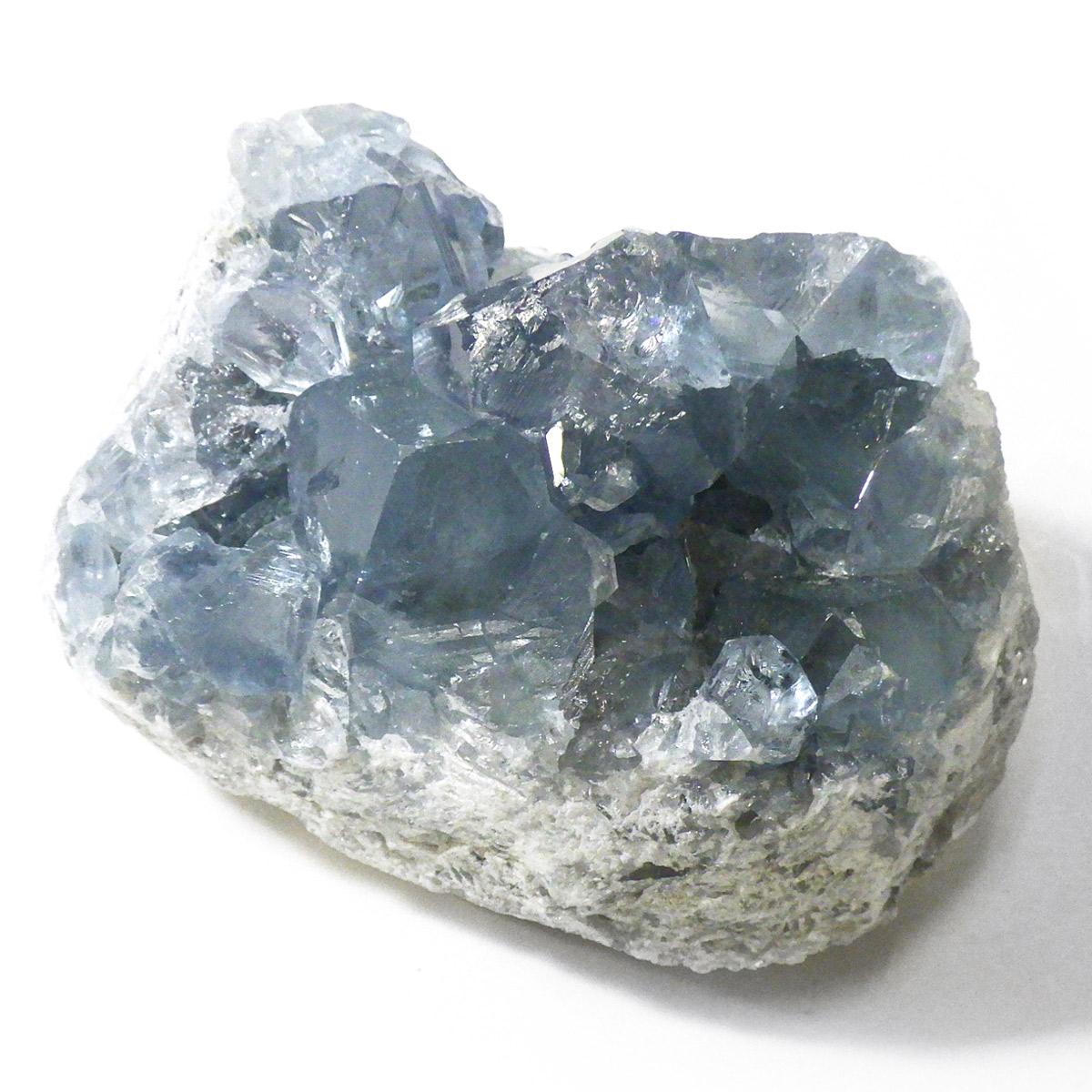 セレスタイト(天青石)母岩付きクラスターです。マダガスカル産のものは、母岩が丸みを帯びており、土台が白っぽいのが特徴です。 ころんとした可愛いフォルムで、透明感ある濃いブルーの大きな結晶は非常に魅力的です。