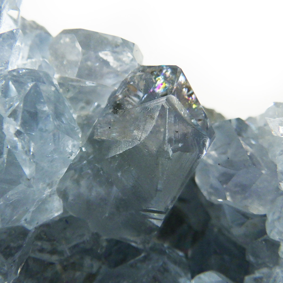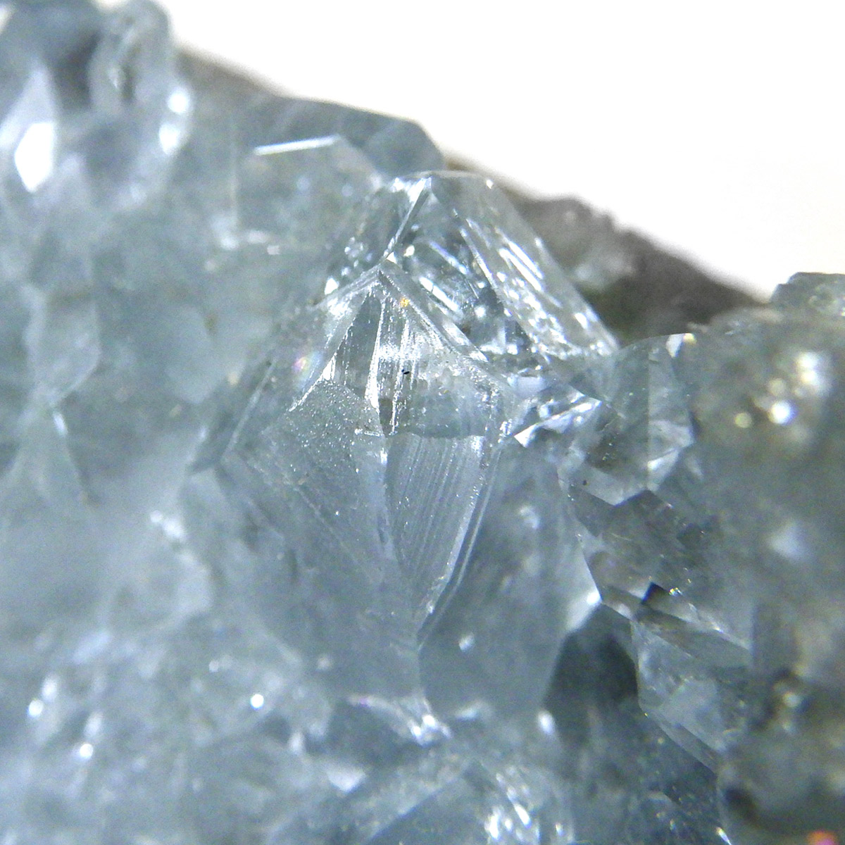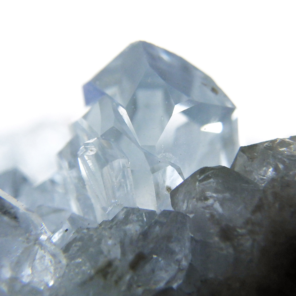 セレスタイト(天青石)母岩付きクラスターです。マダガスカル産のものは、母岩が丸みを帯びており、土台が白っぽいのが特徴です。 丸みを帯びた可愛いフォルムで、非常に高い透明度で濃いブルーの結晶は美しく魅力的です。
