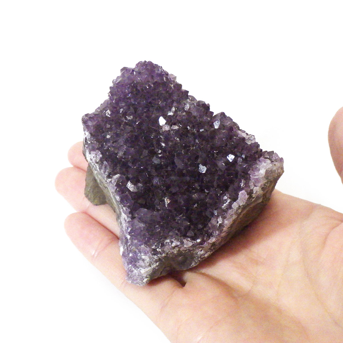 ウルグアイ産のブレスレットの浄化に適当なサイズのアメジストクラスターです。一つ一つの結晶が細かく光の反射で美しくキラキラと輝きます。透明感があり、良質なアメジストの証である紫の色がしっかりと入っています。とてもきれいでおすすめです。