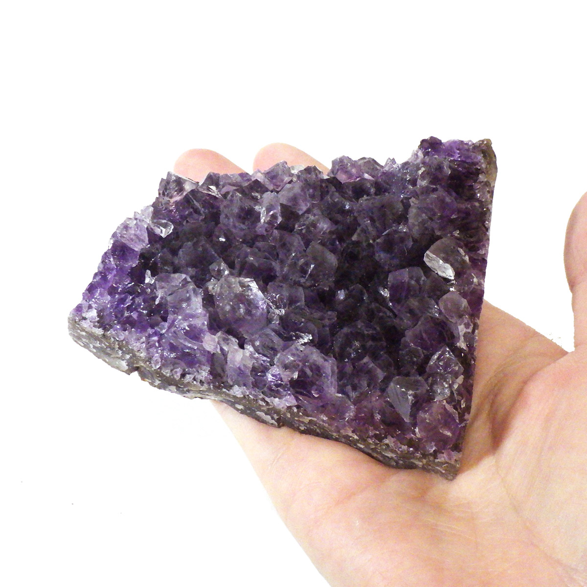 ウルグアイ産のブレスレットの浄化に適当なサイズのアメジストクラスターです。一つ一つの結晶が細かく光の反射で美しくキラキラと輝きます。透明感があり、良質なアメジストの証である紫の色がしっかりと入っています。とてもきれいでおすすめです。