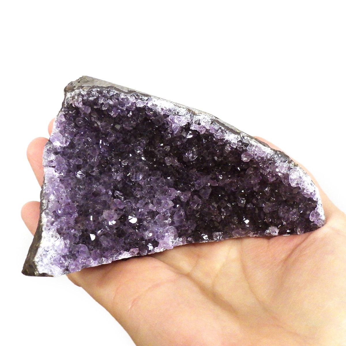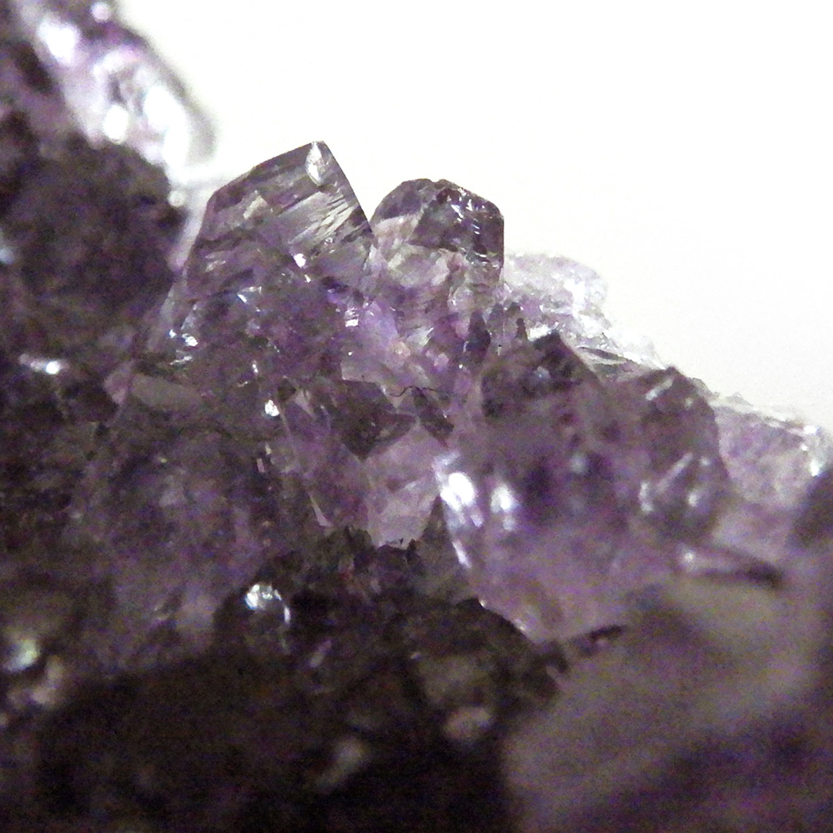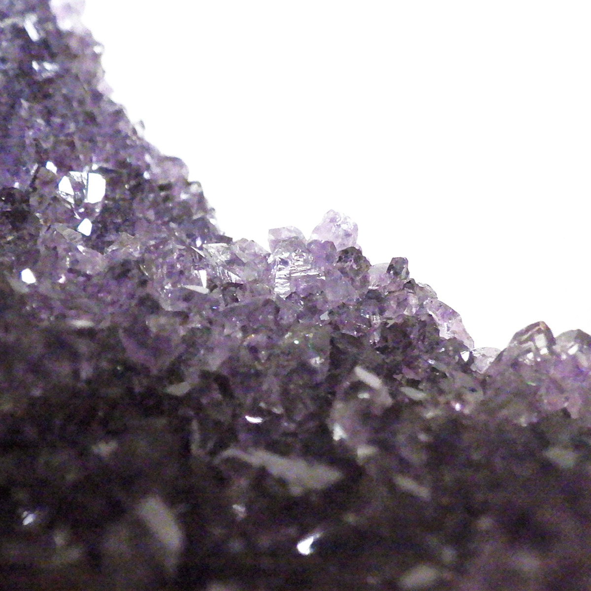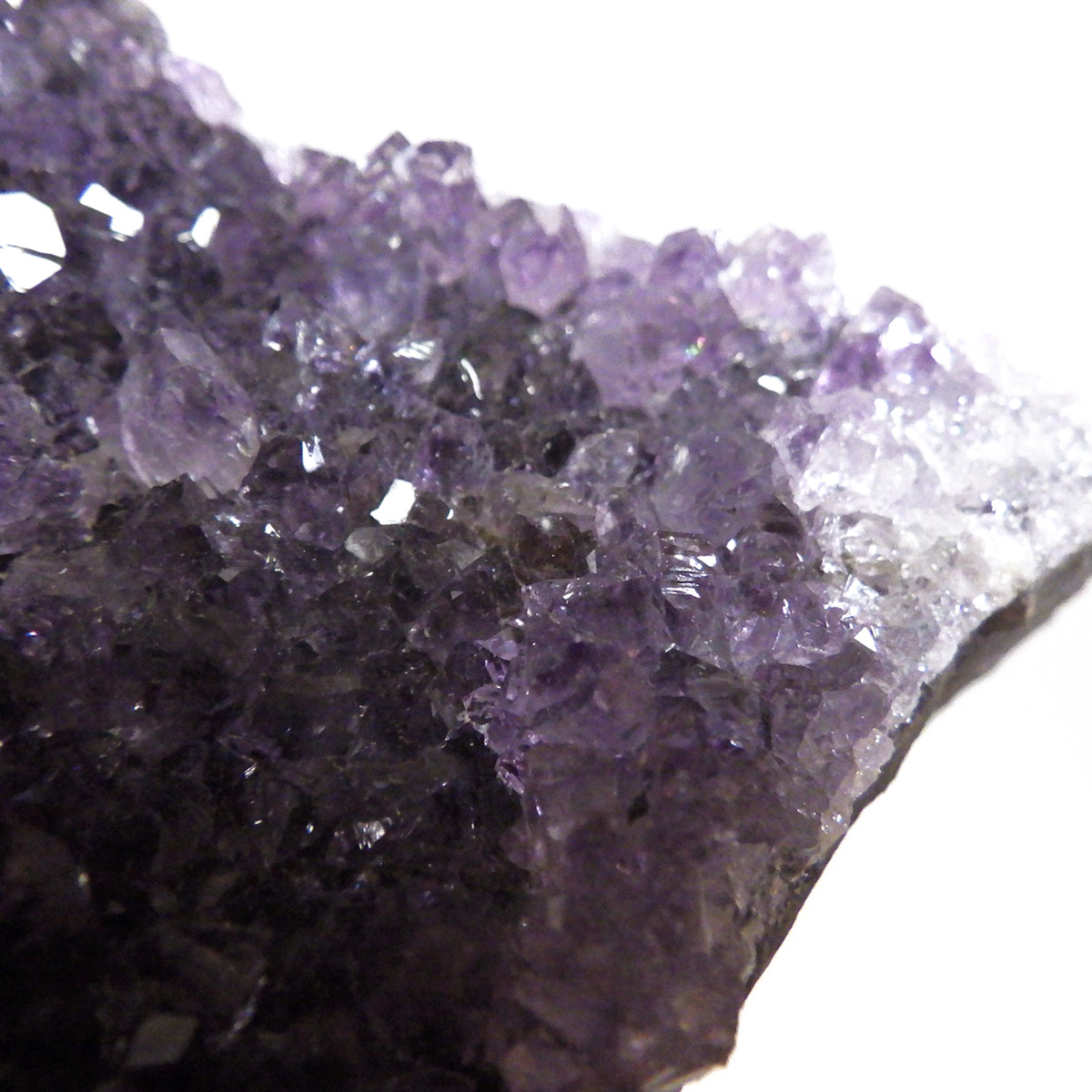 ウルグアイ産のブレスレットの浄化に適当なサイズのアメジストクラスターです。一つ一つの結晶が細かく光の反射で美しくキラキラと輝きます。透明感があり、良質なアメジストの証である紫の色がしっかりと入っています。とてもきれいでおすすめです。