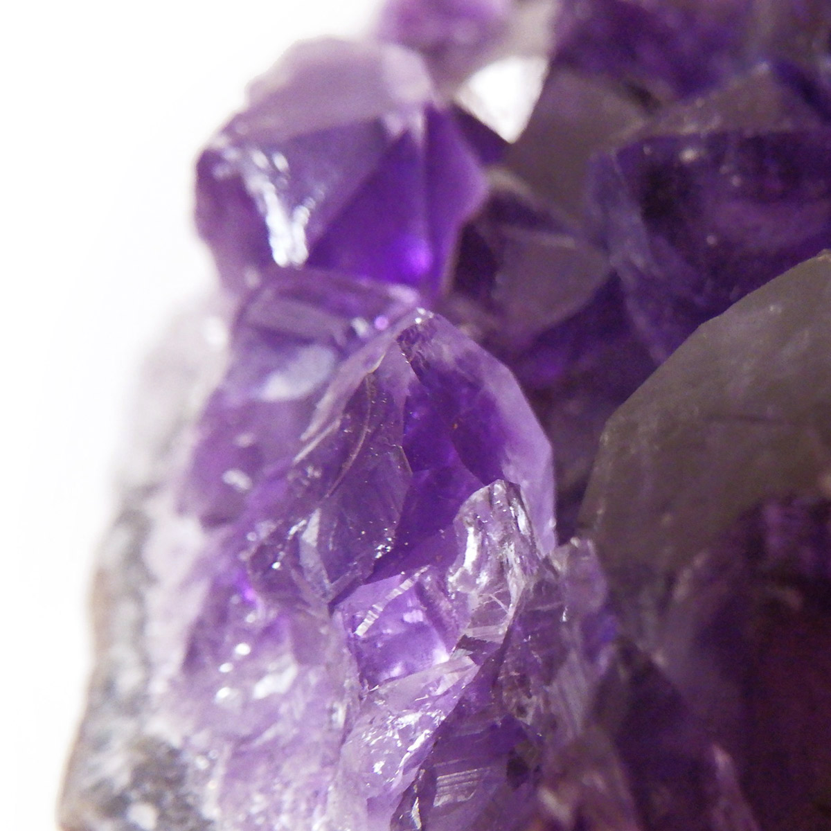 ウルグアイ産のブレスレットの浄化に適当なサイズのアメジストクラスターです。一つ一つの結晶が細かく光の反射で美しくキラキラと輝きます。透明感があり、良質なアメジストの証である紫の色がしっかりと入っています。とてもきれいでおすすめです。