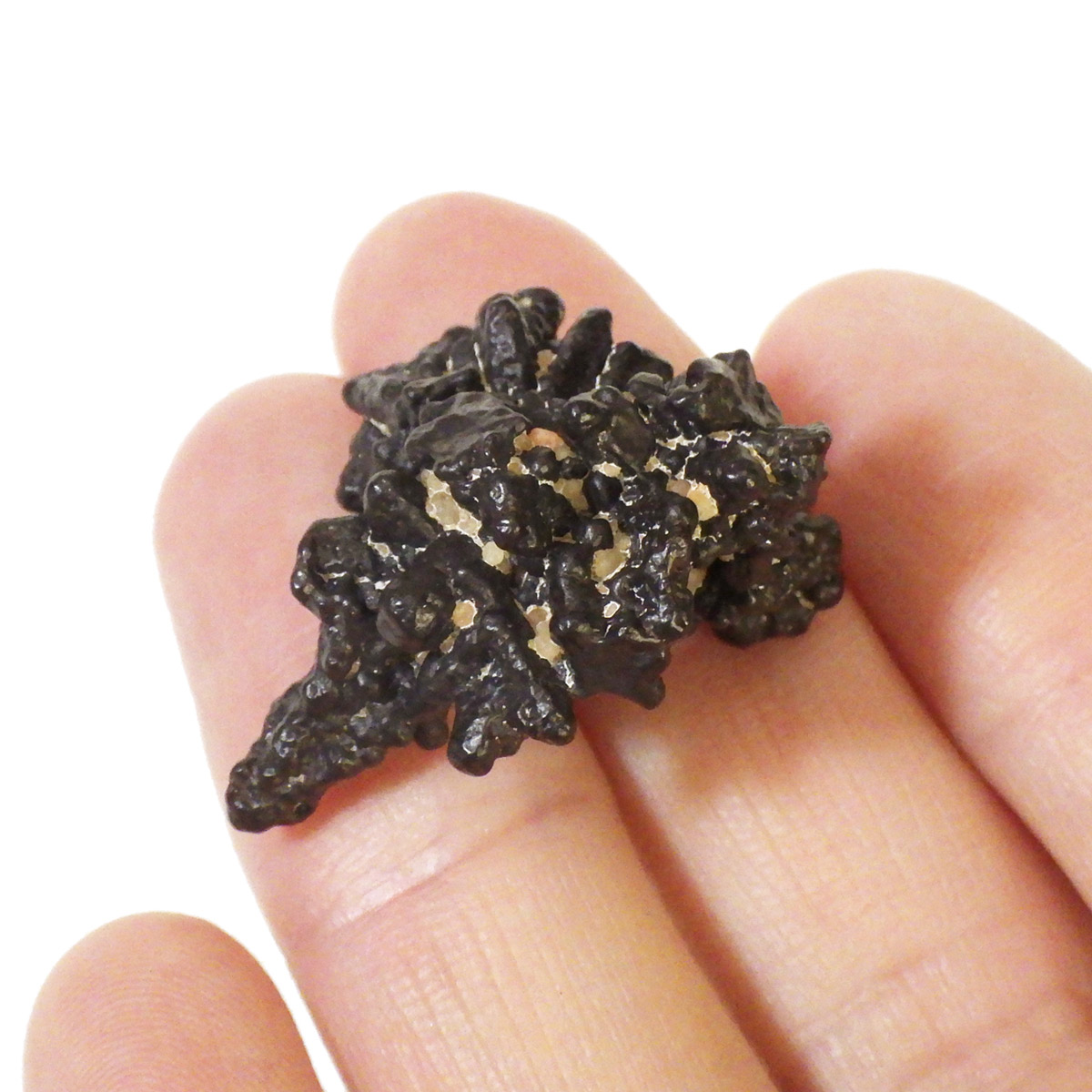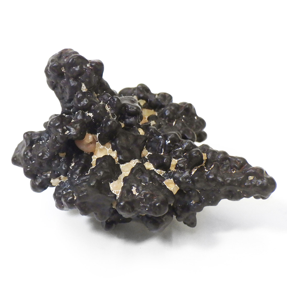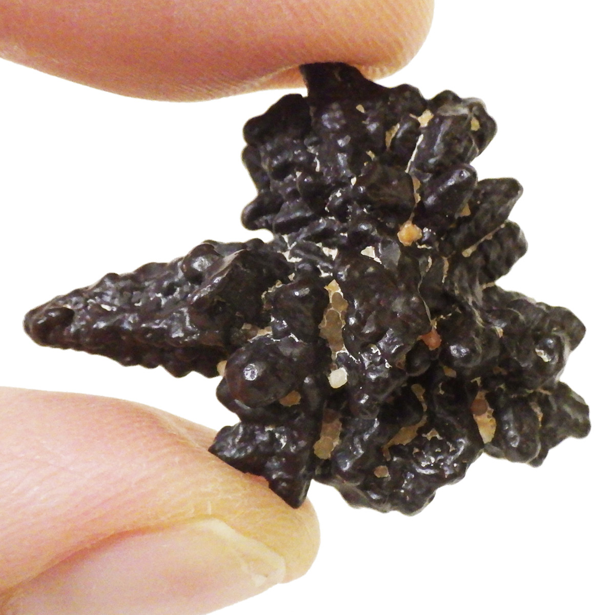 エジプトのサハラ砂漠の奥地から産出されたZストーンです。Zストーンは別名「エジプトの星」とも呼ばれています。Zストーンはマーカサイト(白鉄鉱)という鉱物が、長い時間をかけてゲーサイト(針鉄鉱)に変化した、マーカサイトの仮晶です。仮晶とは鉱物の結晶形が保たれたまま、中身が別の鉱物によって置き換わることで、本来はありえない形をとる現象のことです。Zストーンはアメリカで「ミネラル・マリファナ」とも呼ばれています。その理由はZストーンを持つと幸福感でいっぱいになり、ハイテンションな状態になるといわれているからです。