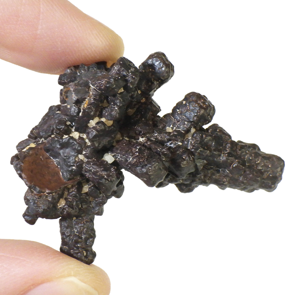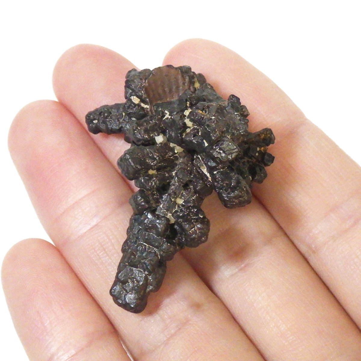 エジプトのサハラ砂漠の奥地から産出されたZストーンです。Zストーンは別名「エジプトの星」とも呼ばれています。Zストーンはマーカサイト(白鉄鉱)という鉱物が、長い時間をかけてゲーサイト(針鉄鉱)に変化した、マーカサイトの仮晶です。仮晶とは鉱物の結晶形が保たれたまま、中身が別の鉱物によって置き換わることで、本来はありえない形をとる現象のことです。Zストーンはアメリカで「ミネラル・マリファナ」とも呼ばれています。その理由はZストーンを持つと幸福感でいっぱいになり、ハイテンションな状態になるといわれているからです。