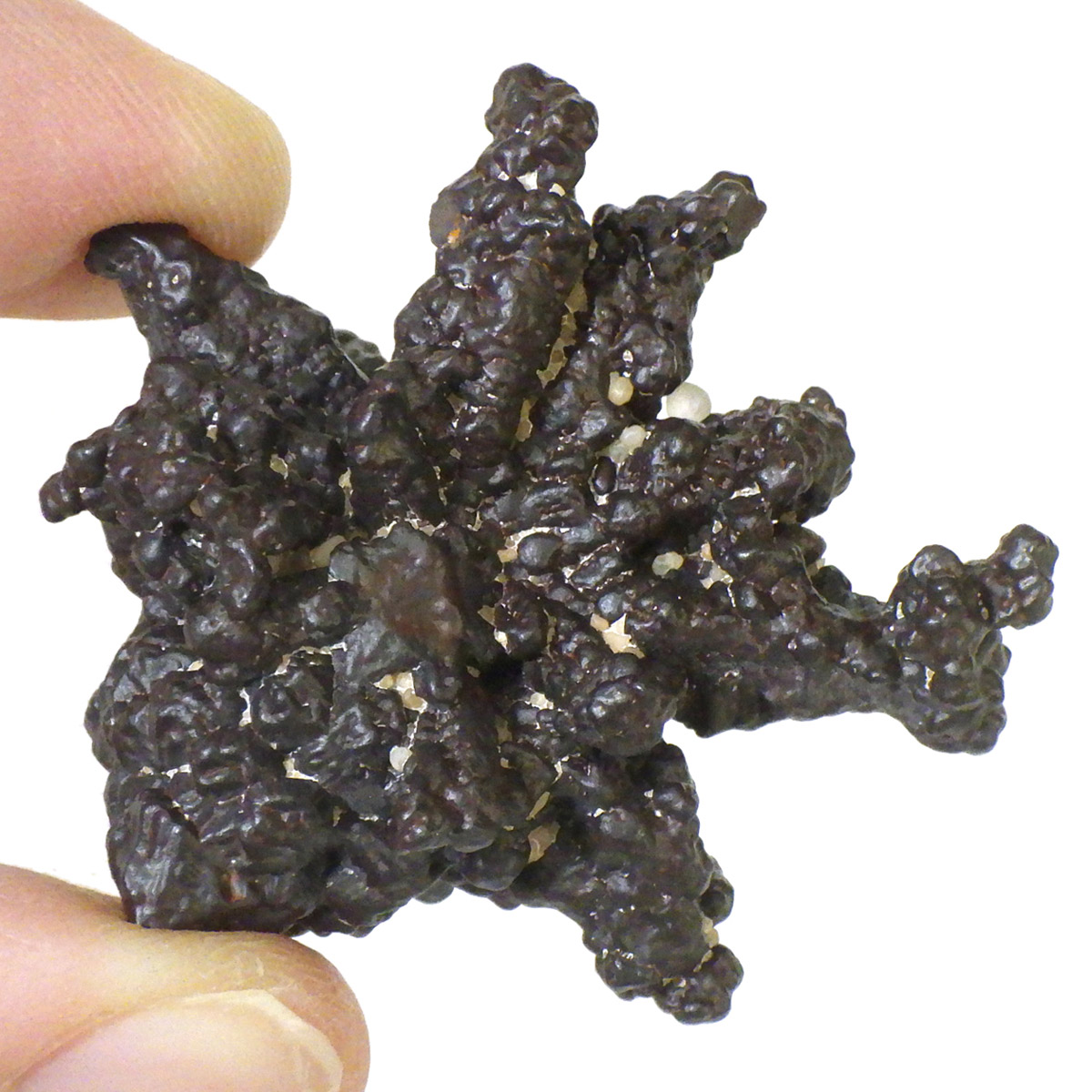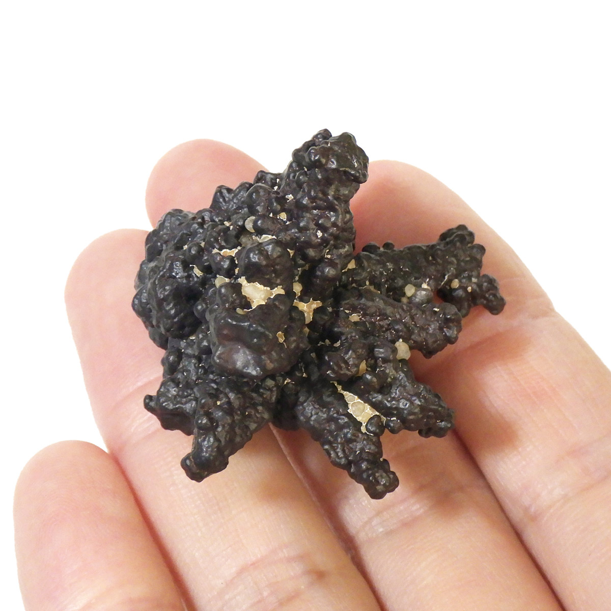 エジプトのサハラ砂漠の奥地から産出されたZストーンです。Zストーンは別名「エジプトの星」とも呼ばれています。Zストーンはマーカサイト(白鉄鉱)という鉱物が、長い時間をかけてゲーサイト(針鉄鉱)に変化した、マーカサイトの仮晶です。仮晶とは鉱物の結晶形が保たれたまま、中身が別の鉱物によって置き換わることで、本来はありえない形をとる現象のことです。Zストーンはアメリカで「ミネラル・マリファナ」とも呼ばれています。その理由はZストーンを持つと幸福感でいっぱいになり、ハイテンションな状態になるといわれているからです。