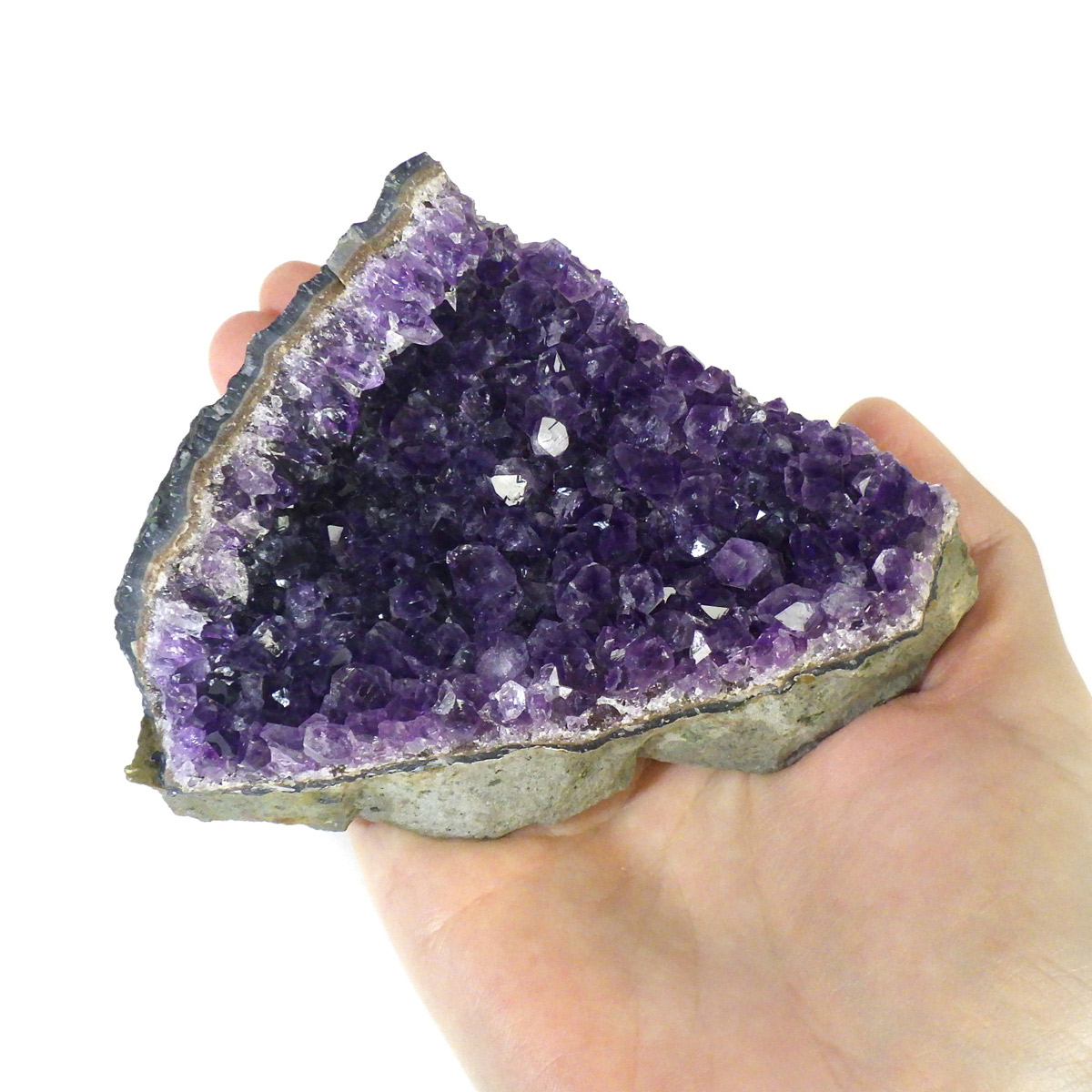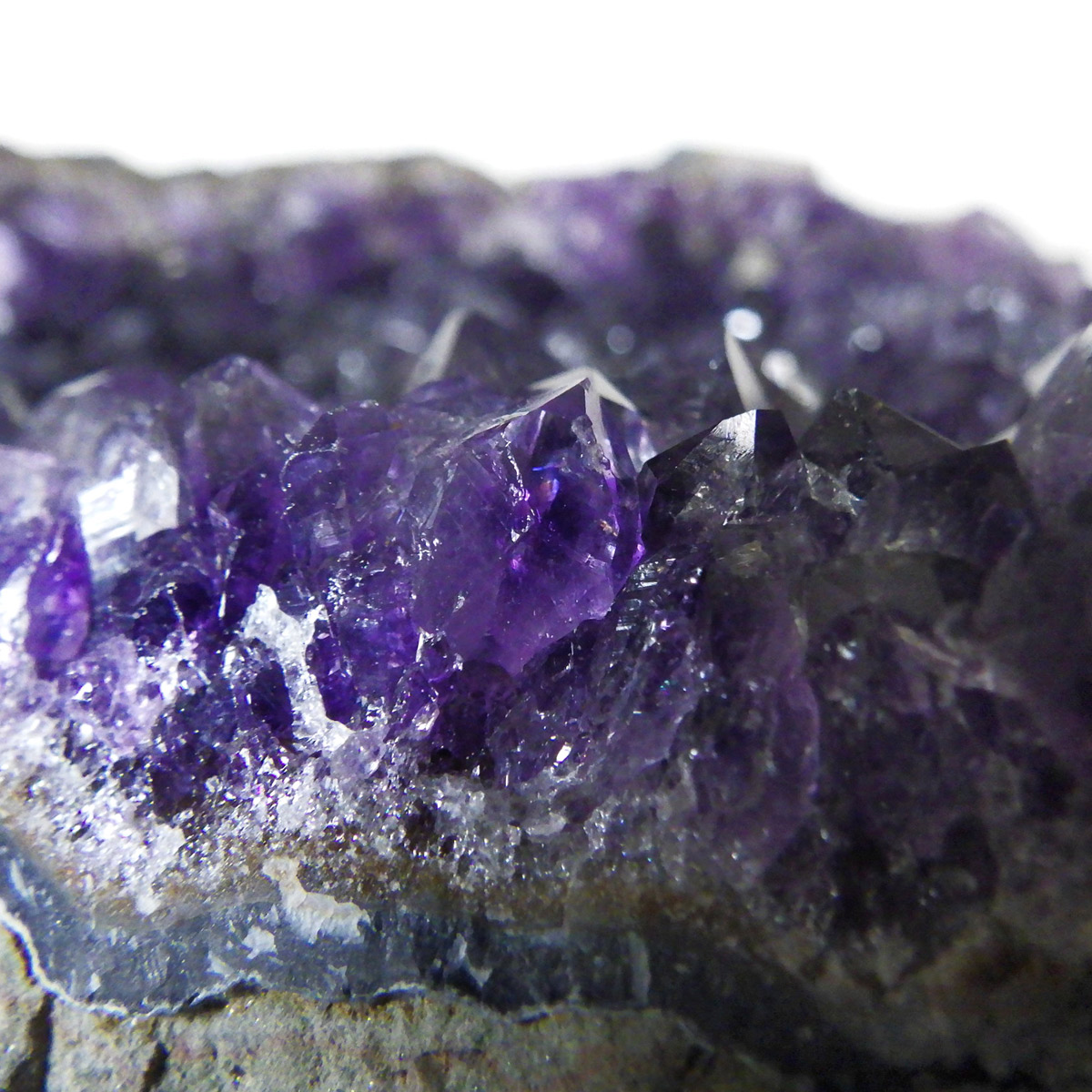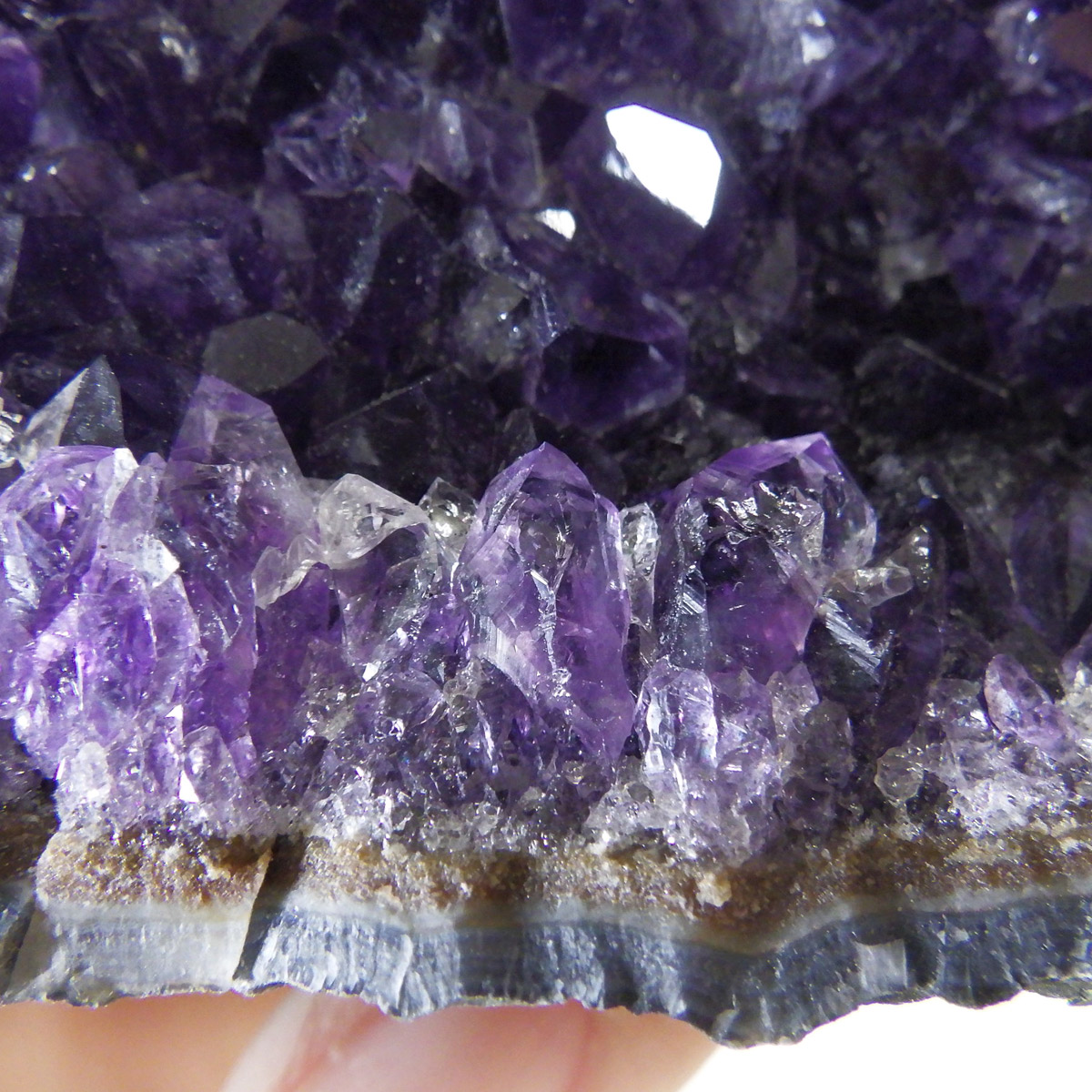 ウルグアイ産のアメジストクラスターです。一つ一つの結晶が細かく光の反射で美しくキラキラと輝きます。良質なアメジストの証である紫の色がしっかりと入っています。