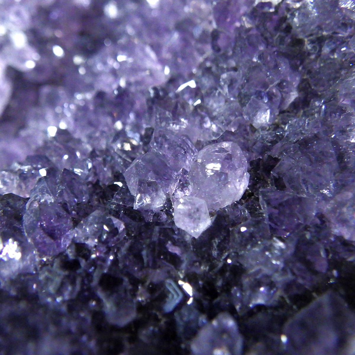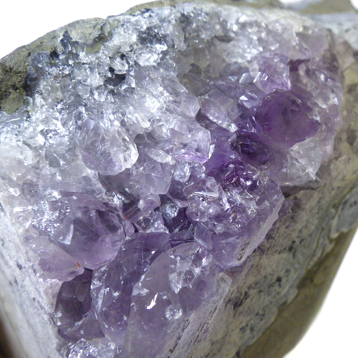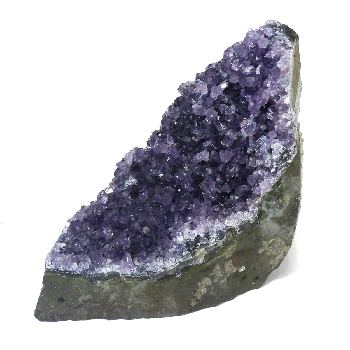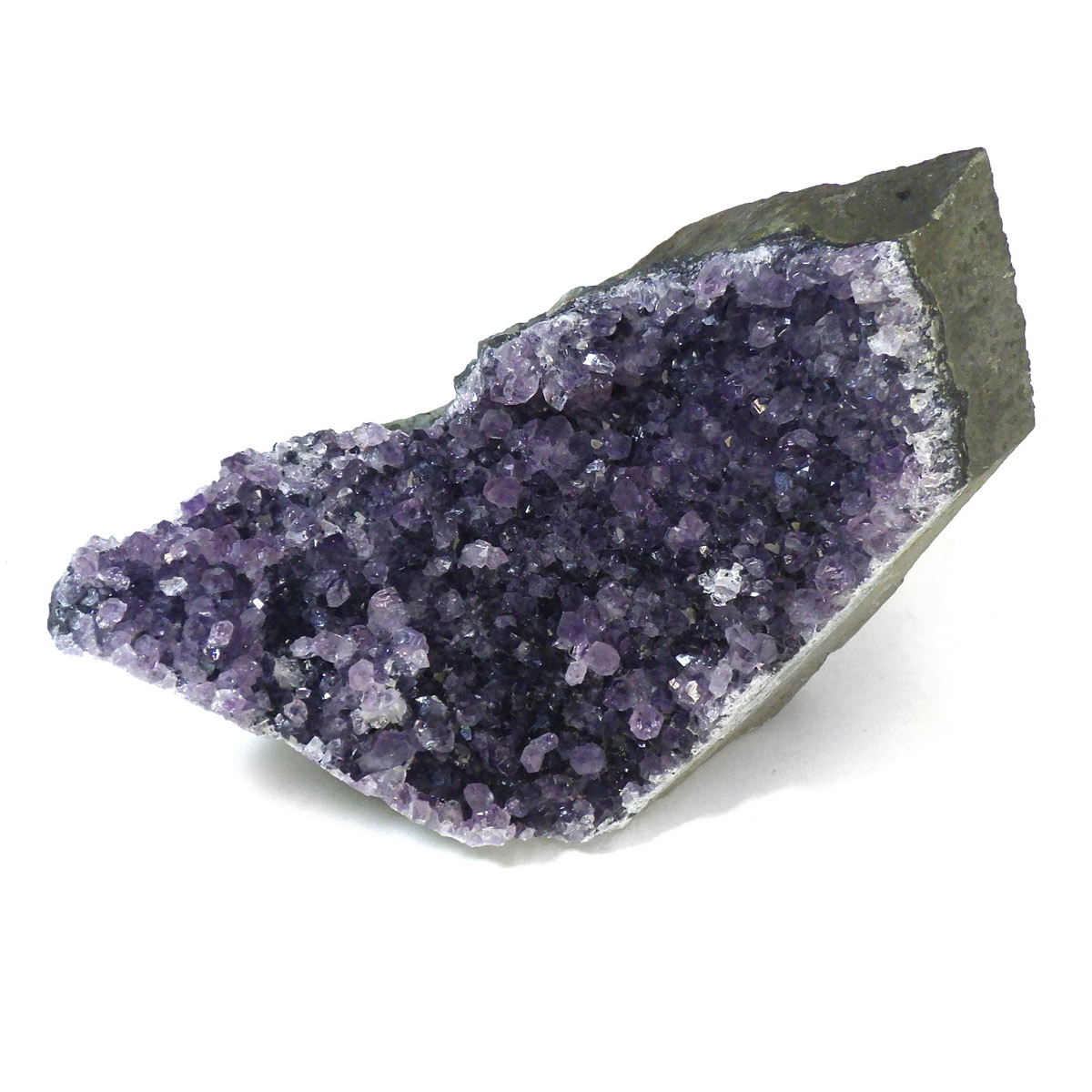 ウルグアイ産のアメジストクラスターです。一つ一つの結晶が細かく光の反射で美しくキラキラと輝きます。良質なアメジストの証である紫の色がしっかりと入っていて、座りがよく安定感があります。裏面にも透明度の高いアメジストが入っていて二方向で楽しめます。