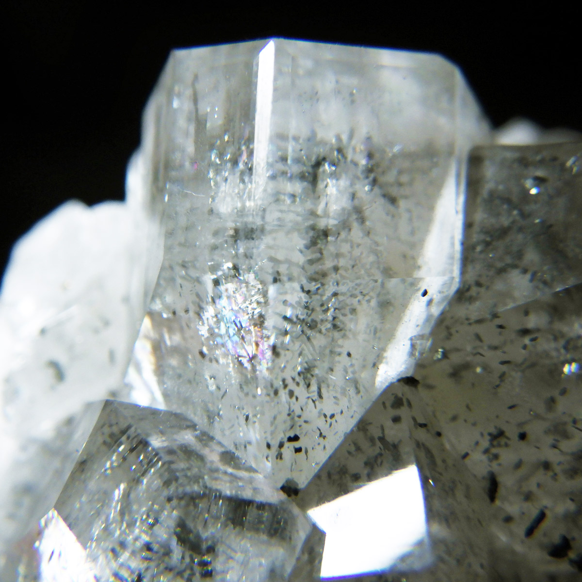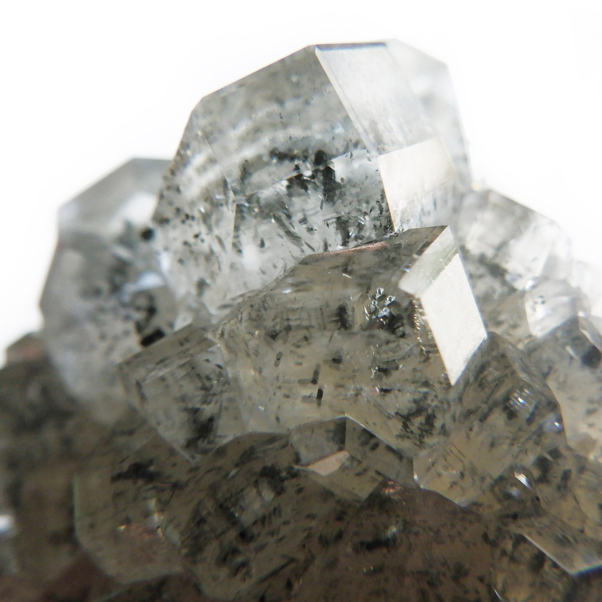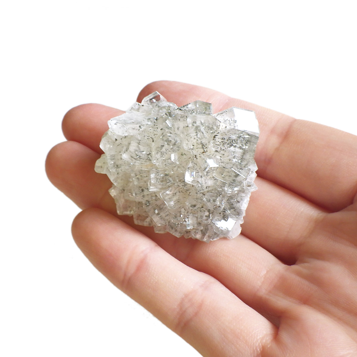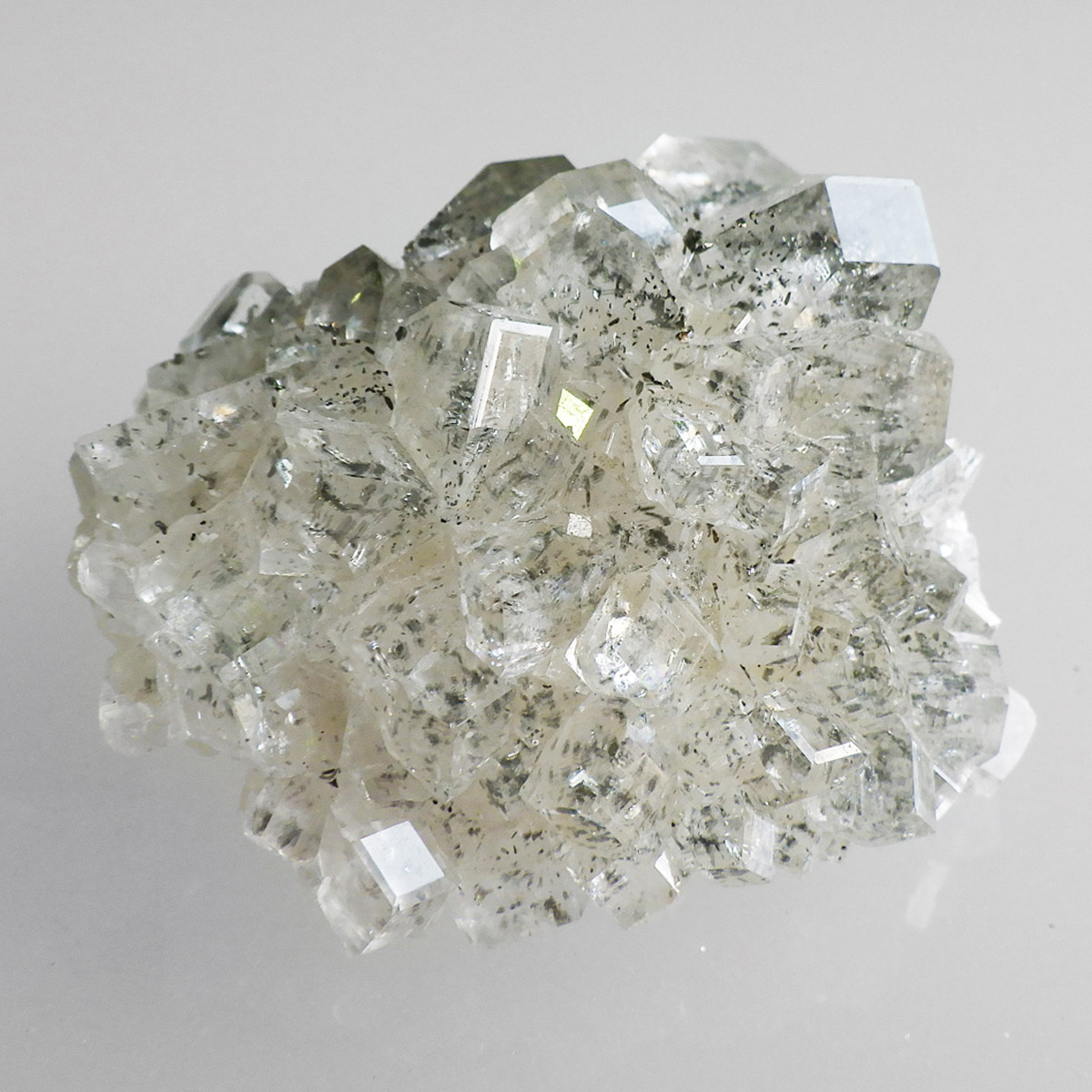 アメリカのアイオワ州バッファロー鉱山で産出された、マーカサイトを内包したカルサイトの結晶です。カルサイトのキューブ結晶は、素晴らしい煌きとテリとレインボーがみられます。複屈折という光学現象を持ち、文字の上に載せると二つにダブって見える「ダブリング(二重像現象)」のような現象を起こします。それによって内部のマーカサイトやレインボーがダブって見え、楽しい世界を見せてくれます。