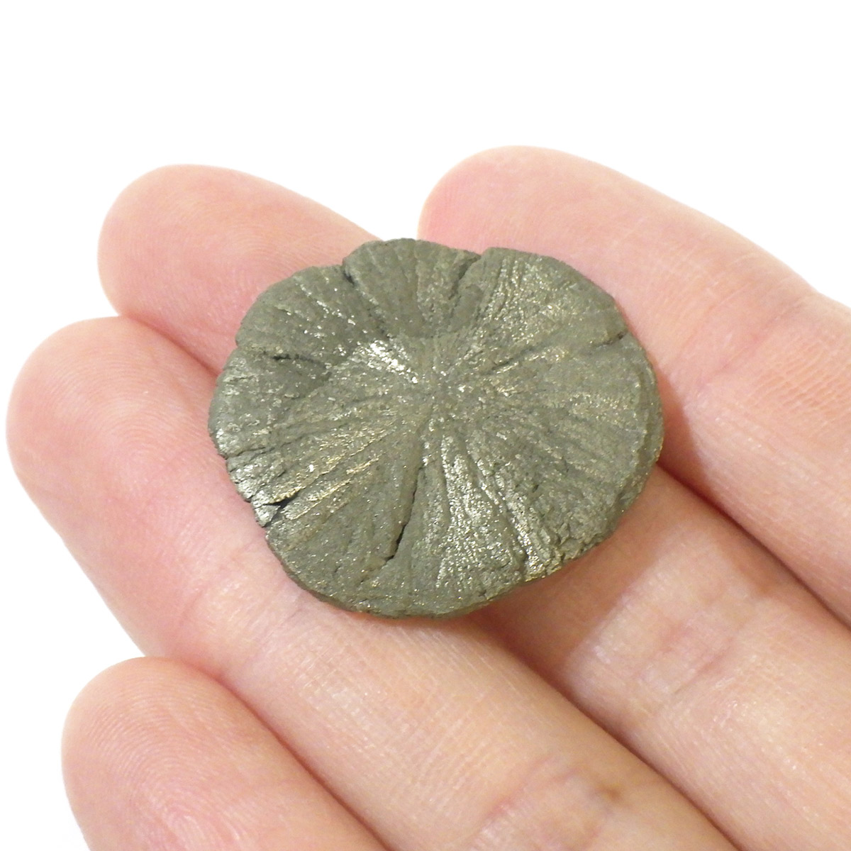 500円玉くらいの可愛いサイズですが、パイライトサンの名に恥じない円盤形結晶です。