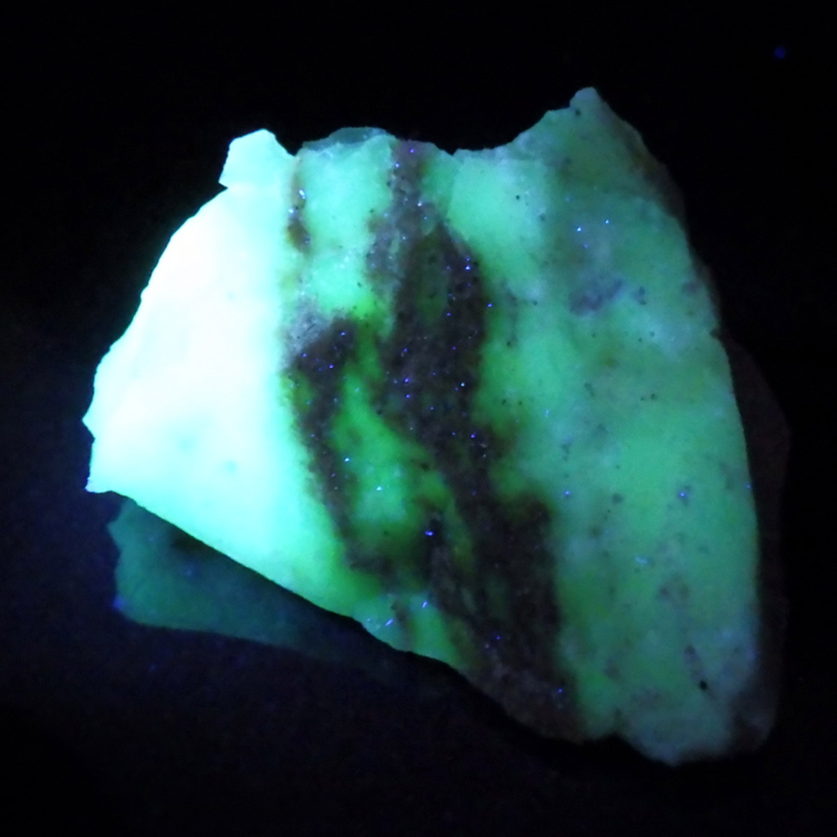 ブラジル産のホワイトオパール原石です。カラーはホワイトで不透明なコモンオパールです。表面はつるっと艶があります。紫外線ライト(長波365nm)で緑に蛍光性を示します。