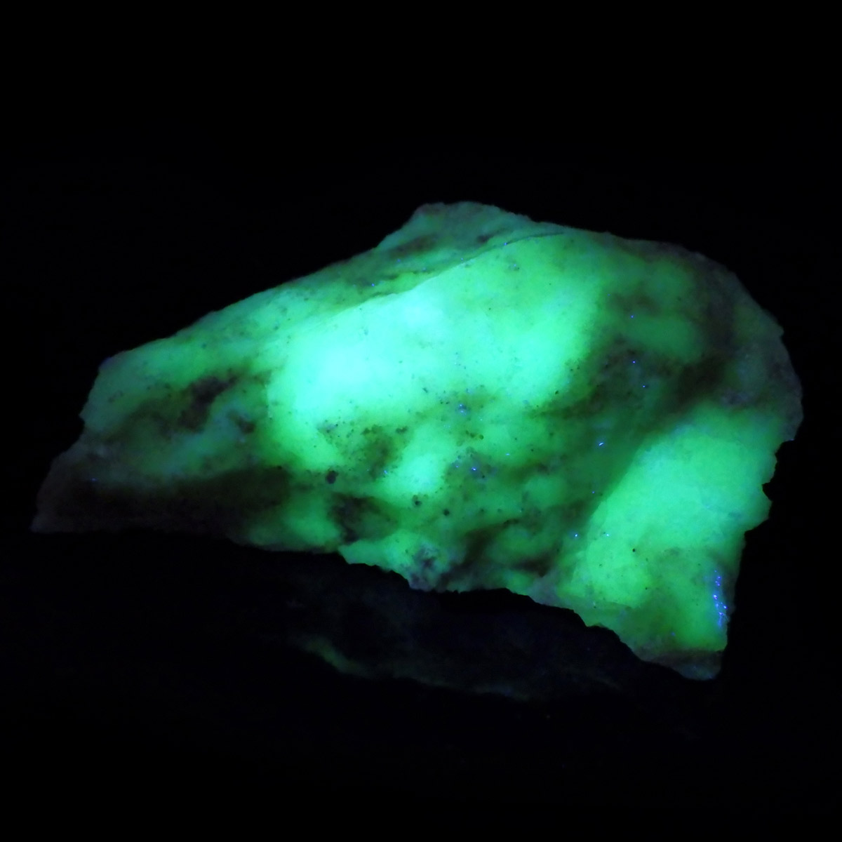 ブラジル産のホワイトオパール原石です。カラーはホワイトで不透明なコモンオパールです。表面はつるっと艶があります。紫外線ライト(長波365nm)で緑に蛍光性を示します。