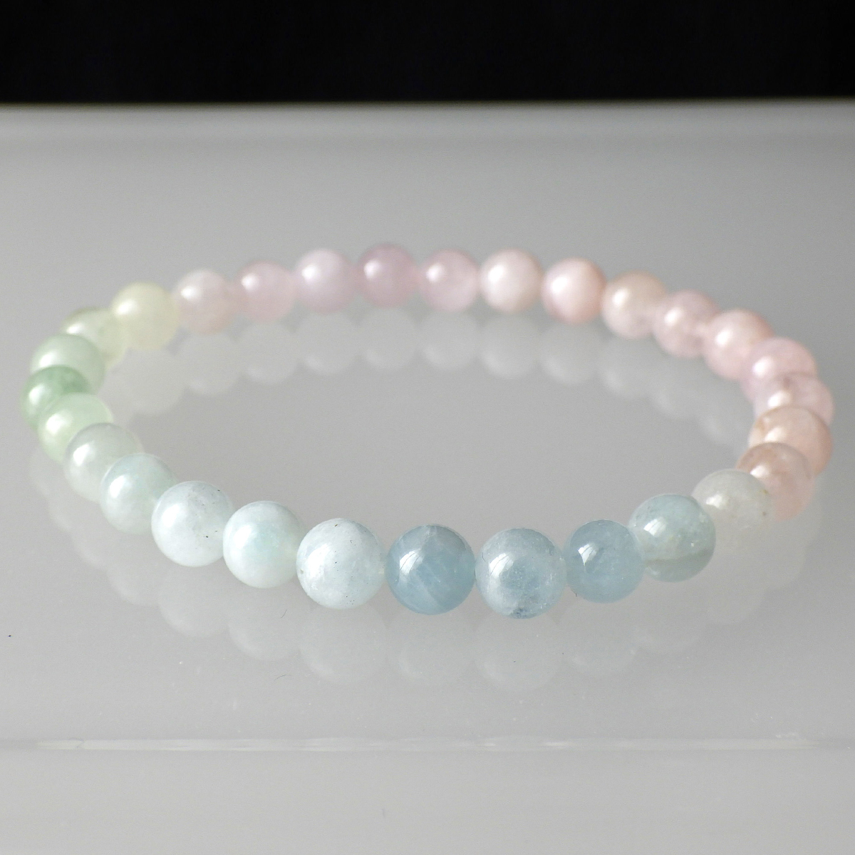 ミックスベリル ブレスレット 6mm玉×29個 内周15.5cm