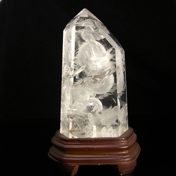 龍彫り水晶ポイント 台付き