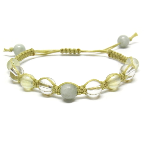 編み込みブレスレット ビルマ翡翠×水晶×プレナイト
