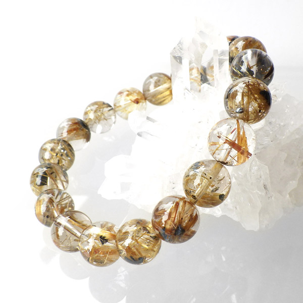 タイチンルチルクォーツ ブレスレット 7mm玉×26個 内周16cm 13g