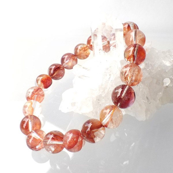 レッドオーロラクォーツ ブレスレット 10mm玉×20個 内周16.5cm 26g