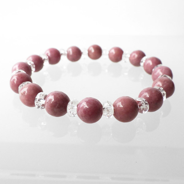 ロードナイトと水晶のブレスレット 8mm玉 内周15cm