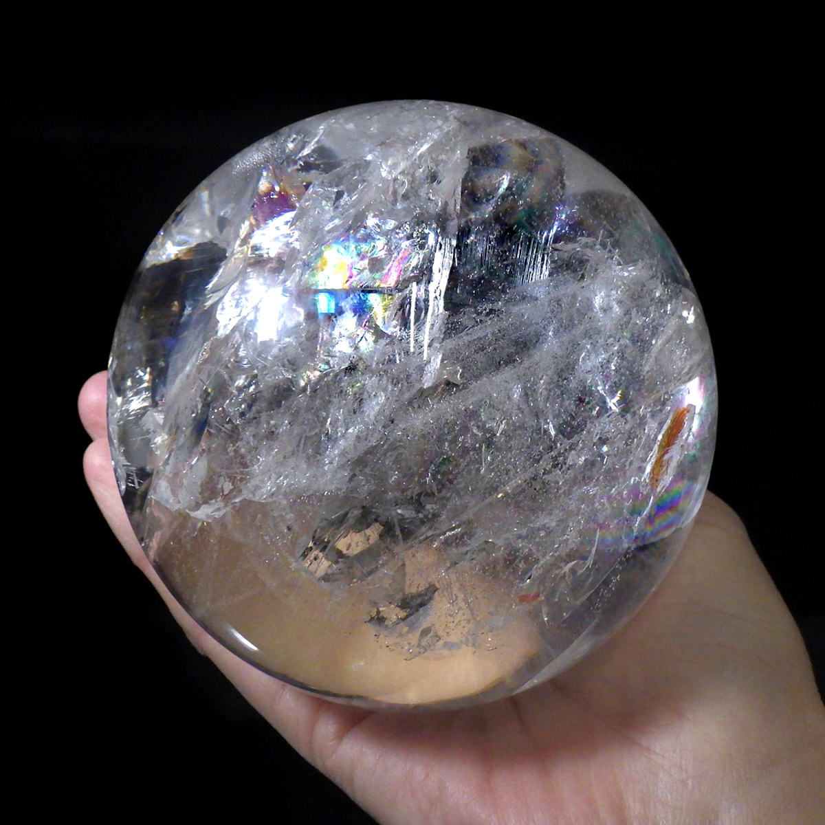 レムリアン水晶球 直径96mm 丸玉 スフィア ブラジル・ミナスジェライス州産 金属製台・木製台付き
