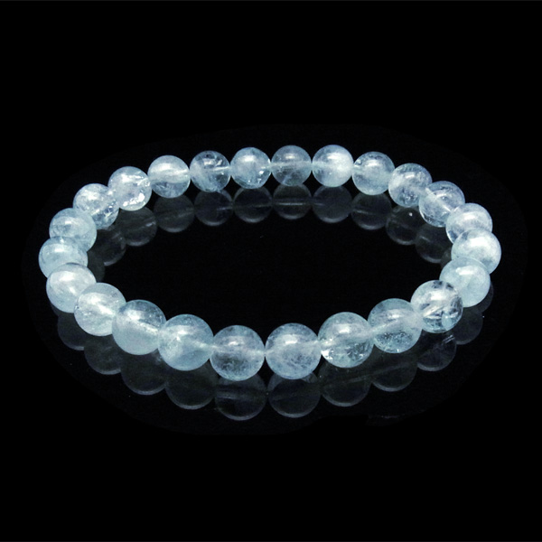 EX アクアマリン ブレスレット 8mm玉×24個 内周17cm