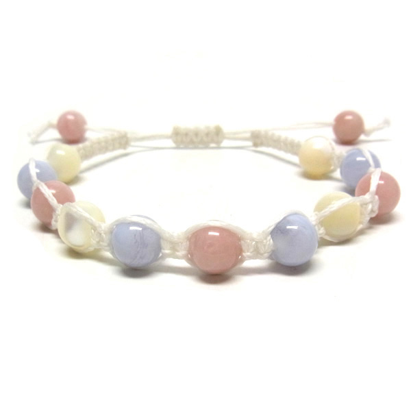 編み込みブレスレット ピンクオパール×ブルーレースアゲート×マザーオブパール