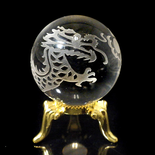 水晶 丸玉 龍裏彫り 直径45mm 水晶球 スフィア 金属台付き
