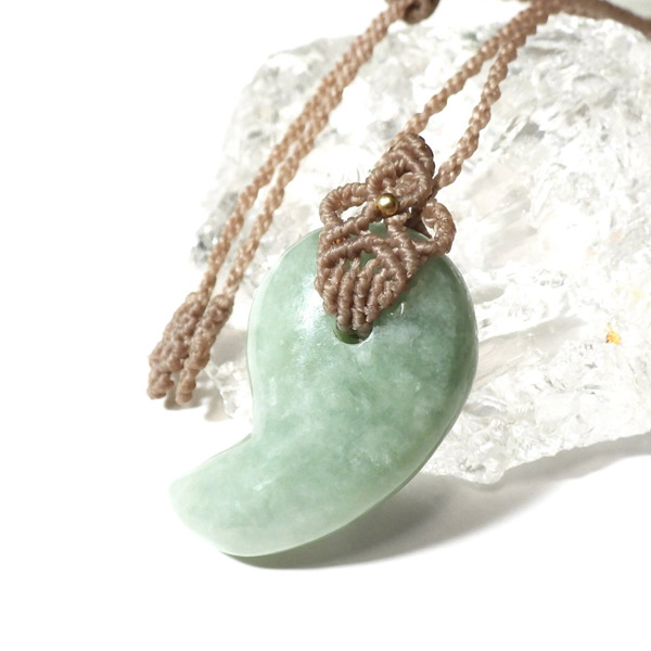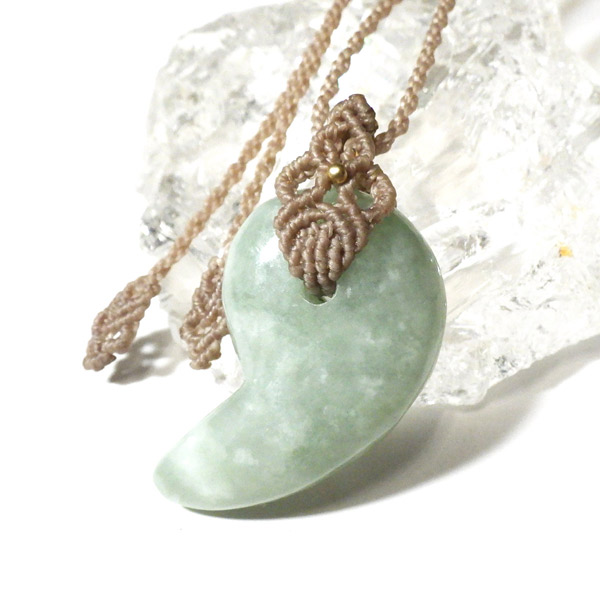ジェダイト(翡翠) 勾玉 マクラメペンダント ミャンマー産