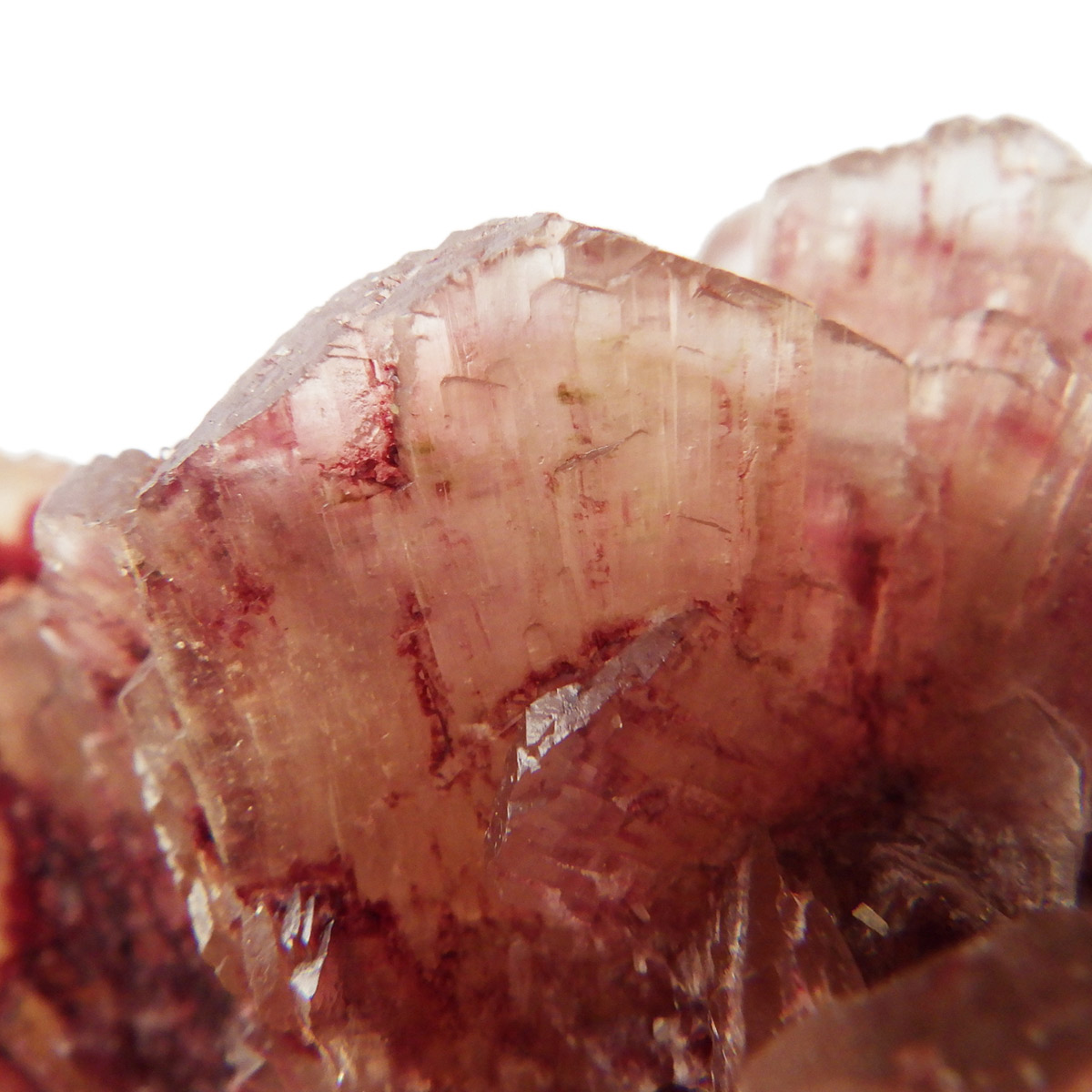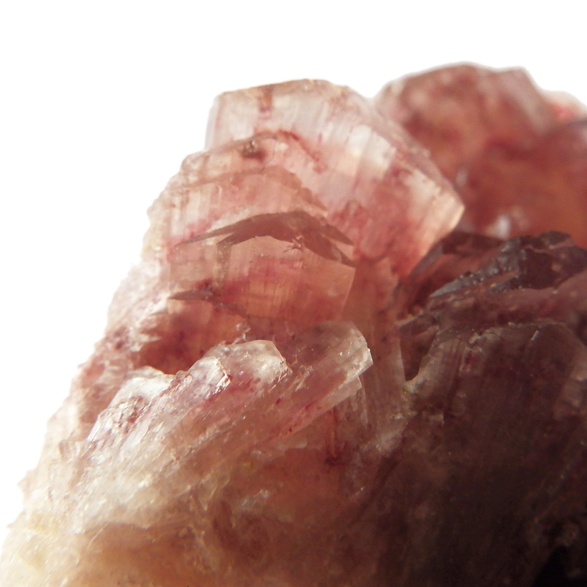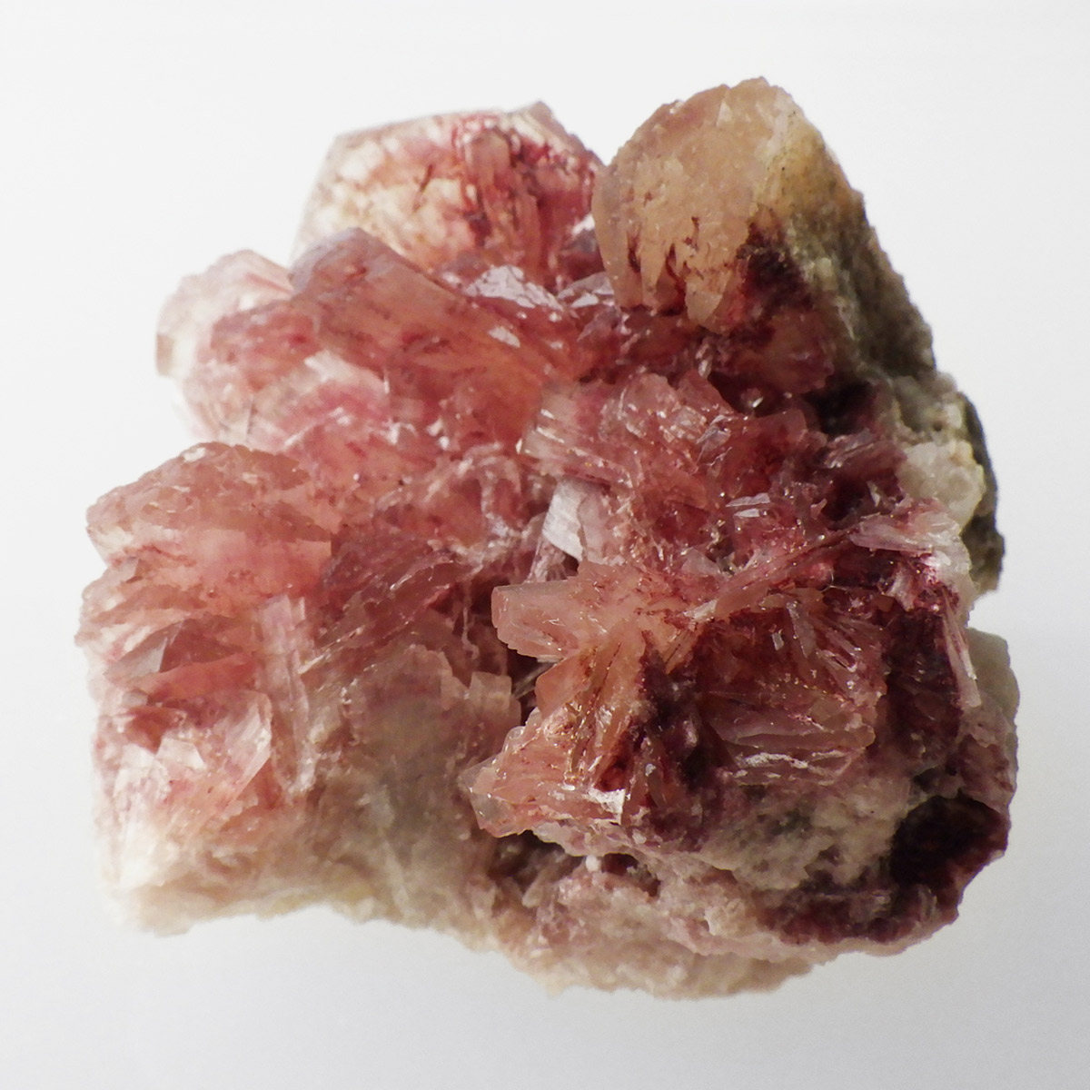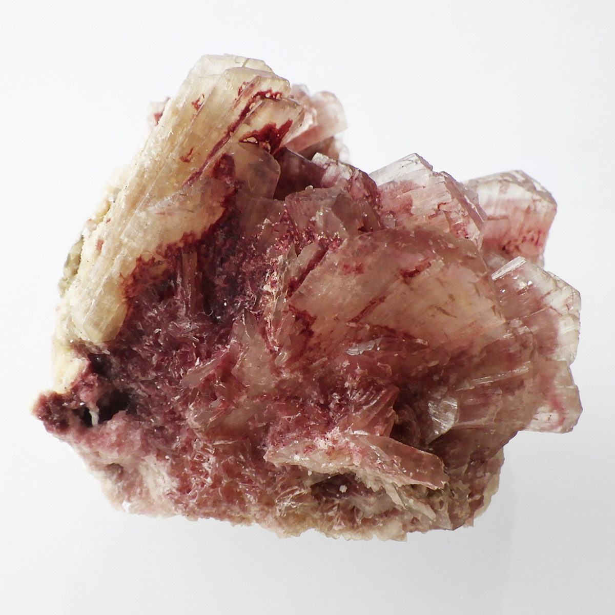 アメリカ・カリフォルニア産のトロナ原石です。和名は重炭酸ソーダ石、ナトリウムの含水重炭酸塩鉱物。大河や塩湖の周辺に産出するとされています。アラビア語の塩を意味する「tron」にちなんで名付けられたそうです。結晶をみるといくつもの塊が筋を伴って放射状や板状に成長しているのが分かります。光に透かすと僅かに光を通します。