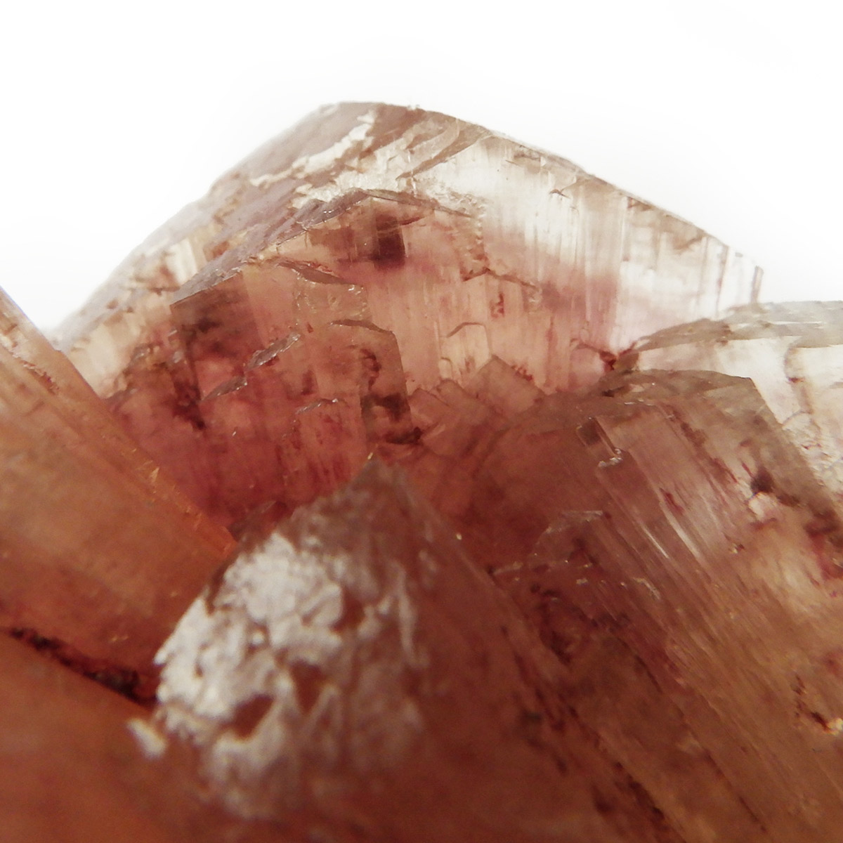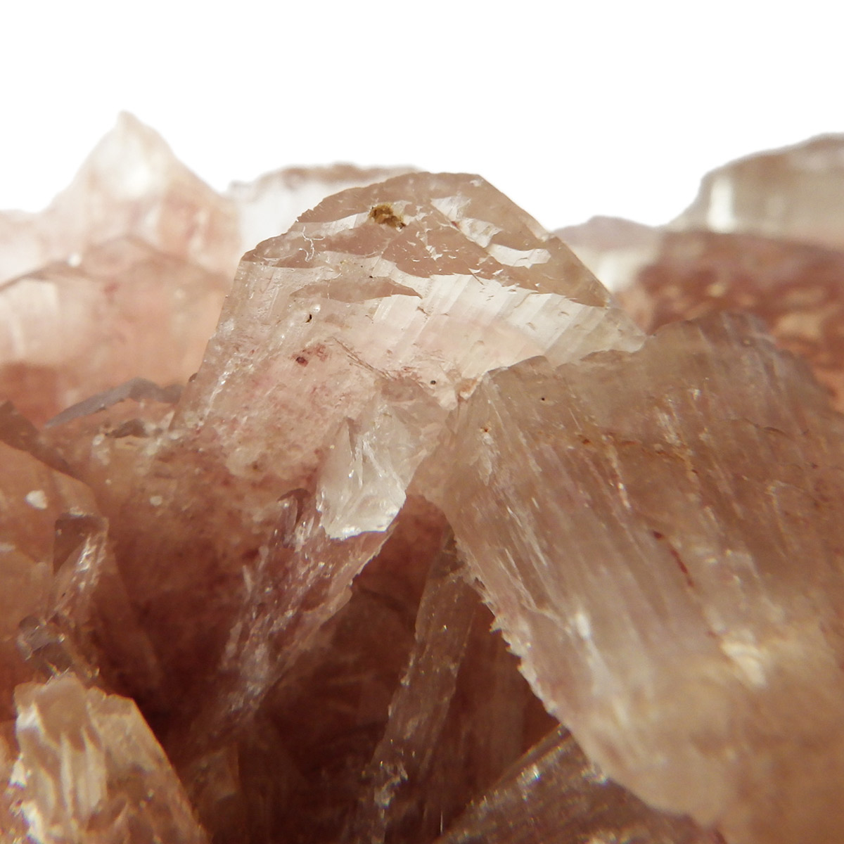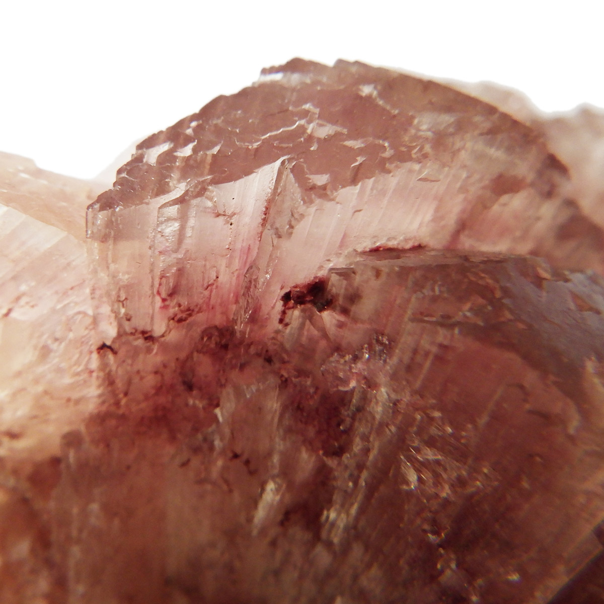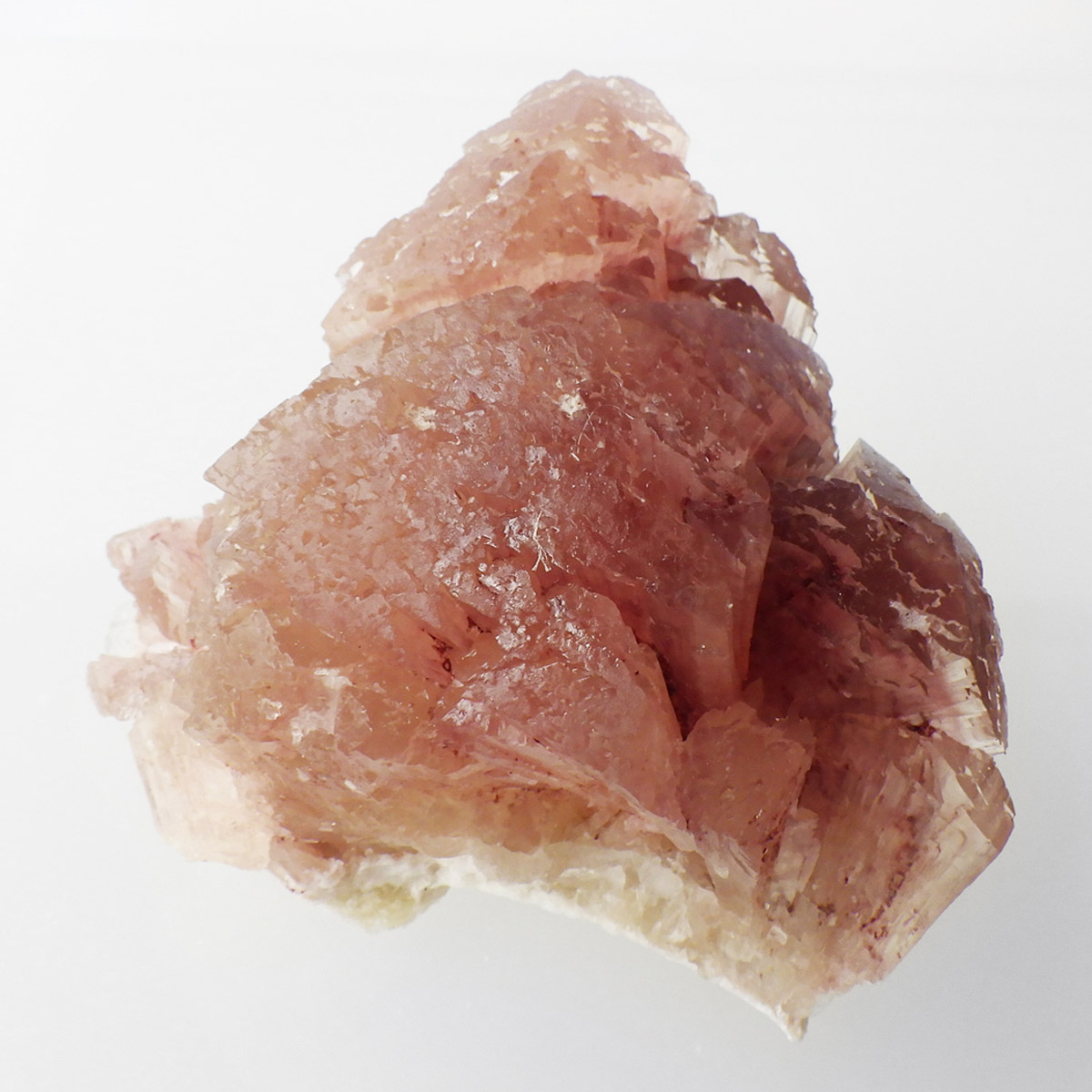 アメリカ・カリフォルニア産のトロナ原石です。和名は重炭酸ソーダ石、ナトリウムの含水重炭酸塩鉱物。大河や塩湖の周辺に産出するとされています。アラビア語の塩を意味する「tron」にちなんで名付けられたそうです。結晶をみるといくつもの塊が筋を伴って放射状や板状に成長しているのが分かります。光に透かすと僅かに光を通します。