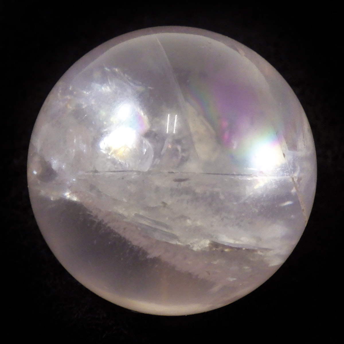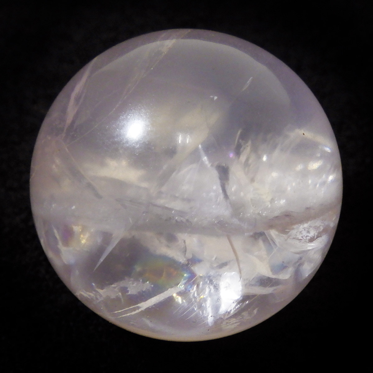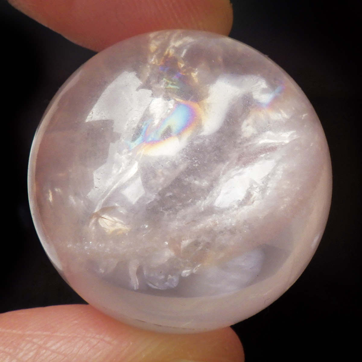 ブラジル産アイリスローズクォーツの球です。直径は29mmでやさしい色合いのミルキーピンクが特徴的です。ほんのりピンクでなんとも心が癒されます。大きな面で確実にレインボーが入っております。光量のあるライトで照らすとスターも見られます。くるくる回して探してみて下さい。透明度が高いローズクォーツで非常におすすめです。