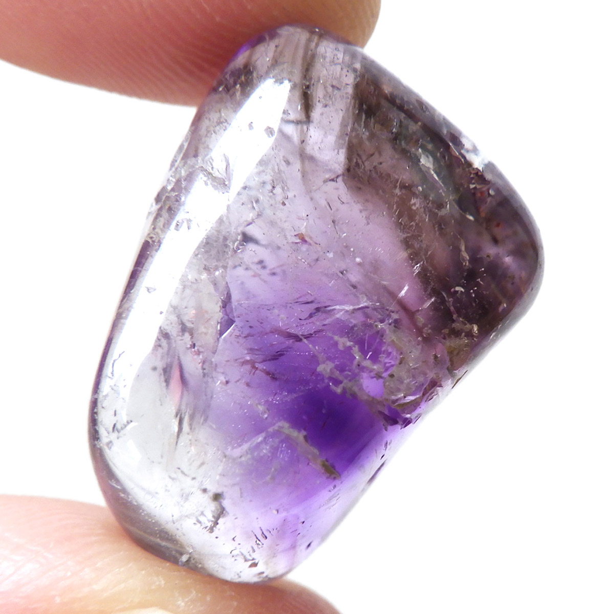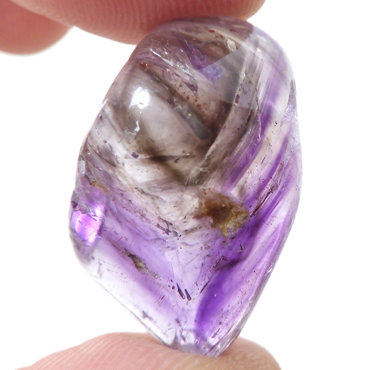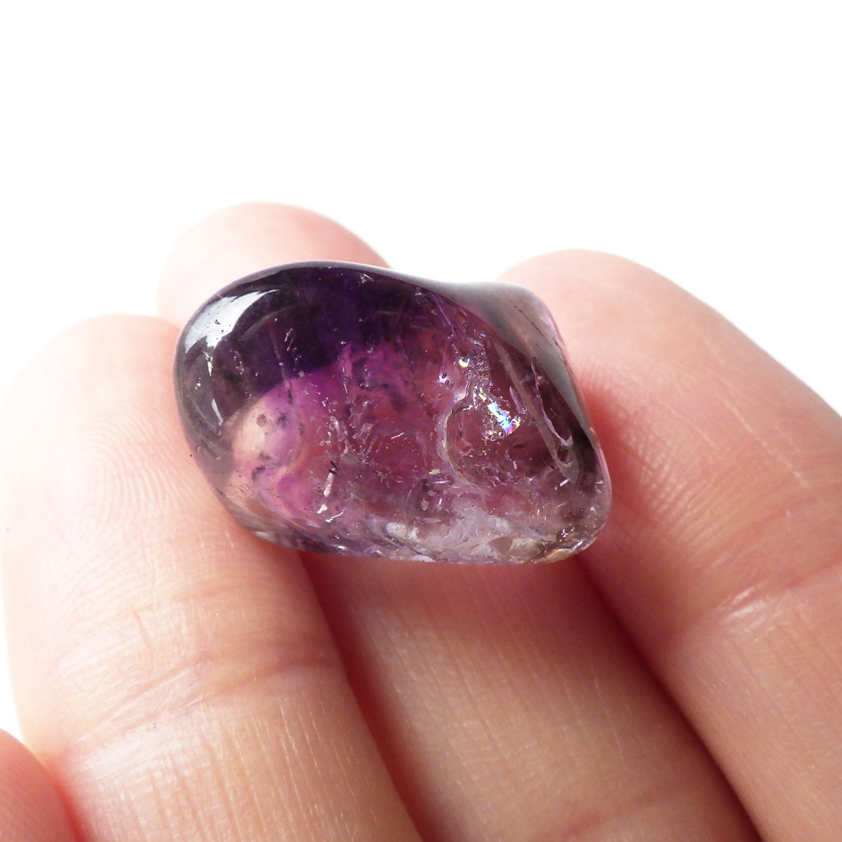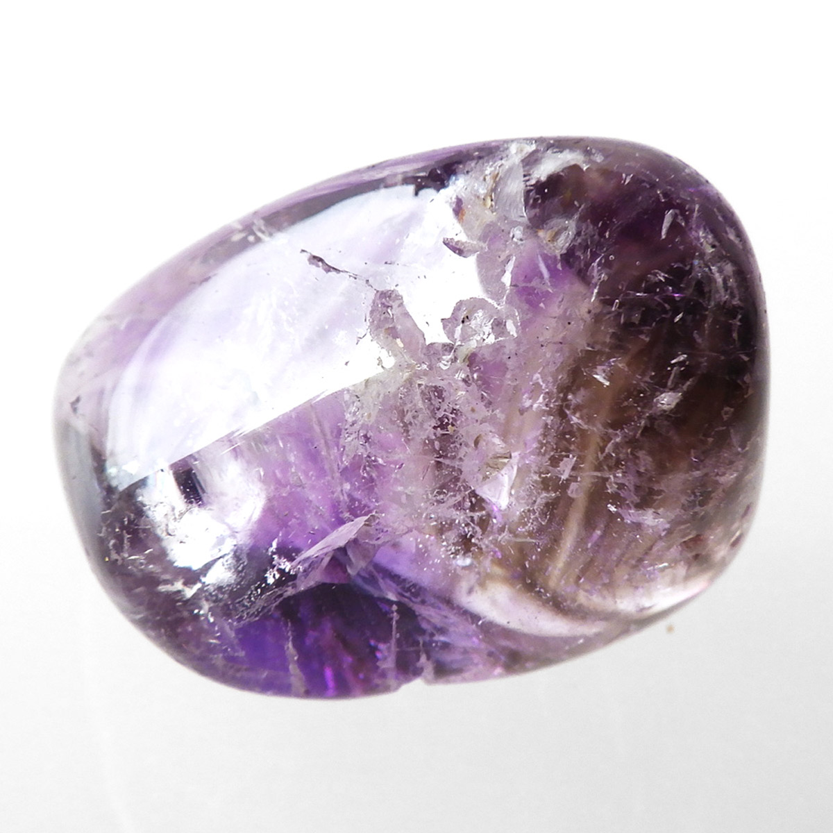 ナミビアのブランドバーグに産するアメジスト、通称ブランドバーグアメジスト、タンブルです。 透明なクォーツ内に煙のようにふわっと漂った美しいクリアなパープルのアメジストと黒いスモーキークォーツが見られます。透明度が高く、内包物がよく見えます。光によって輝く姿がこの産地特有のものでとてもきれいで癒されます。