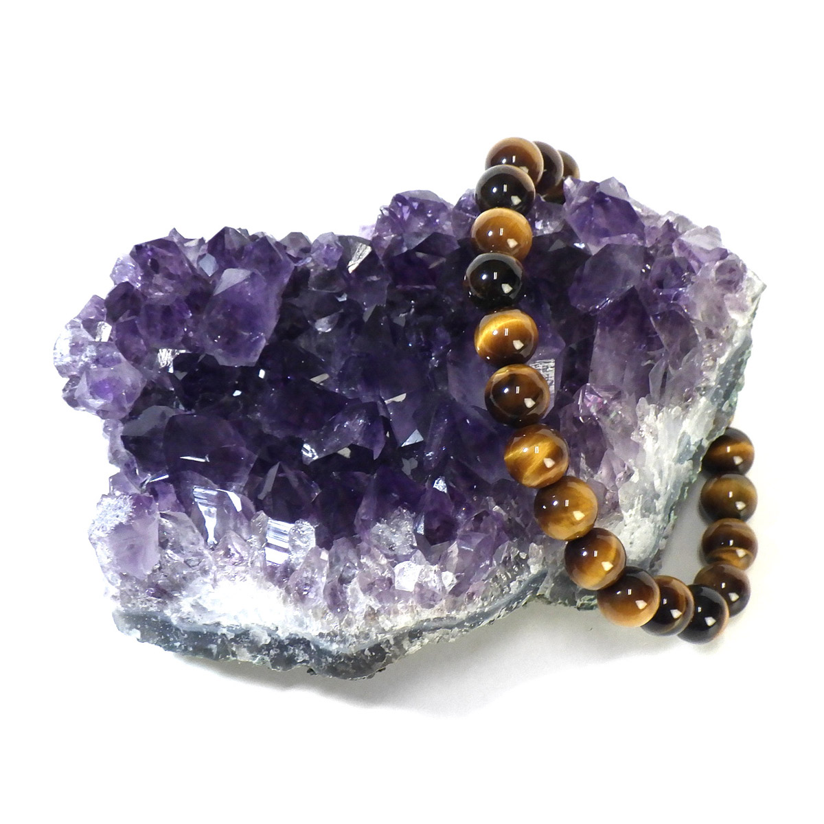 ブラジル産のアメジストクラスターです。一つ一つの結晶が美しく成長したアメジストです。透明感があり、上質なアメジストの証である紫の色がしっかりと入った濃紫のクラスターです。 ブレスレットの浄化用や空間の浄化用にトイレなどに置いていただくといいと思います。
