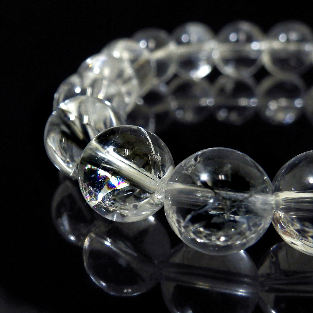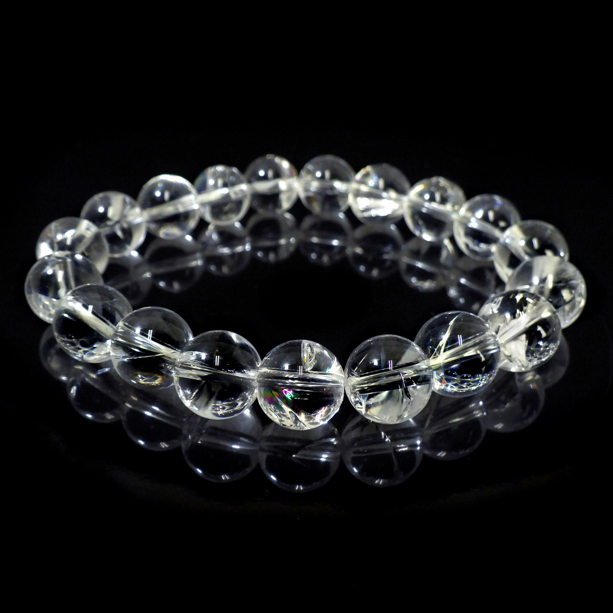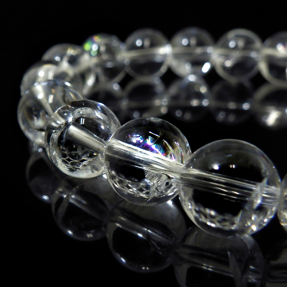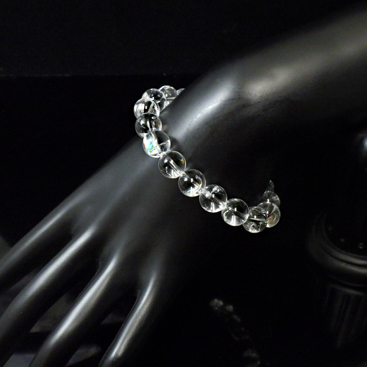 ブラジル産、アイリスクォーツ(レインボークォーツ)のブレスレットです。和名は虹入り水晶です。透明度が高く、虹色を閉じ込めた美しいブレスレットに仕上がっています。アイリスクォーツは別名レインボークォーツとも呼ばれており、持ち主を幸福や希望に導くとされています。
