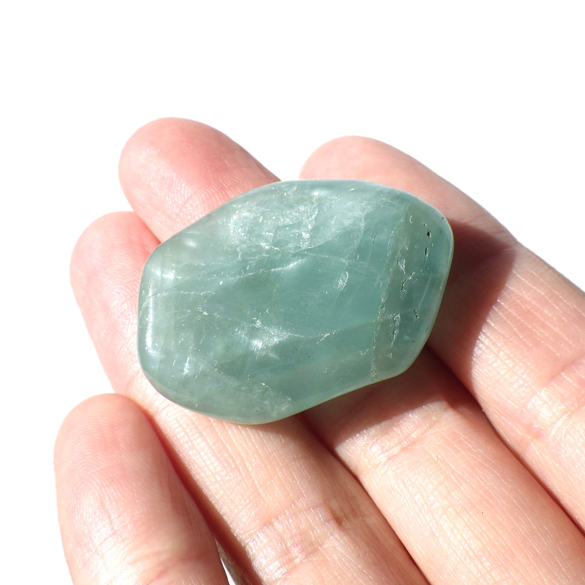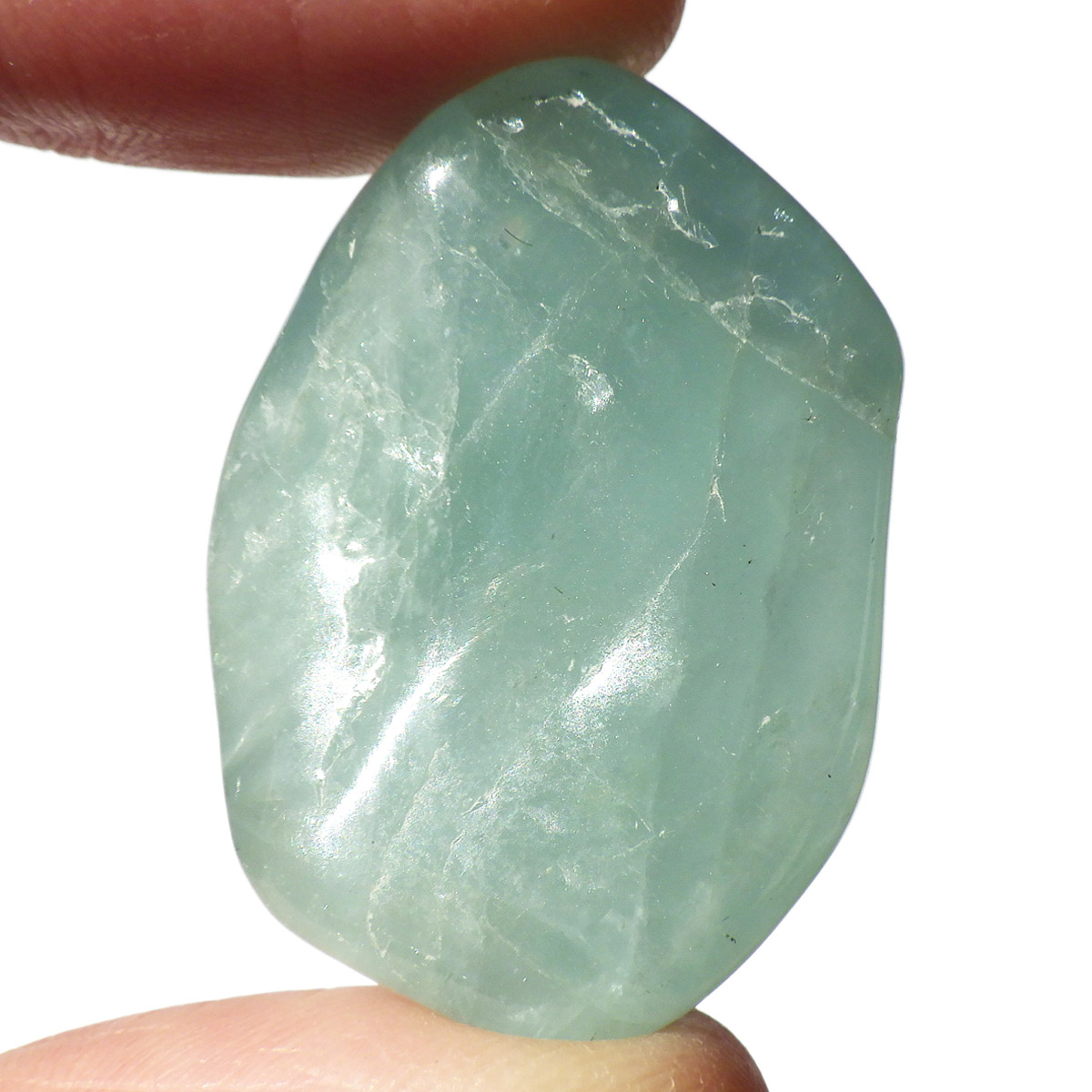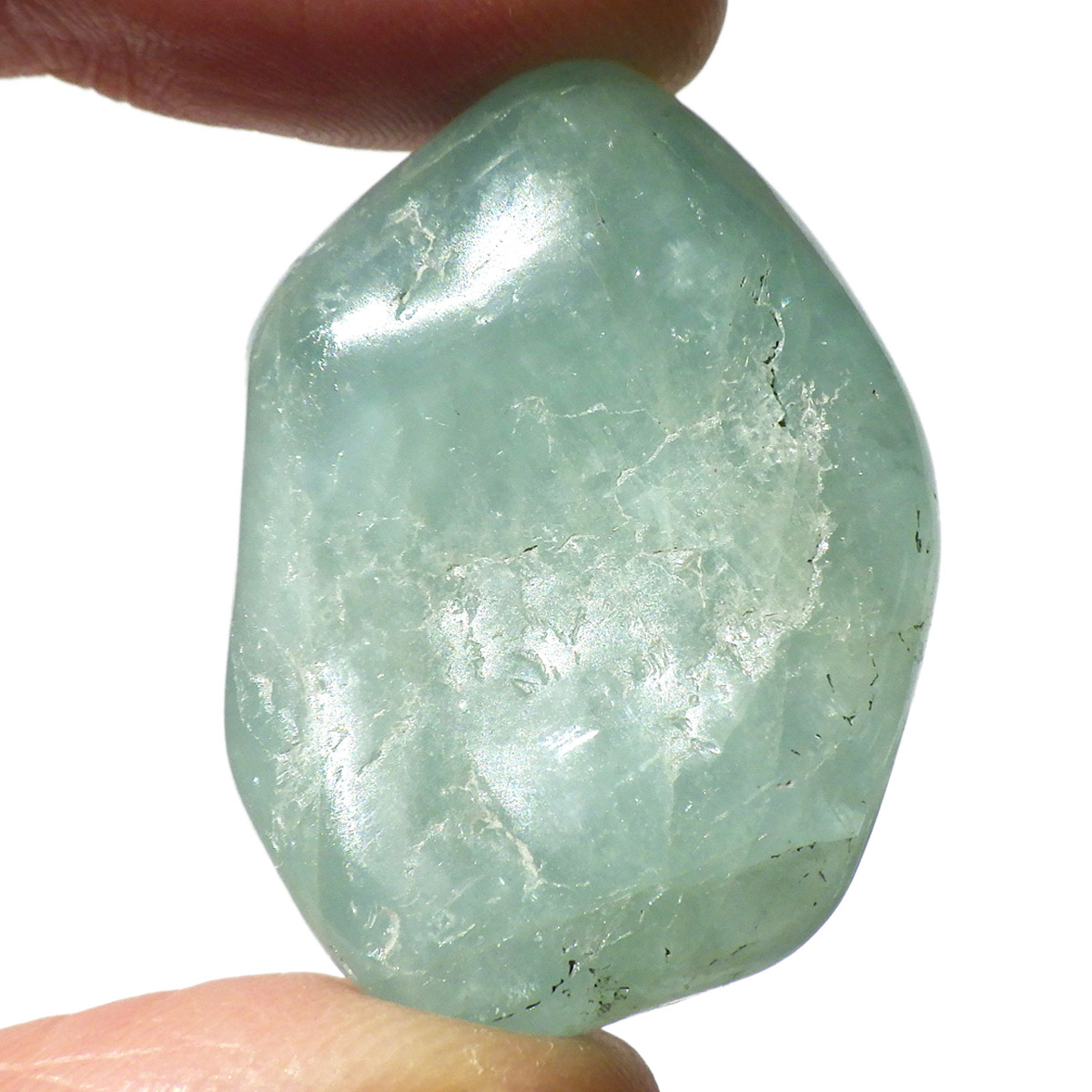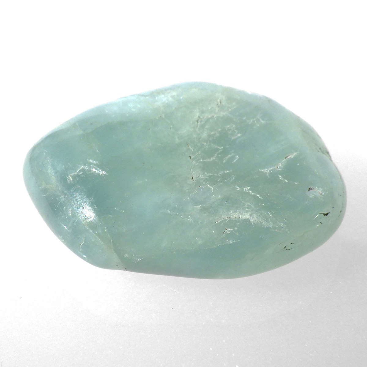 ブラジル産のアクアマリン、タンブルです。ナチュラルなアクアマリンを磨いたタンブルです。鉱物名ではベリルに属します。発色の良いアクアマリンでかわいらしいです。
