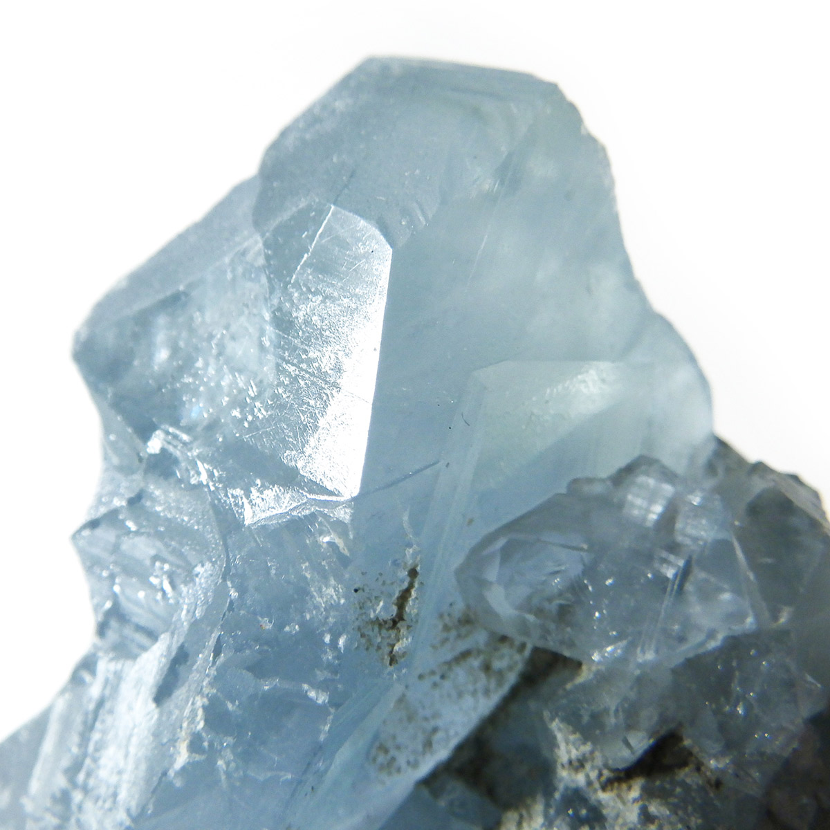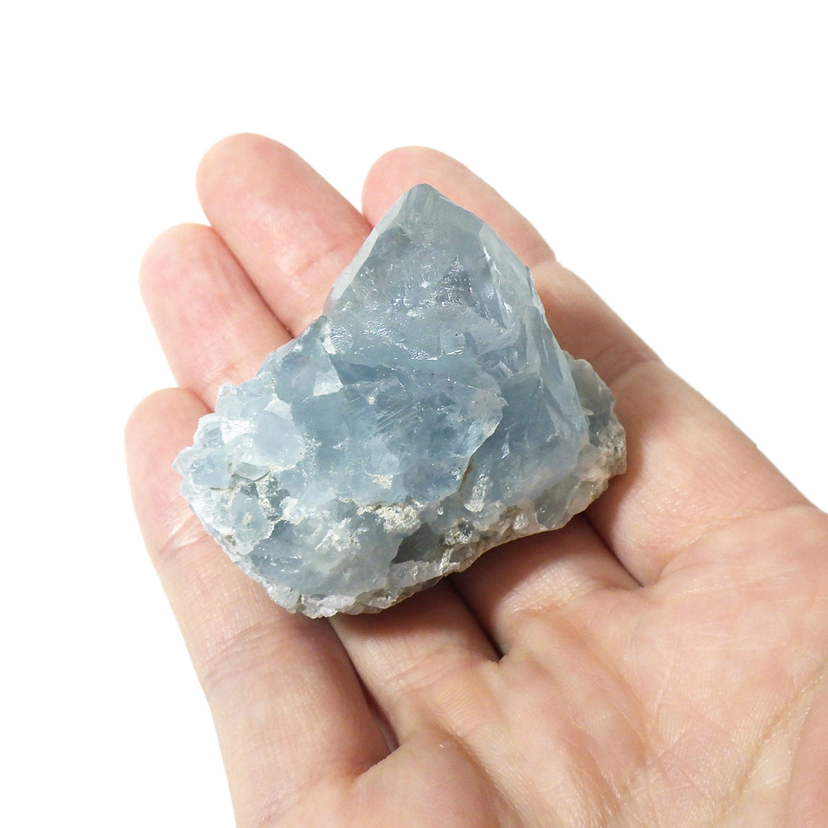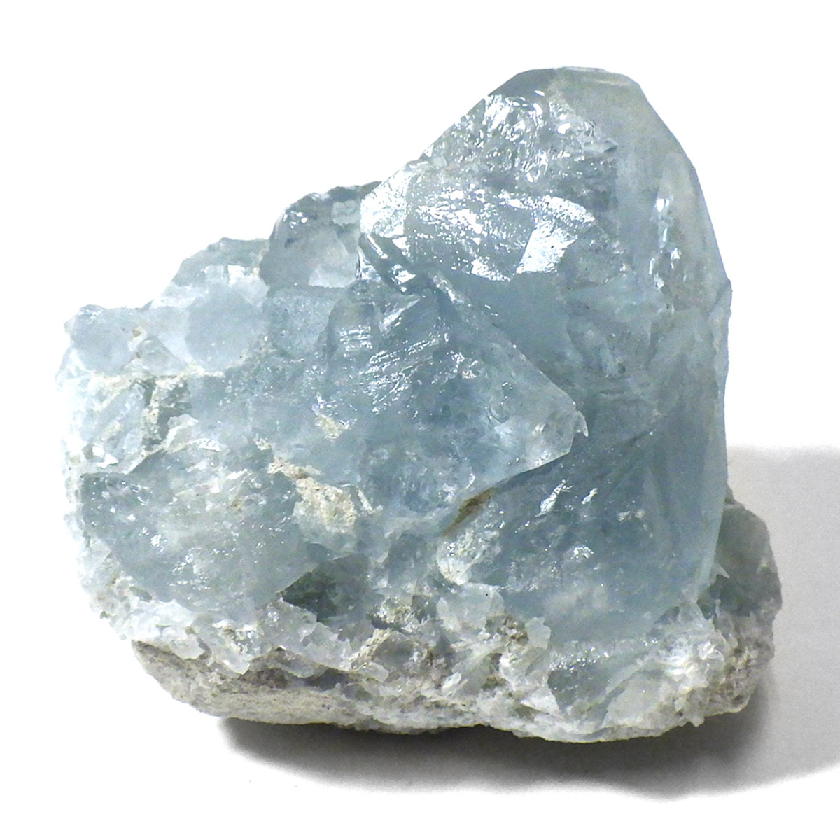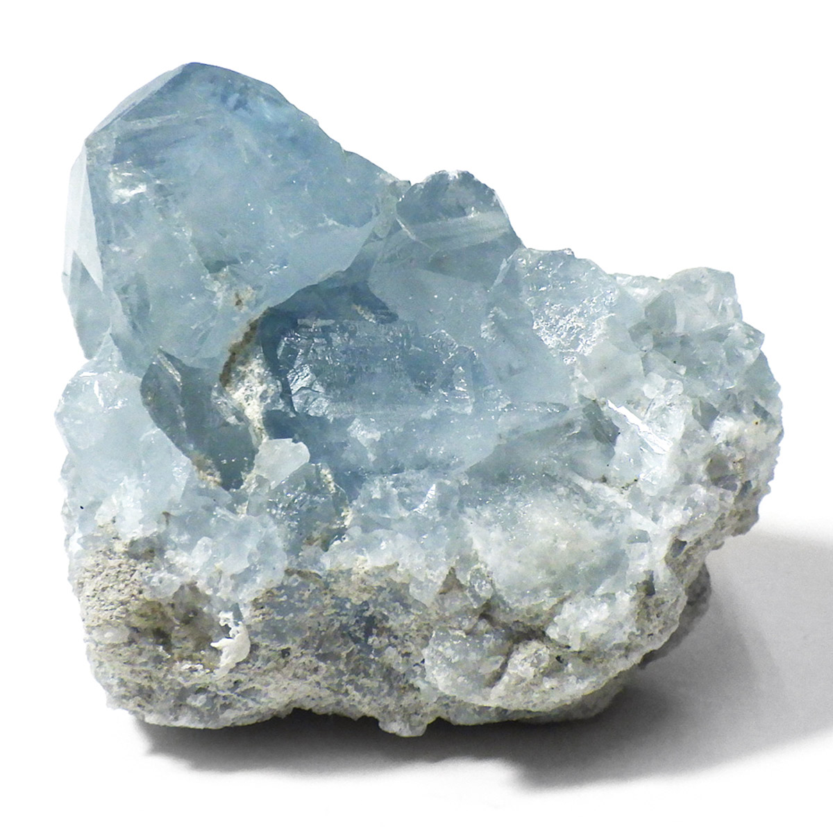 セレスタイト(天青石)母岩付きクラスターです。マダガスカル産のものは、母岩が丸みを帯びており、土台が白っぽいのが特徴です。 丸みを帯びた可愛いフォルムで、透明感ある濃いブルーの結晶は非常に魅力的です。