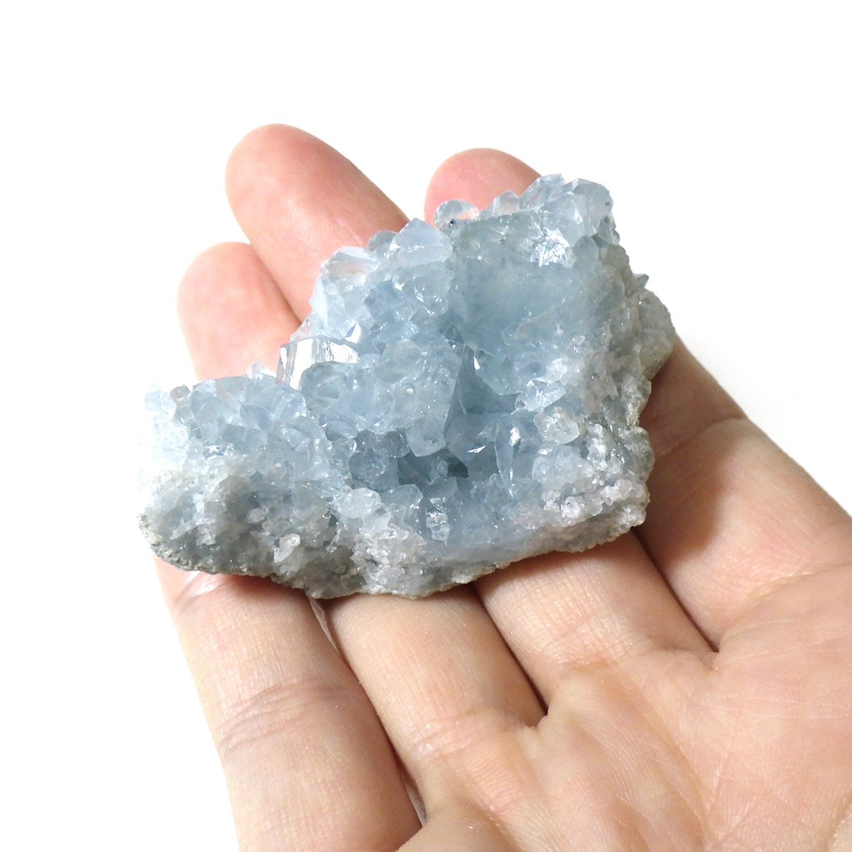 セレスタイト(天青石)母岩付きクラスターです。マダガスカル産のものは、母岩が丸みを帯びており、土台が白っぽいのが特徴です。 可愛いフォルムで、透明感ある濃いブルーの結晶は非常に魅力的です。