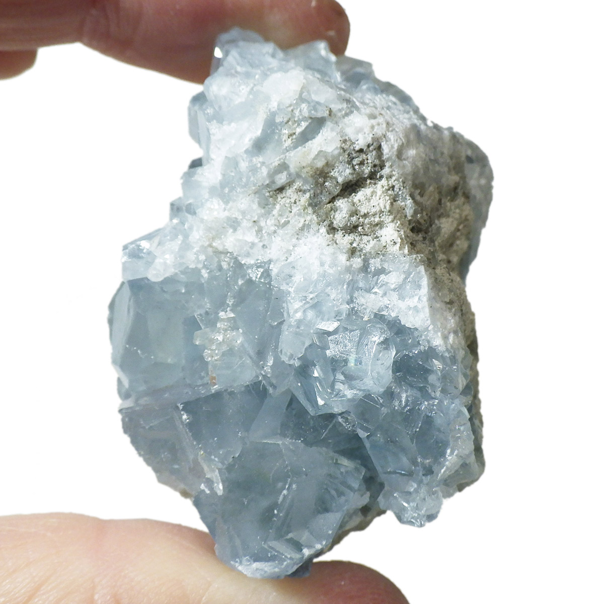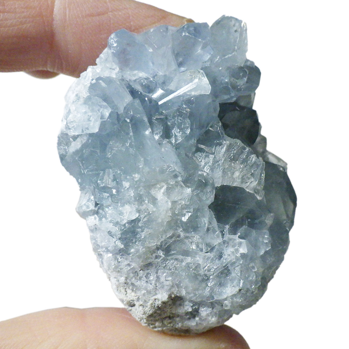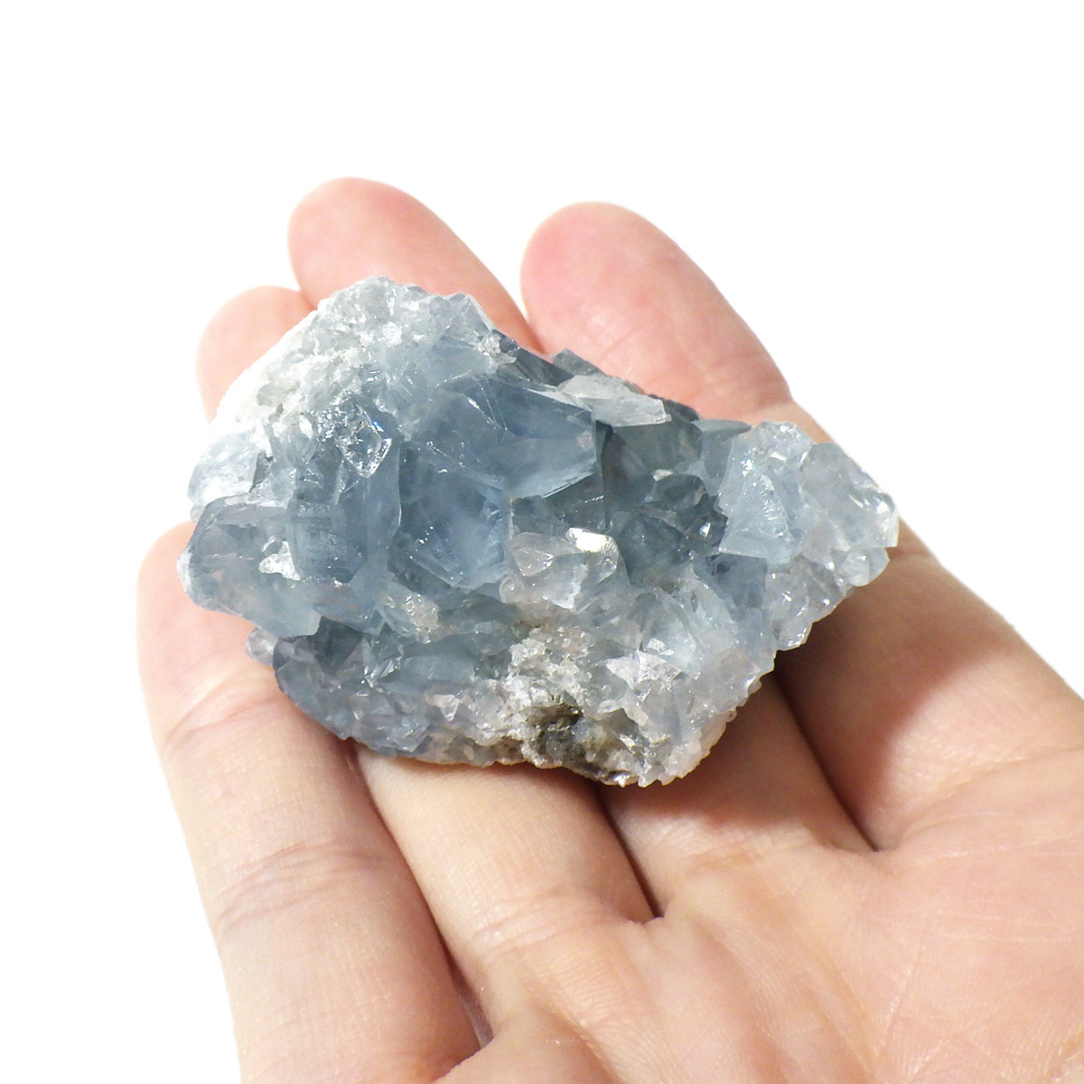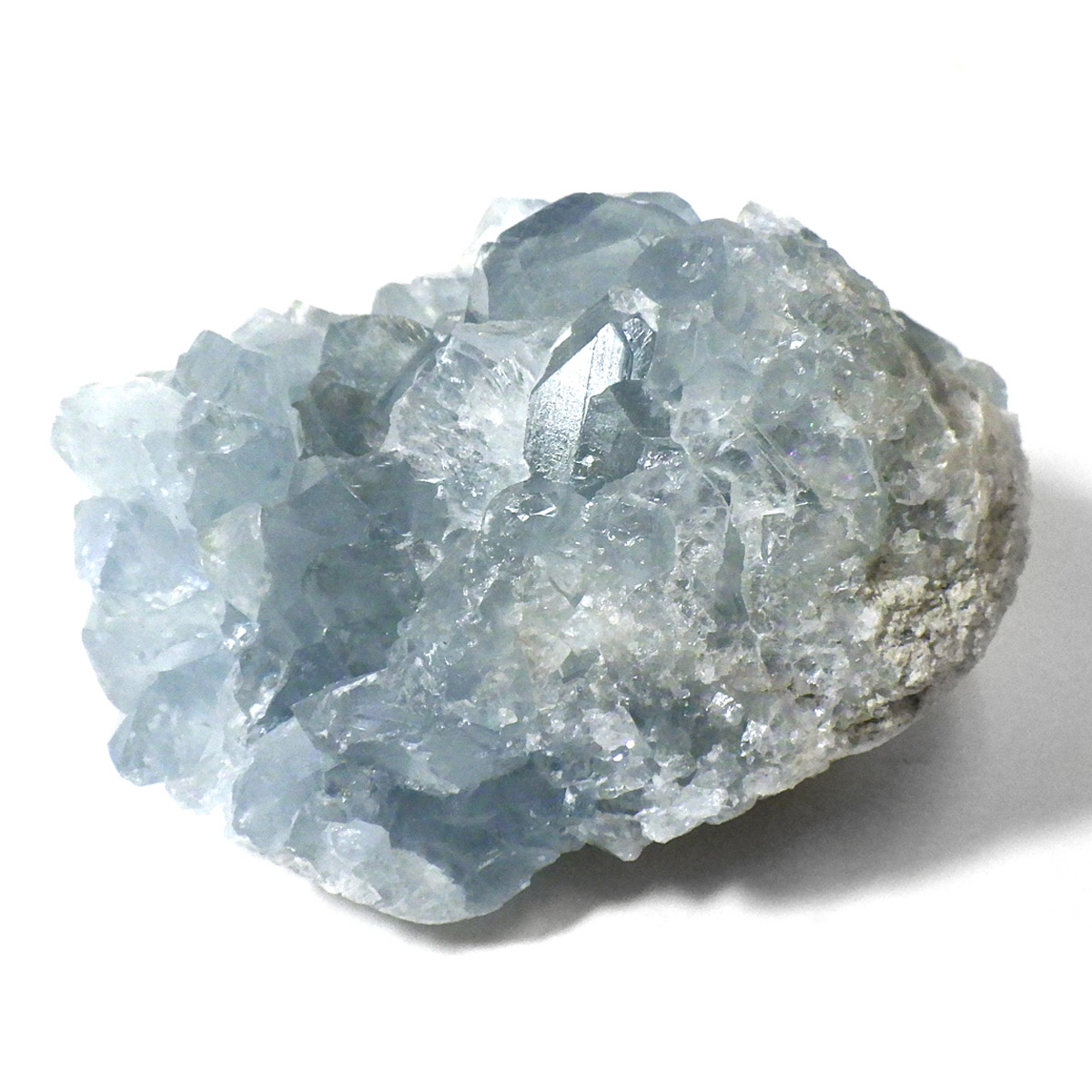 セレスタイト(天青石)母岩付きクラスターです。マダガスカル産のものは、母岩が丸みを帯びており、土台が白っぽいのが特徴です。 丸みを帯びた可愛いフォルムで、透明感ある濃いブルーの結晶は非常に魅力的です。