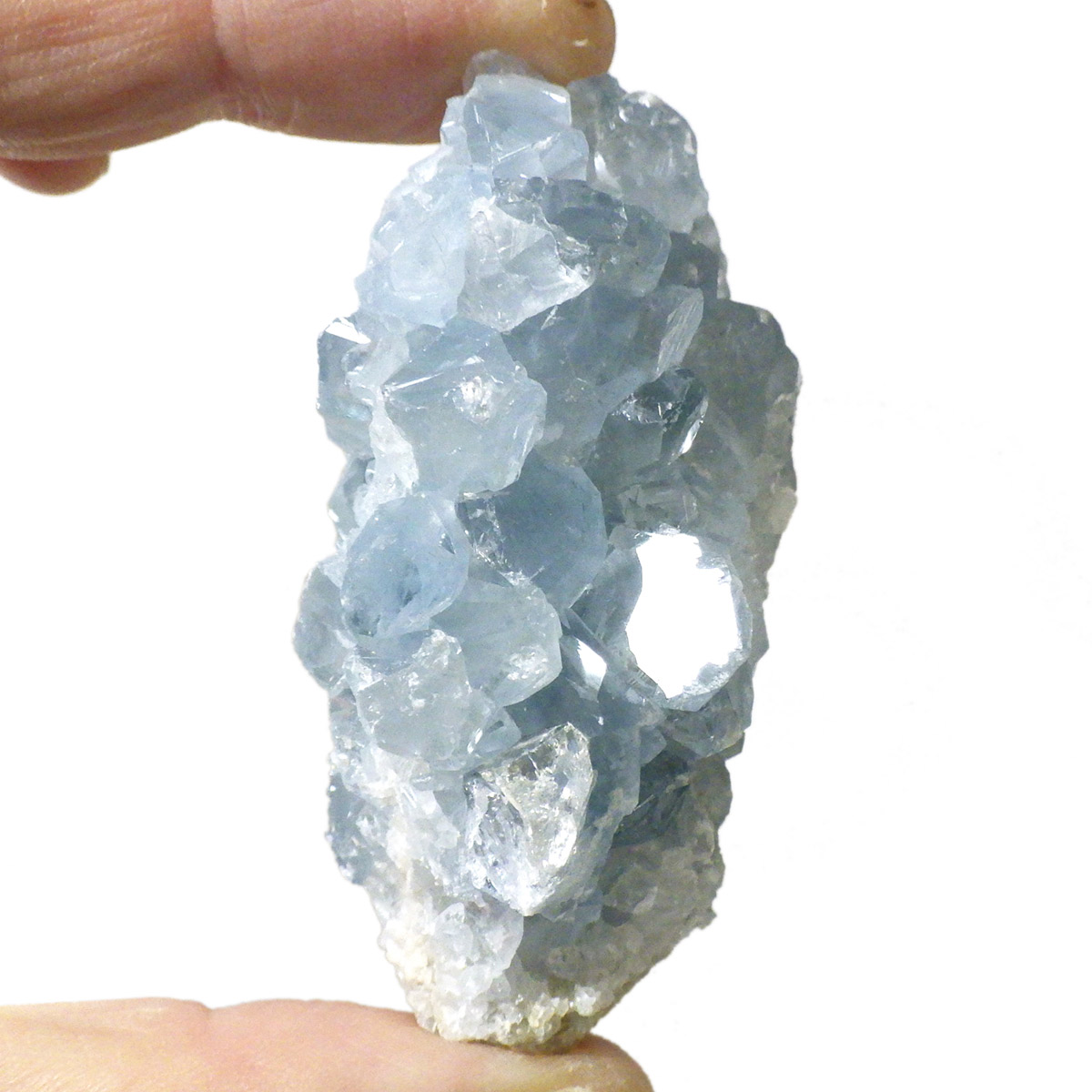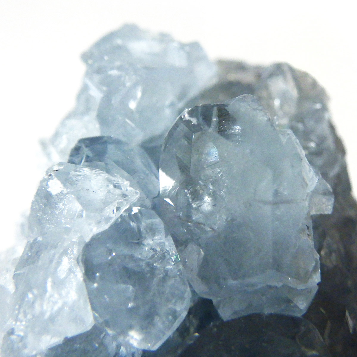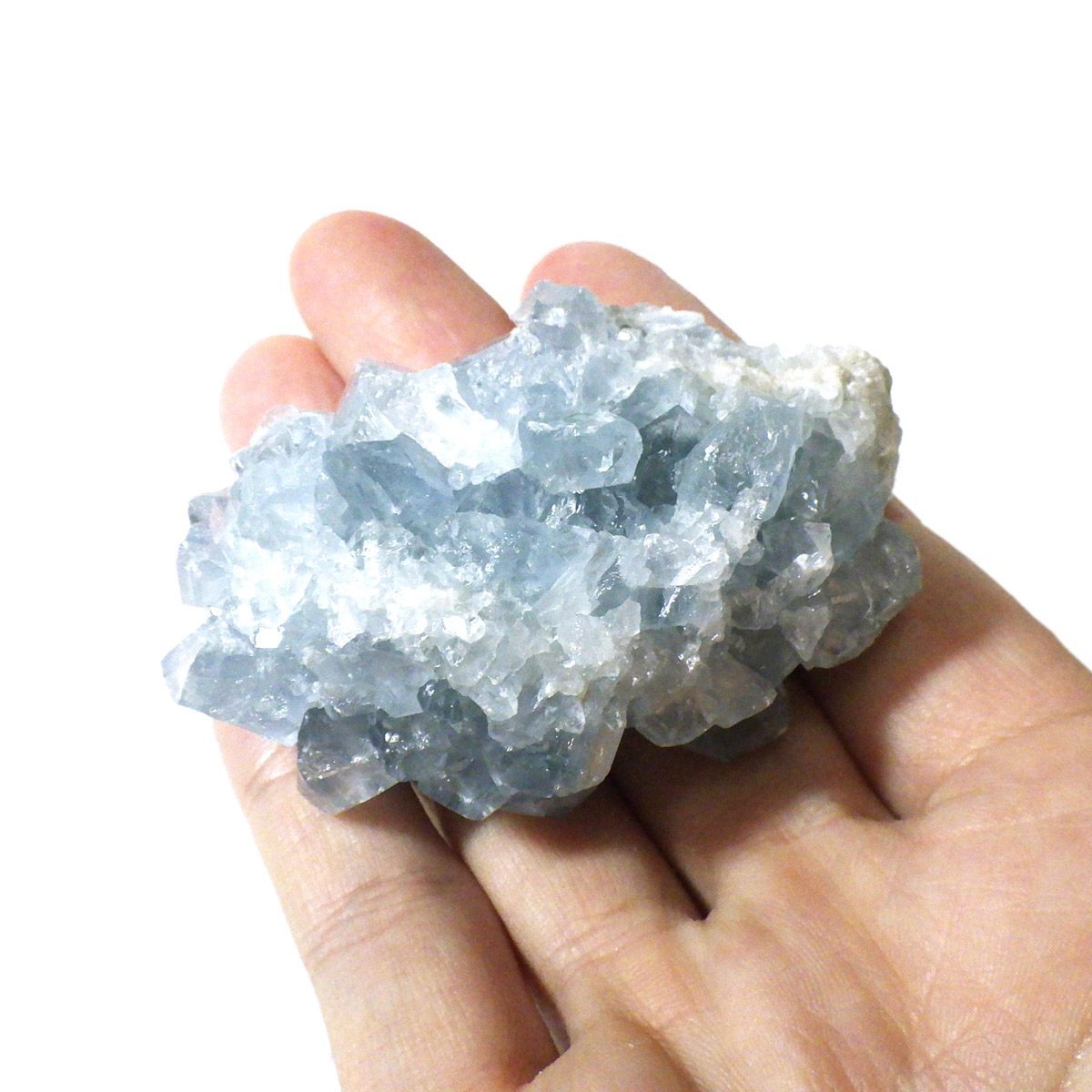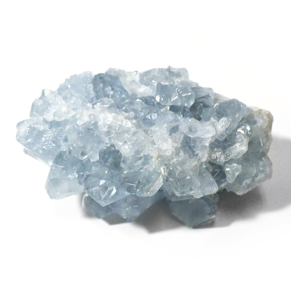 セレスタイト(天青石)母岩付きクラスターです。マダガスカル産のものは、母岩が丸みを帯びており、土台が白っぽいのが特徴です。 丸みを帯びた可愛いフォルムで、透明感ある濃いブルーの結晶は非常に魅力的です。