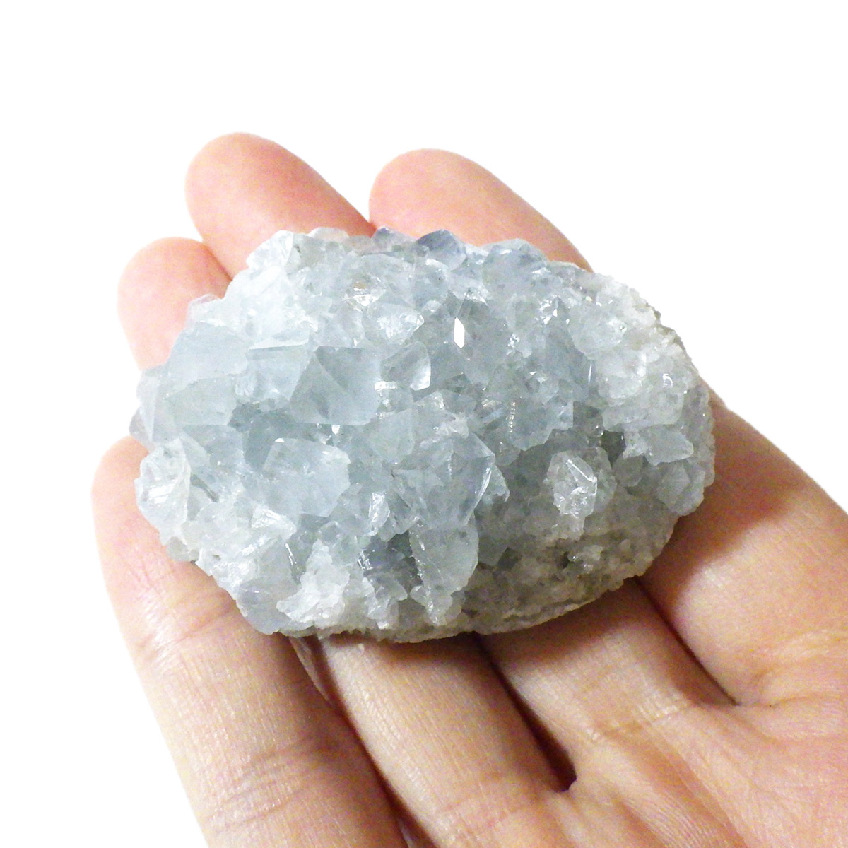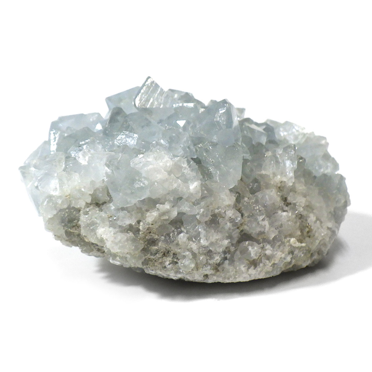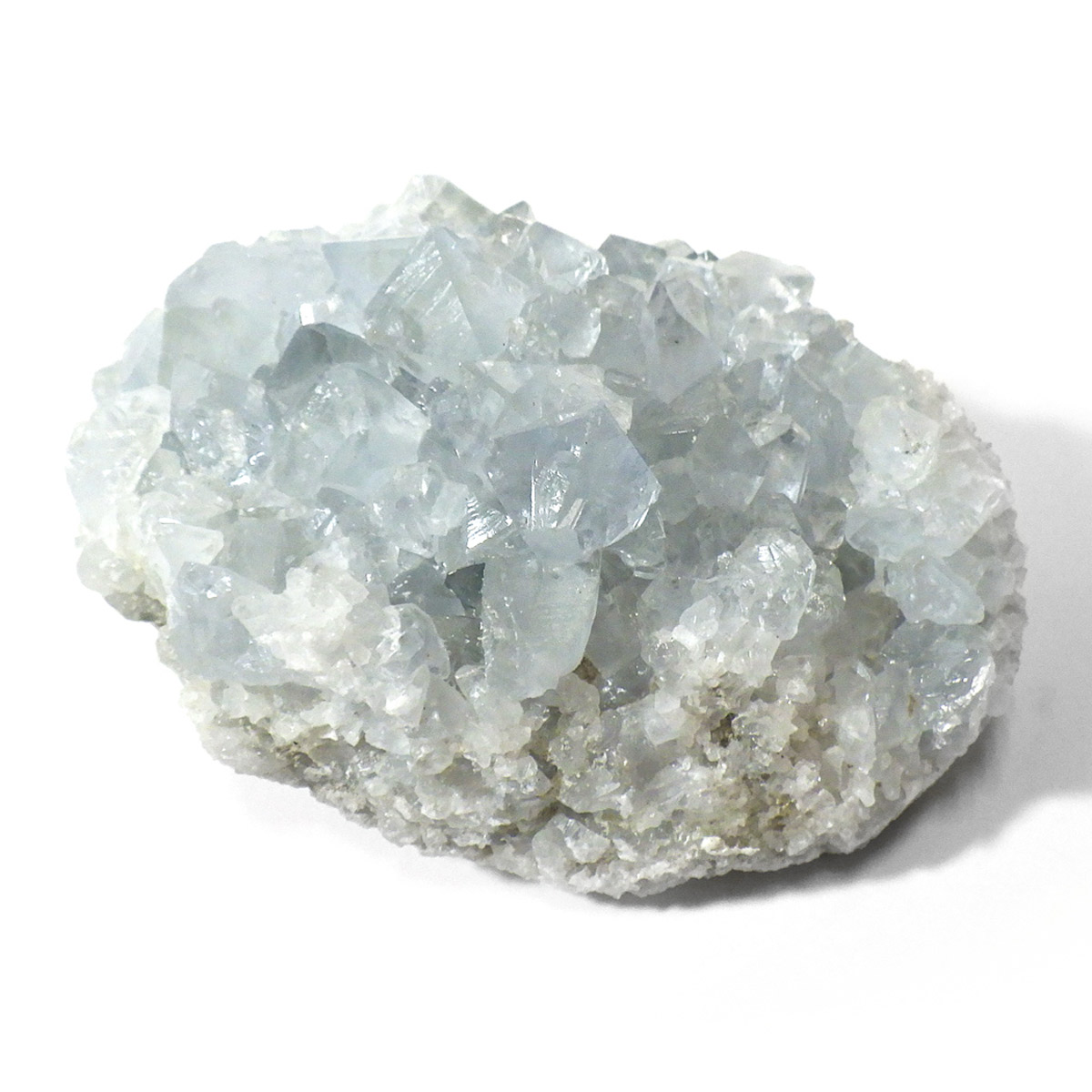 セレスタイト(天青石)母岩付きクラスターです。マダガスカル産のものは、母岩が丸みを帯びており、土台が白っぽいのが特徴です。 丸みを帯びた可愛いフォルムで、透明感ある濃いブルーの結晶は非常に魅力的です。