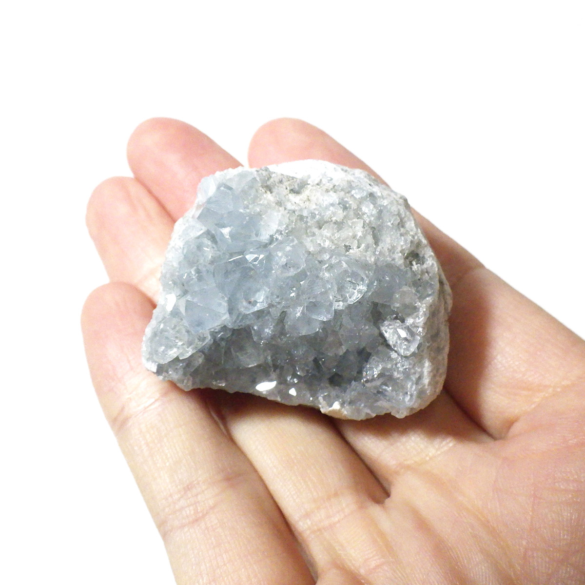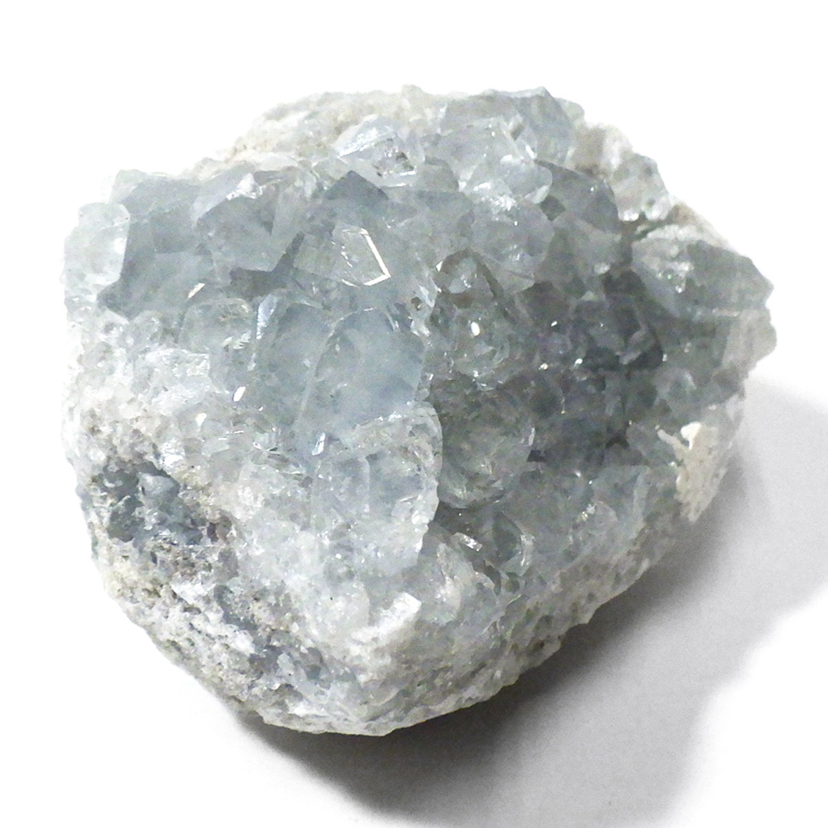 セレスタイト(天青石)母岩付きクラスターです。マダガスカル産のものは、母岩が丸みを帯びており、土台が白っぽいのが特徴です。 可愛いフォルムで、透明感ある濃いブルーの結晶は非常に魅力的です。