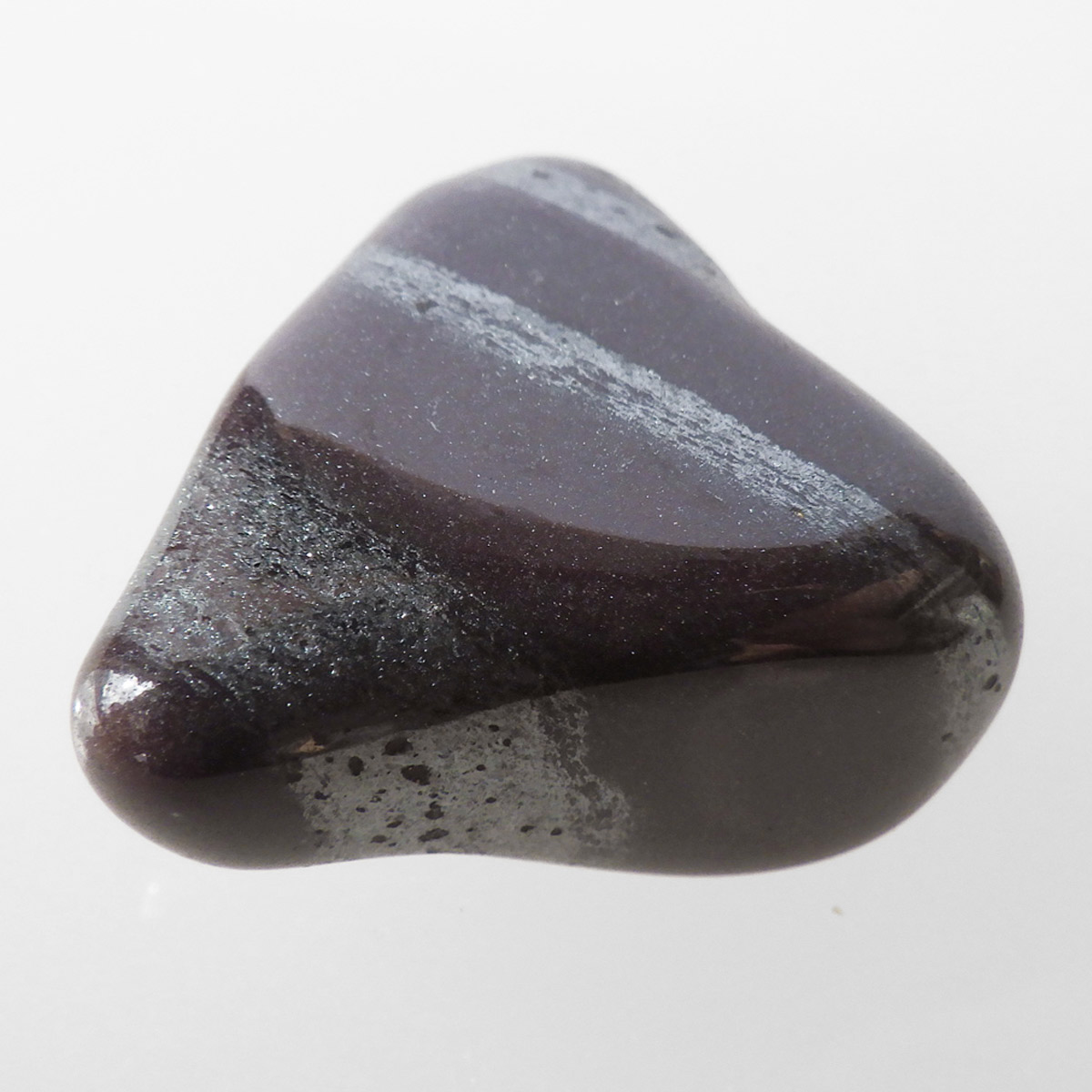 ブラジルの縞状鉄鉱層から産出するアンセストラライトのタンブルです。アンセストラライトはレッドジャスパーとヘマタイトからなる一部地域から採れる石のこと。レッドジャスパーの赤は元々ヘマタイト(赤鉄鉱)によるものです。粒状鉄鉱層からスペキュラーヘマタイトのようにキラキラとしたヘマタイトが産出します。27億年程前の地層の石ということでアンセストラライト(祖先石)という愛称でも呼ばれております。クリムゾンレッドとシルバーの縞模様が面白く、キラキラとしたヘマタイトも魅力的です。