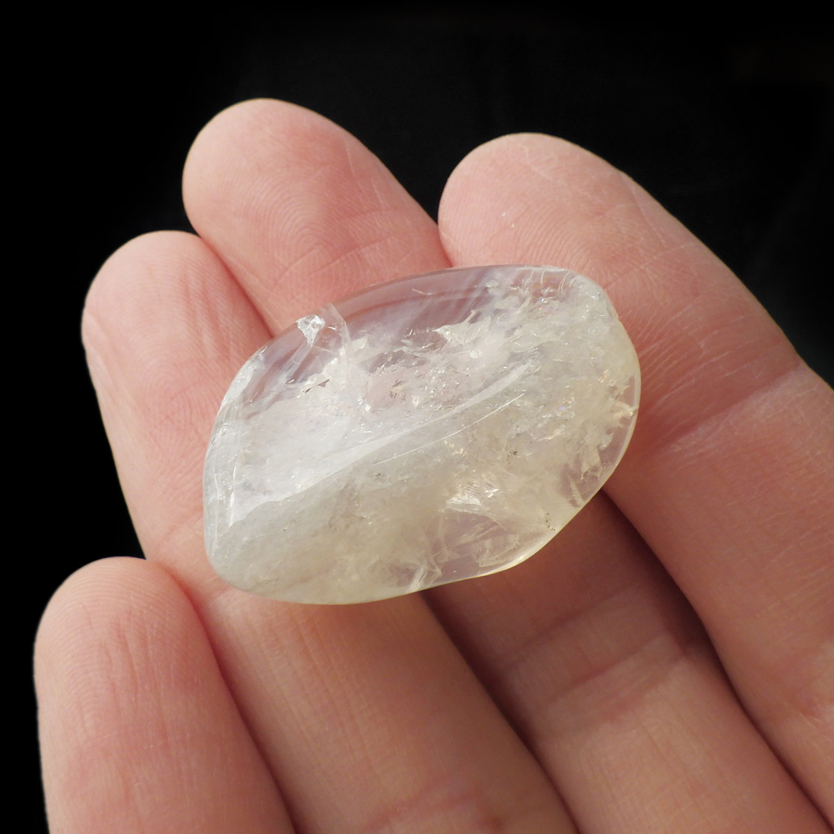 ブラジル・ミナスジェライス産のオパールクォーツ、タンブルです。 オパールクォーツは、水晶中に微量に含まれている硫黄(サルファー)によって優しい黄色に色づいています。その姿からオパールクォーツと呼ばれているようです。またクラックによって、沢山の小さなレインボーを楽しむ事ができます。