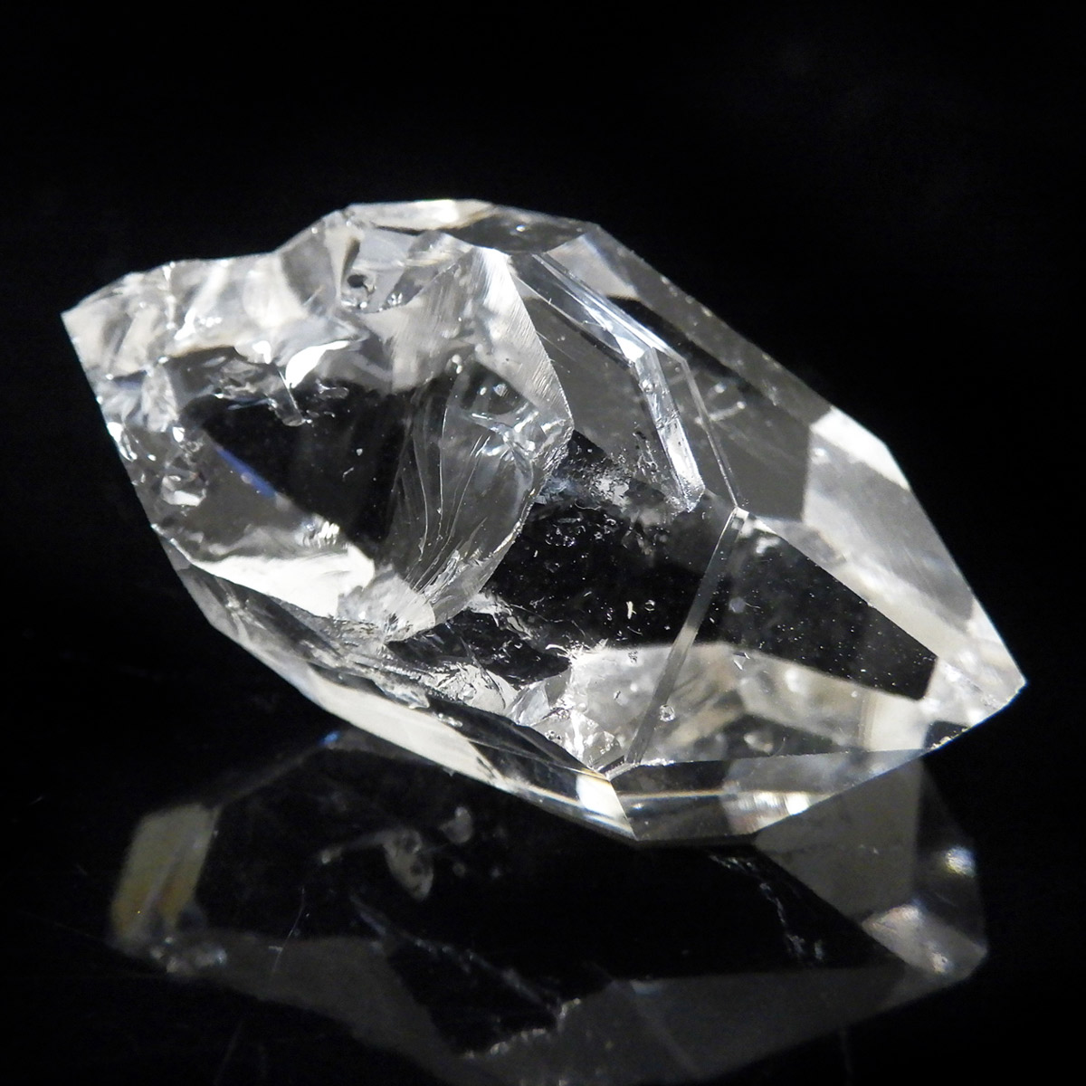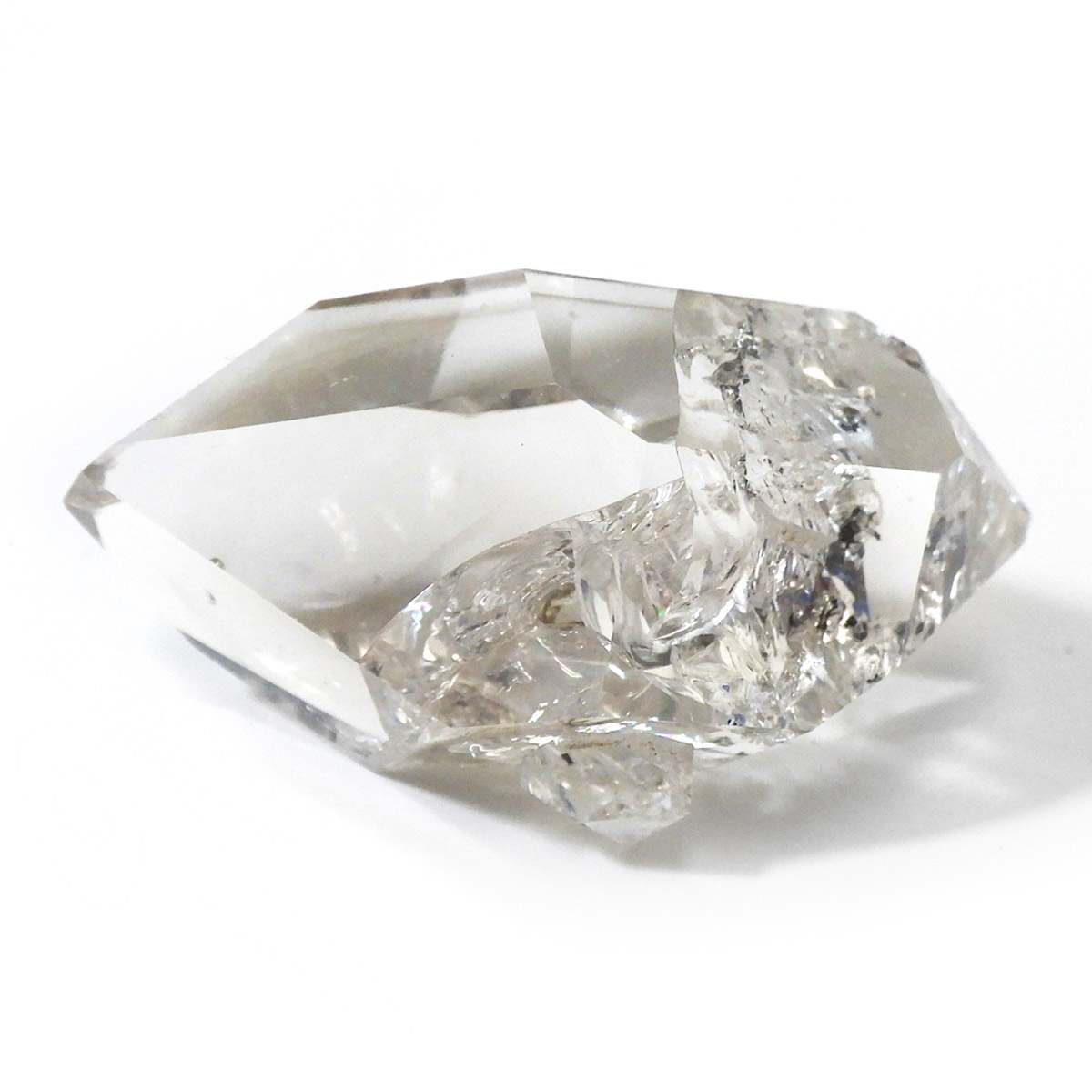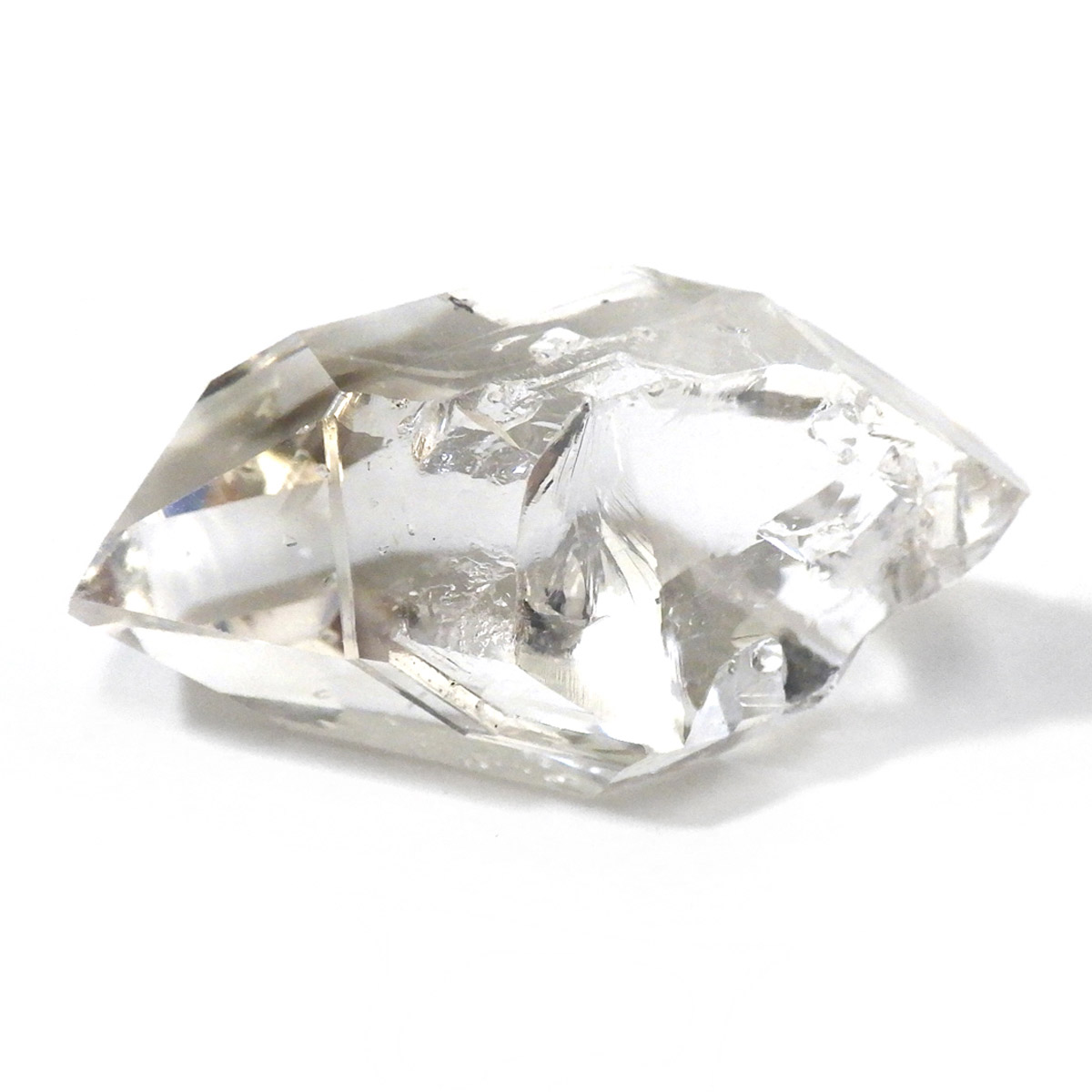 ハーキマーダイヤモンド原石です。抜群の透明度で圧巻の美しさです。キラキラと輝くその姿は、ダイヤモンドのようで、息を呑むほど素晴らしい輝きに満ちています。ハーキマーダイヤモンドはアメリカ、ニューヨーク州、ハーキマー地区でしか採掘されないダイヤのようなクリスタル。母岩の穴の中で成長し、ダイヤモンドのような両側の18面体の結晶になります。そして、ダイヤモンドのように力強い光沢感と輝きを兼ね備えているのが特長です。