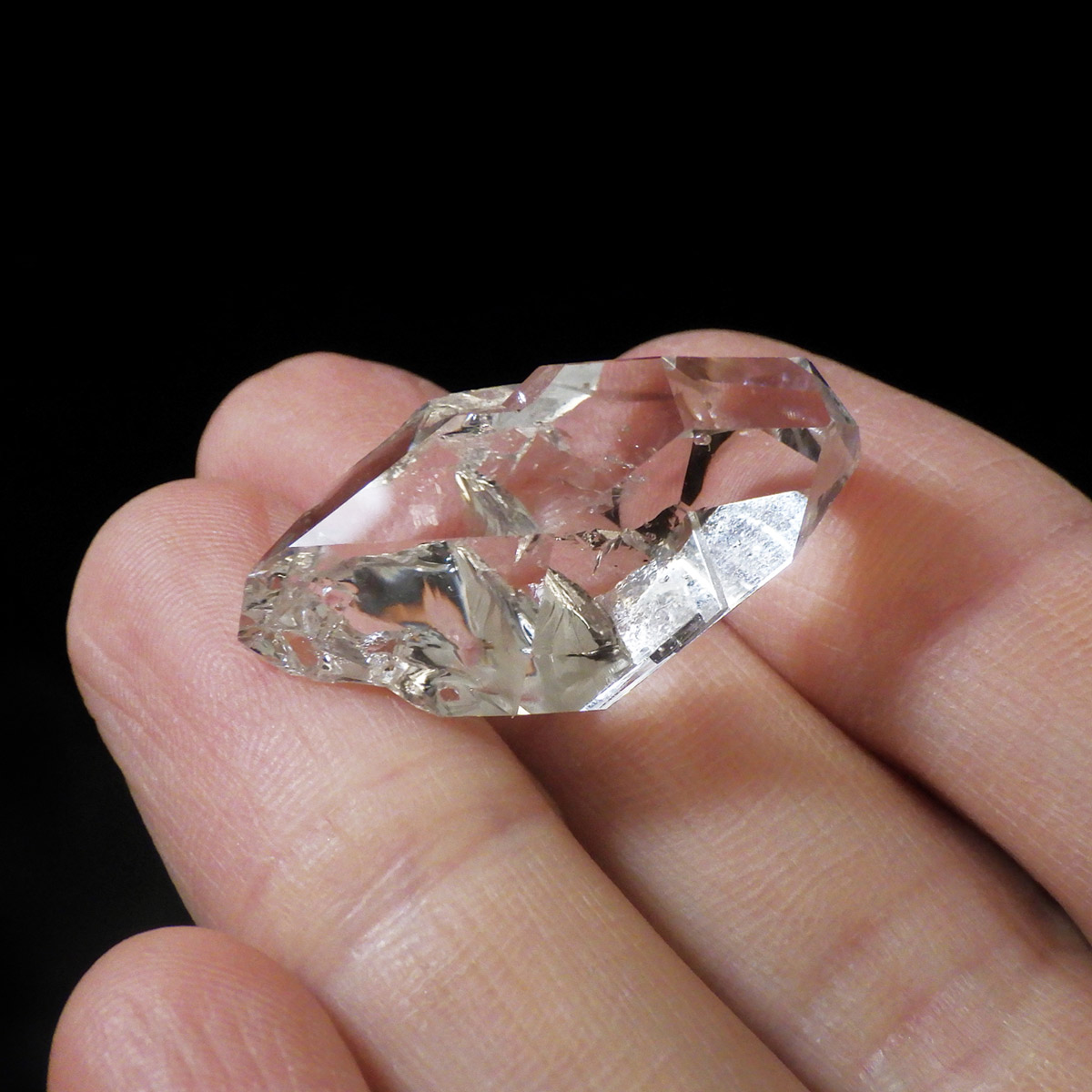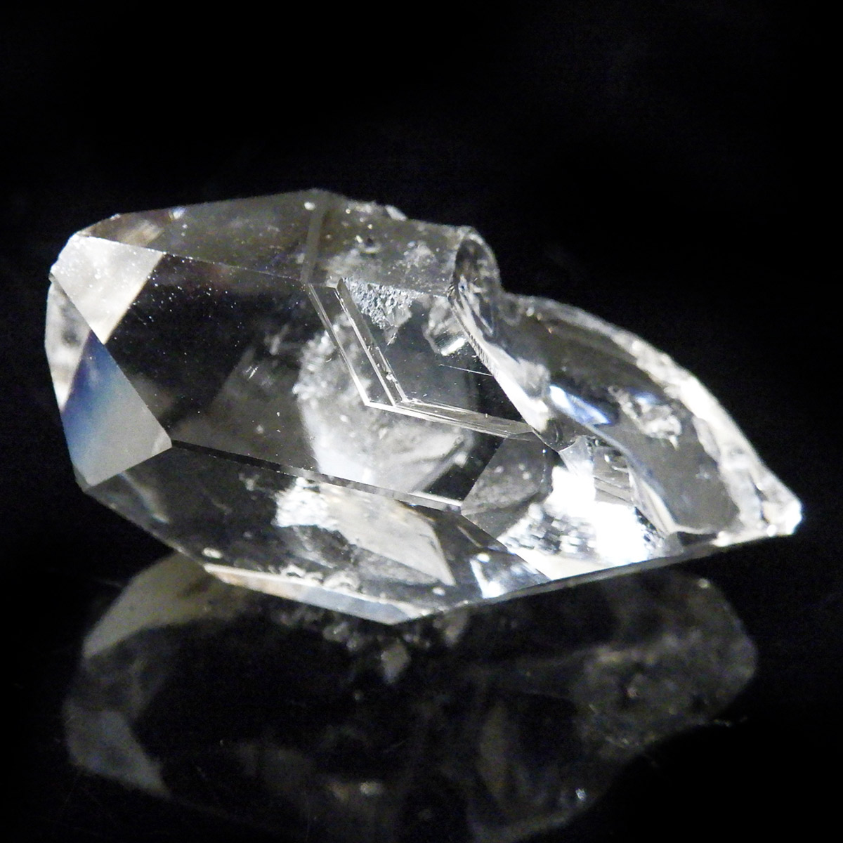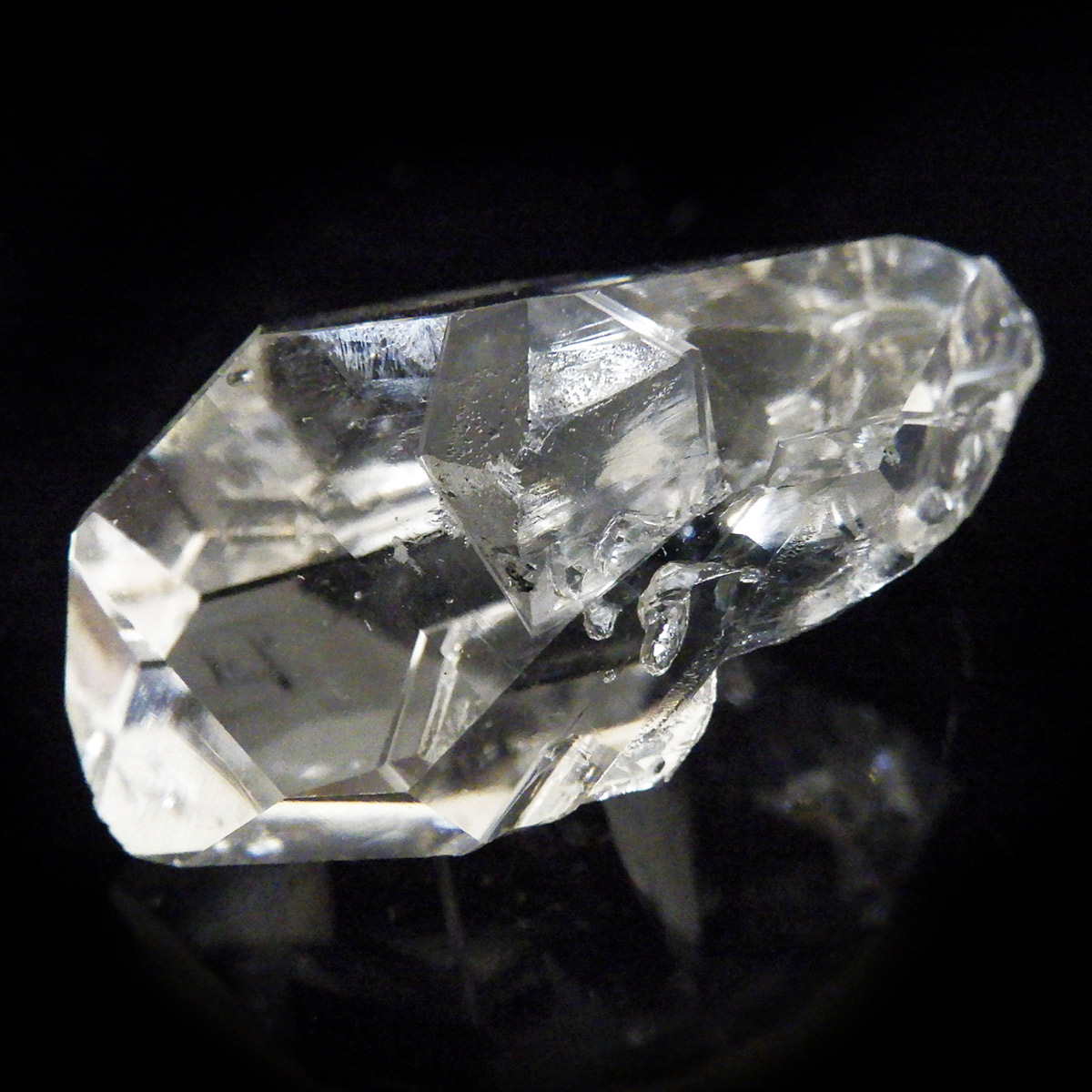 ハーキマーダイヤモンド原石です。抜群の透明度で圧巻の美しさです。キラキラと輝くその姿は、ダイヤモンドのようで、息を呑むほど素晴らしい輝きに満ちています。ハーキマーダイヤモンドはアメリカ、ニューヨーク州、ハーキマー地区でしか採掘されないダイヤのようなクリスタル。母岩の穴の中で成長し、ダイヤモンドのような両側の18面体の結晶になります。そして、ダイヤモンドのように力強い光沢感と輝きを兼ね備えているのが特長です。